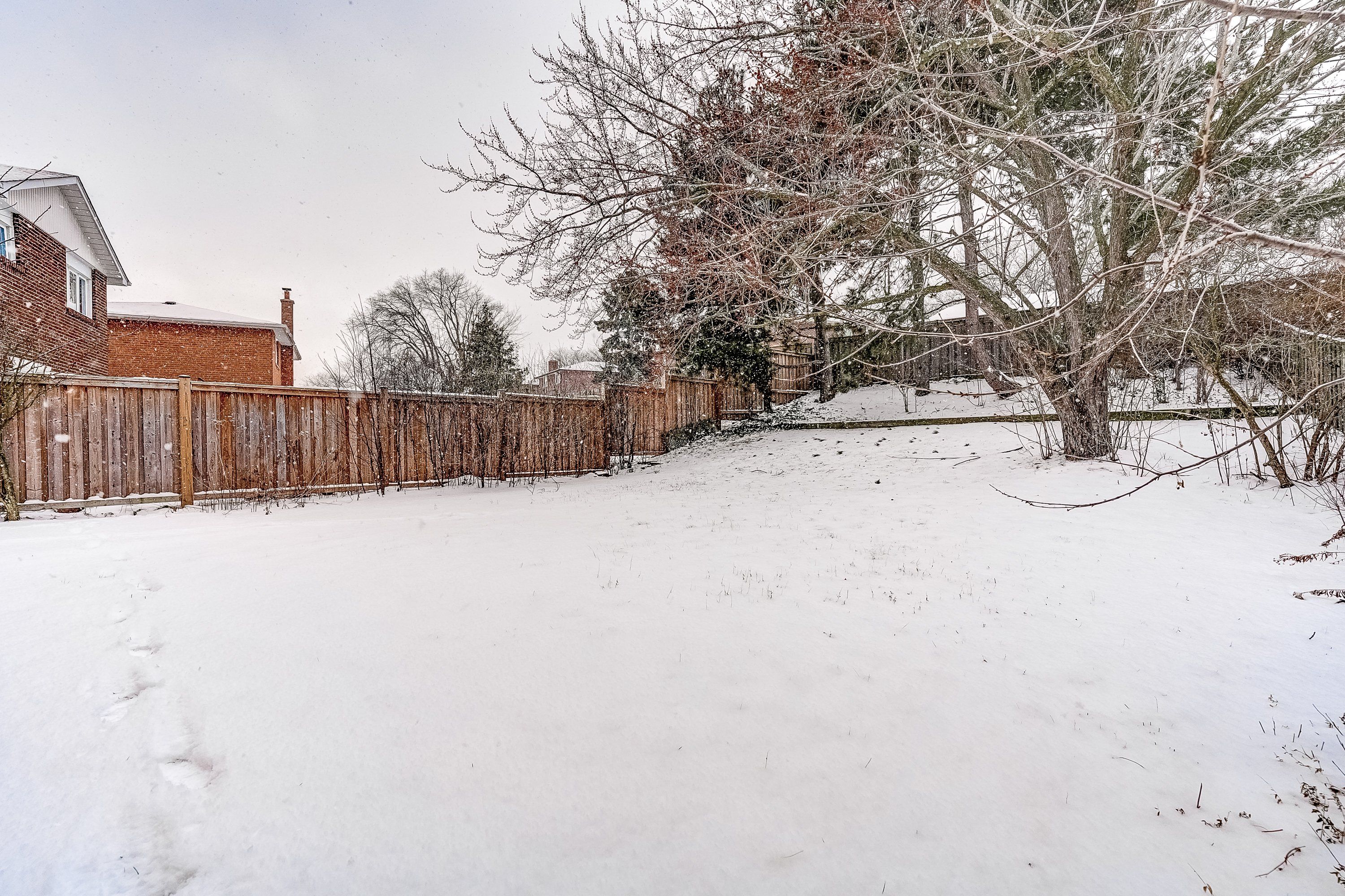 • Private backyard surrounded by mature trees for outdoor relaxation.