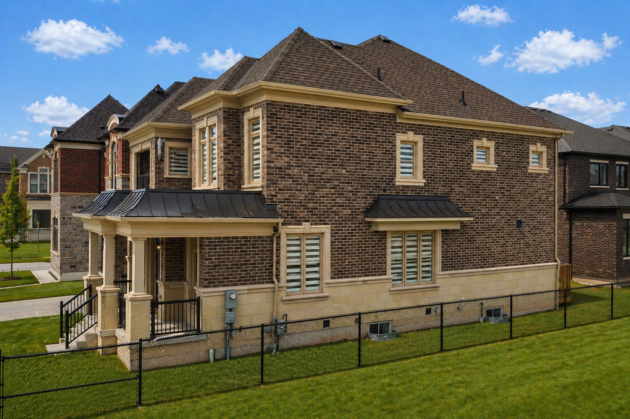 4-bedroom detached corner residence in the prestigious glen abbey encore community, built by lindvest in 2022. Offering 4,171 sq ft total area / 3,897 sq ft of finished living space (as per mpac). Designed with 10 ft ceilings on the main level and 9 ft ceilings on the upper and lower levels. Hardwood flooring throughout main and second floors, complemented by porcelain tiles and high-quality luxury vinyl flooring in the finished basement. Chef-inspired kitchen featuring premium appliances. Open-concept family room with fireplace and main floor den ideal for a home office. Well-designed layout with two bedrooms offering private ensuites and two additional bedrooms connected by a jack & jill bathroom. Primary retreat features a spa-inspired ensuite with freestanding tub and frameless glass shower, along with generous walk-in closets. Professionally finished basement with 9 ft ceilings, full bathroom, and oversized 36" windows providing abundant natural light. Located steps to saw whet park with tennis, pickleball, soccer fields, and playground, and surrounded by trails and green space near fourteen mile creek. Photos virtually staged.