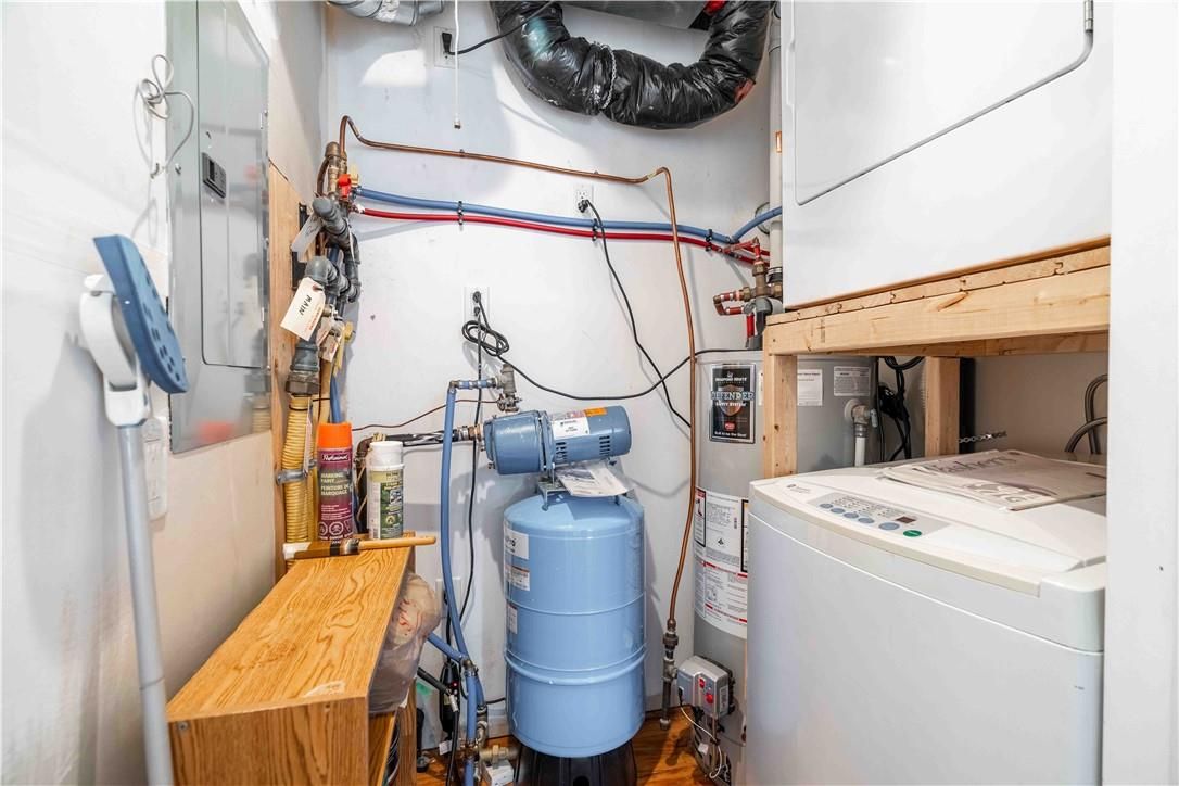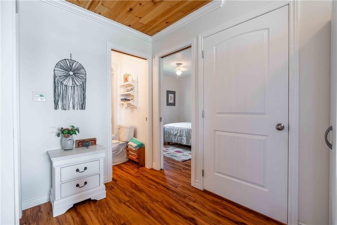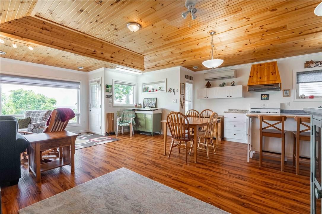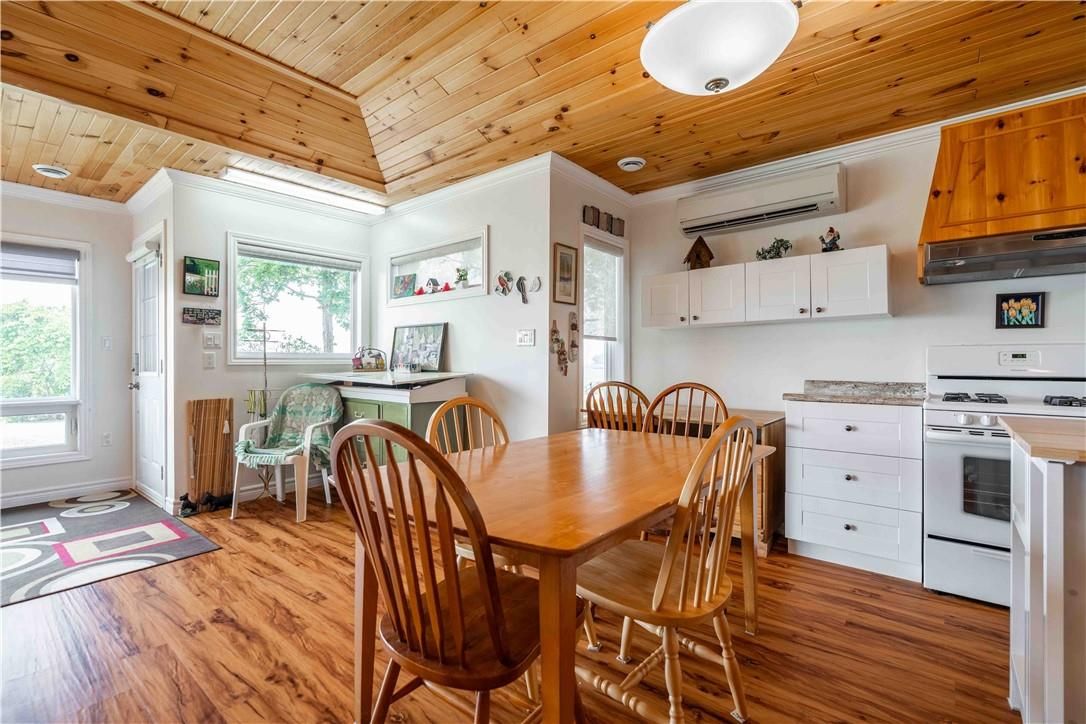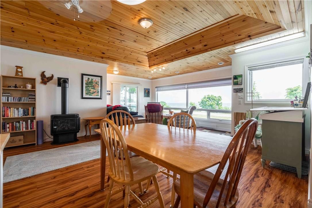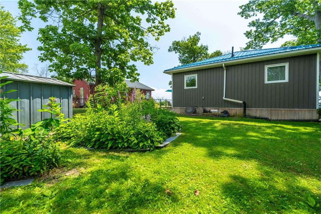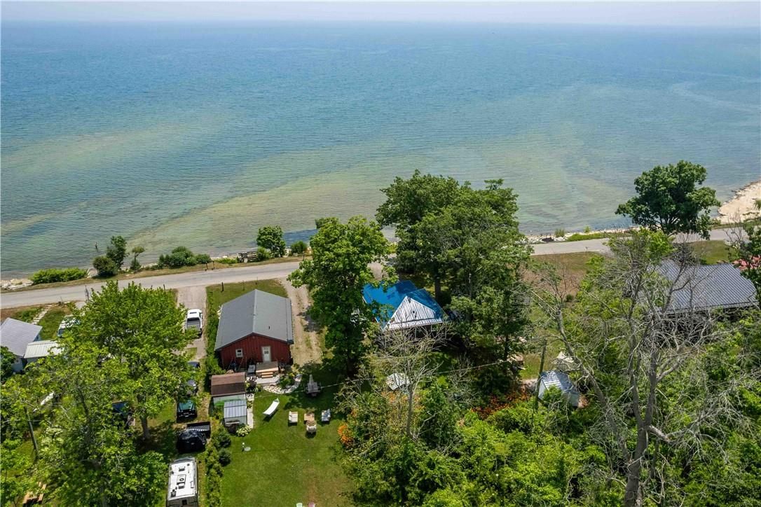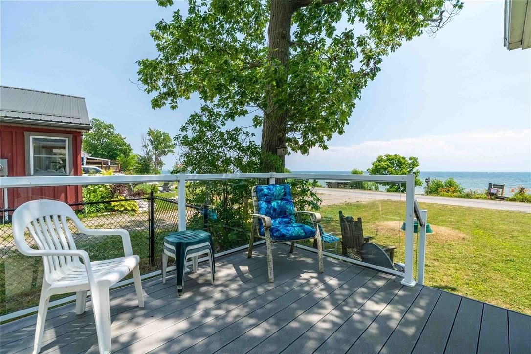 Waterfront delight! - property includes lots on north and south sides of road. Rare opportunity to own custom built, fully winterized open-concept bungalow, complete with gas stove and electric baseboard heating, heat pump ac and spray-foam insulation with unobstructed panoramic views of the beautiful blue waters of lake erie directly from living room comforts. Plus this property includes ownership of waterfront sandy beach and private staircase to access. The pleasure of owning these 2 lots separated only by a municipal road is now presented. Fully winterized home built 2015 on generous landscaped lot complete with shiny steel roof, fenced rear yard, trex deck (10'x10'), auxiliary shed attached to home (10' x 4. 9') and detached garden shed (8'x6'). At about 935 sqft, this home has it all - the joys and ambiance of waterfront living - sunning, lounging, swimming, boating, canoeing, paddle-boating - the choice is yours! Here are all the conveniences of a 10 year old home, lots of room for easy living, sleeping and peaceful living. Wooded area directly adds to privacy, perennial gardens enhance the serenity. Home is immaculately maintained with crisp white walls, vinyl flooring, ship-lap pine ceilings. Custom blinds, hrv system for healthy living, fully furnished and decorated - being sold with most contents. 2000 gallon cistern has just been topped up, 2000 gallon septic holding tank has just been serviced. 100 amp breaker electrical panel, natural gas service for central stove-fireplace, cookstove, hot water heater (owned). No rentals here! Just minutes to services, amenities and a comfortable drive to larger city centres. This fine property must been seen to be fully appreciated!