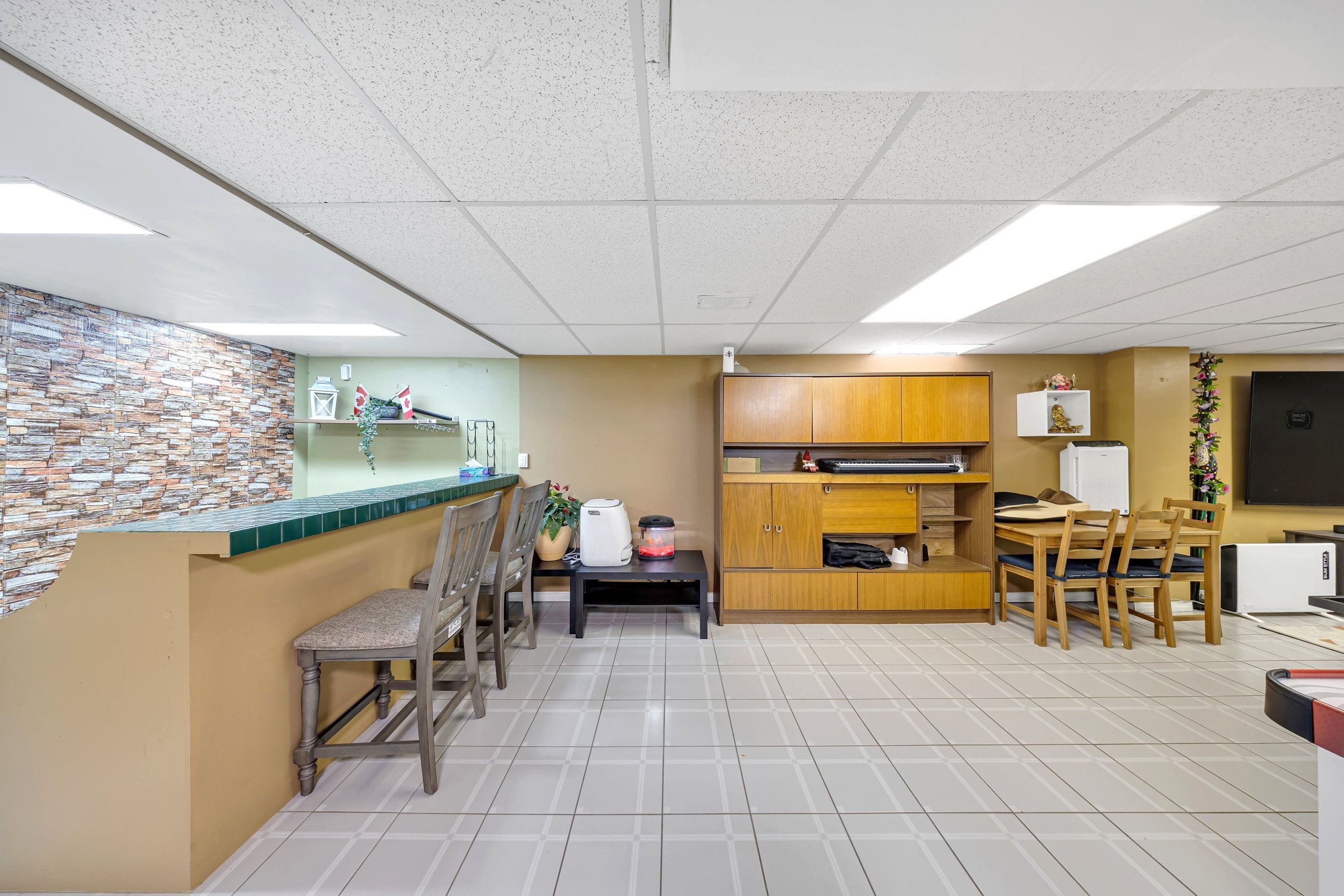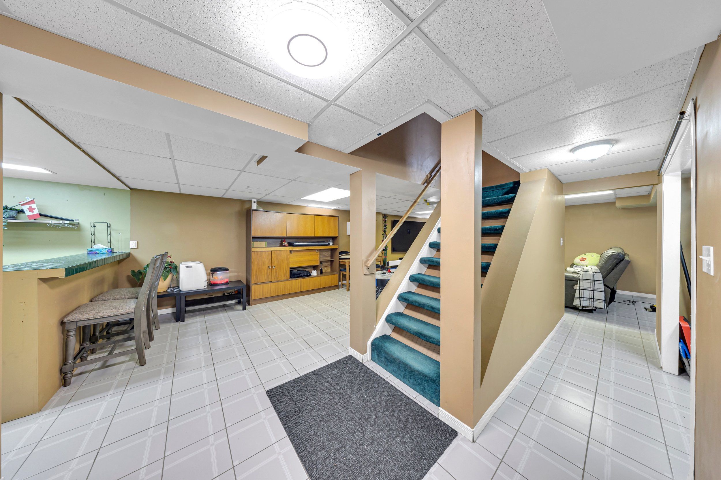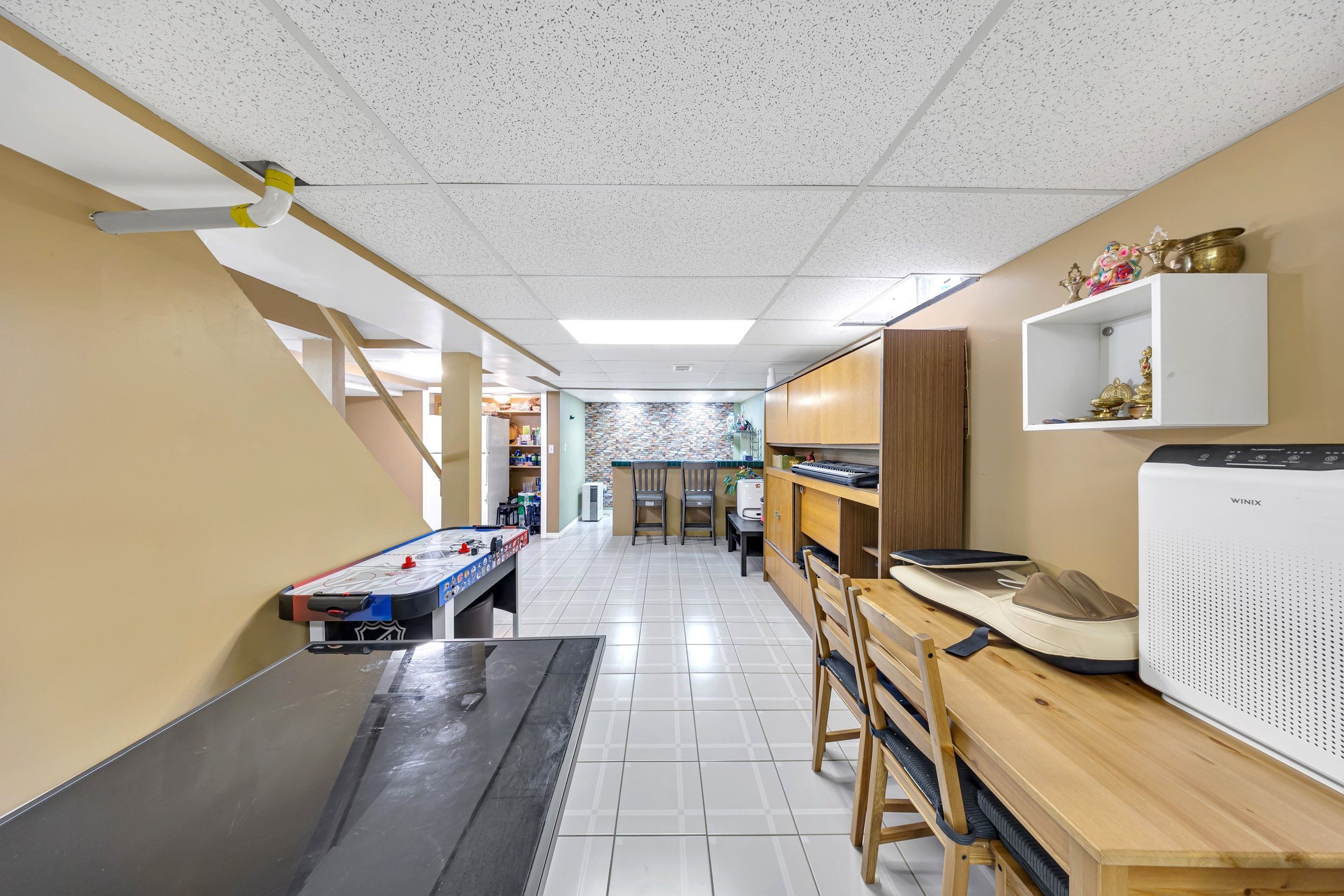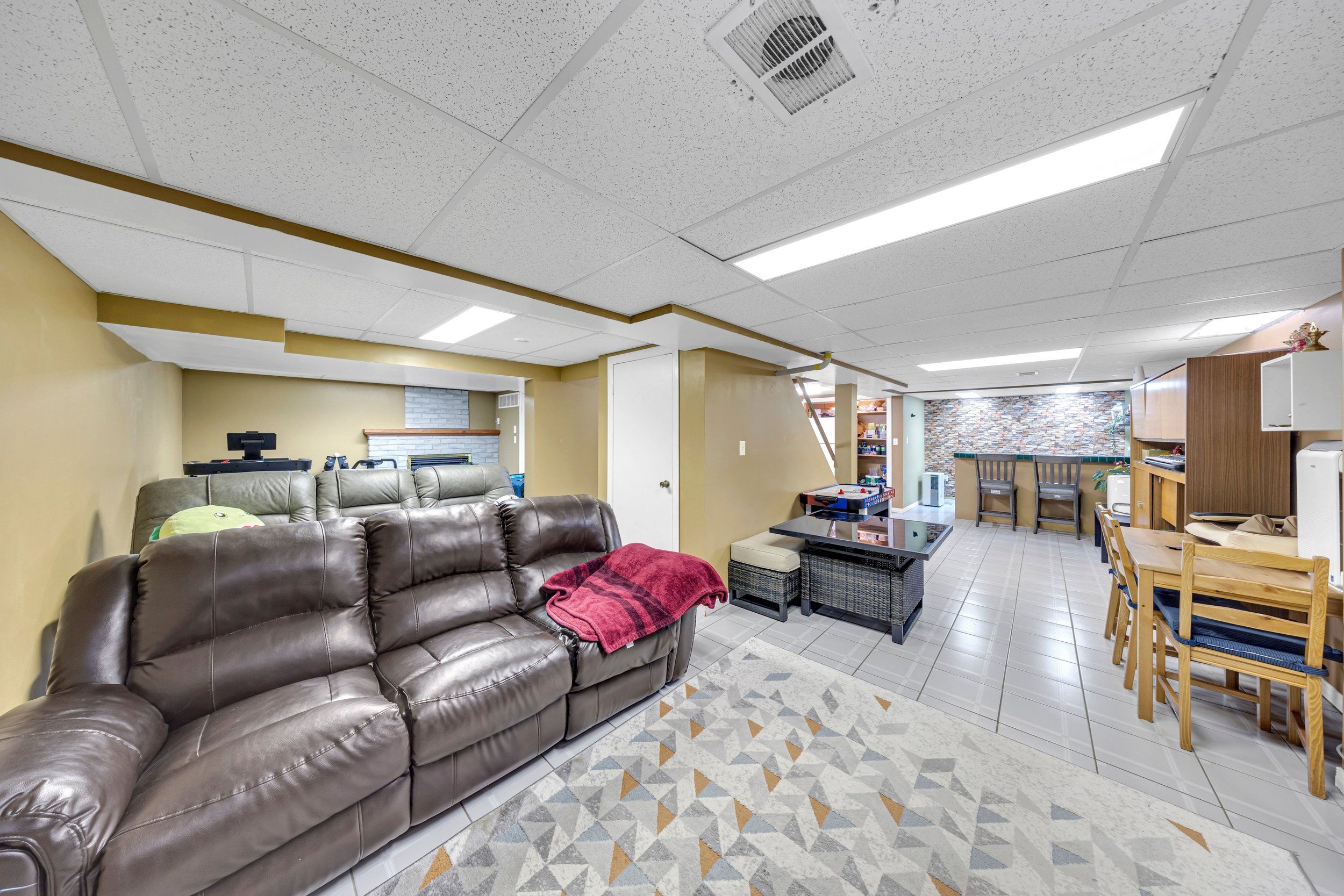 • Finished basement with recreation area, games space, and exercise room.