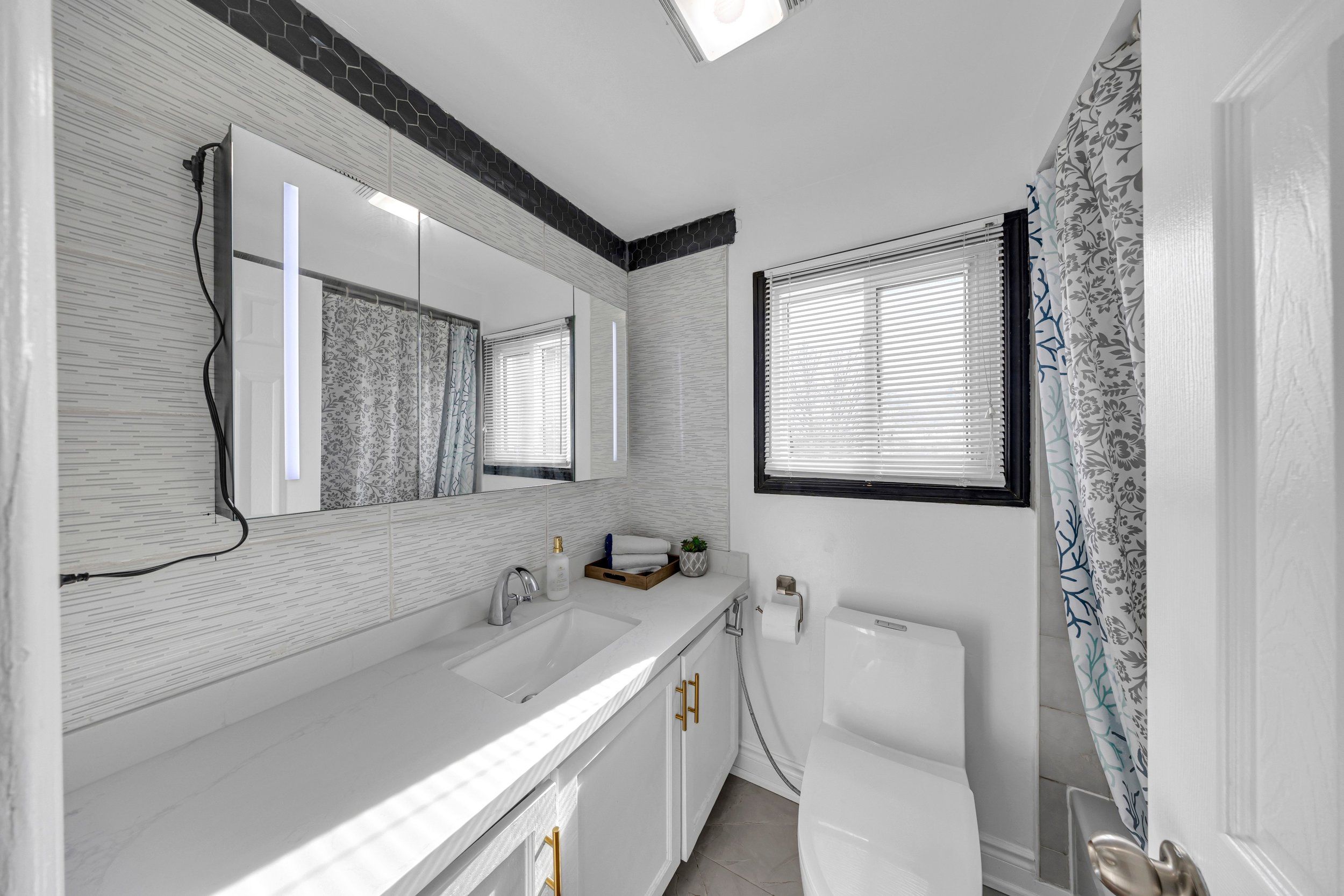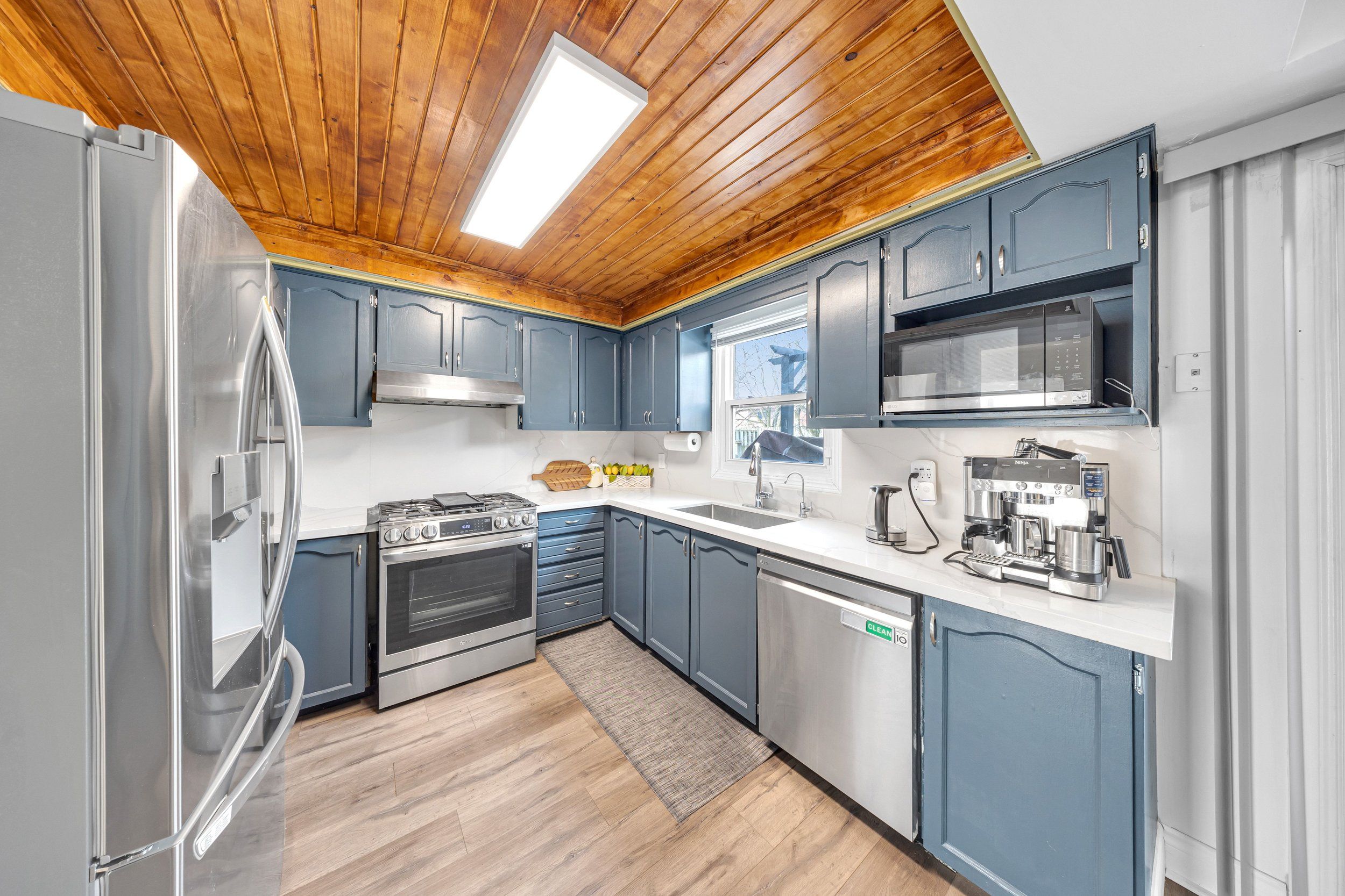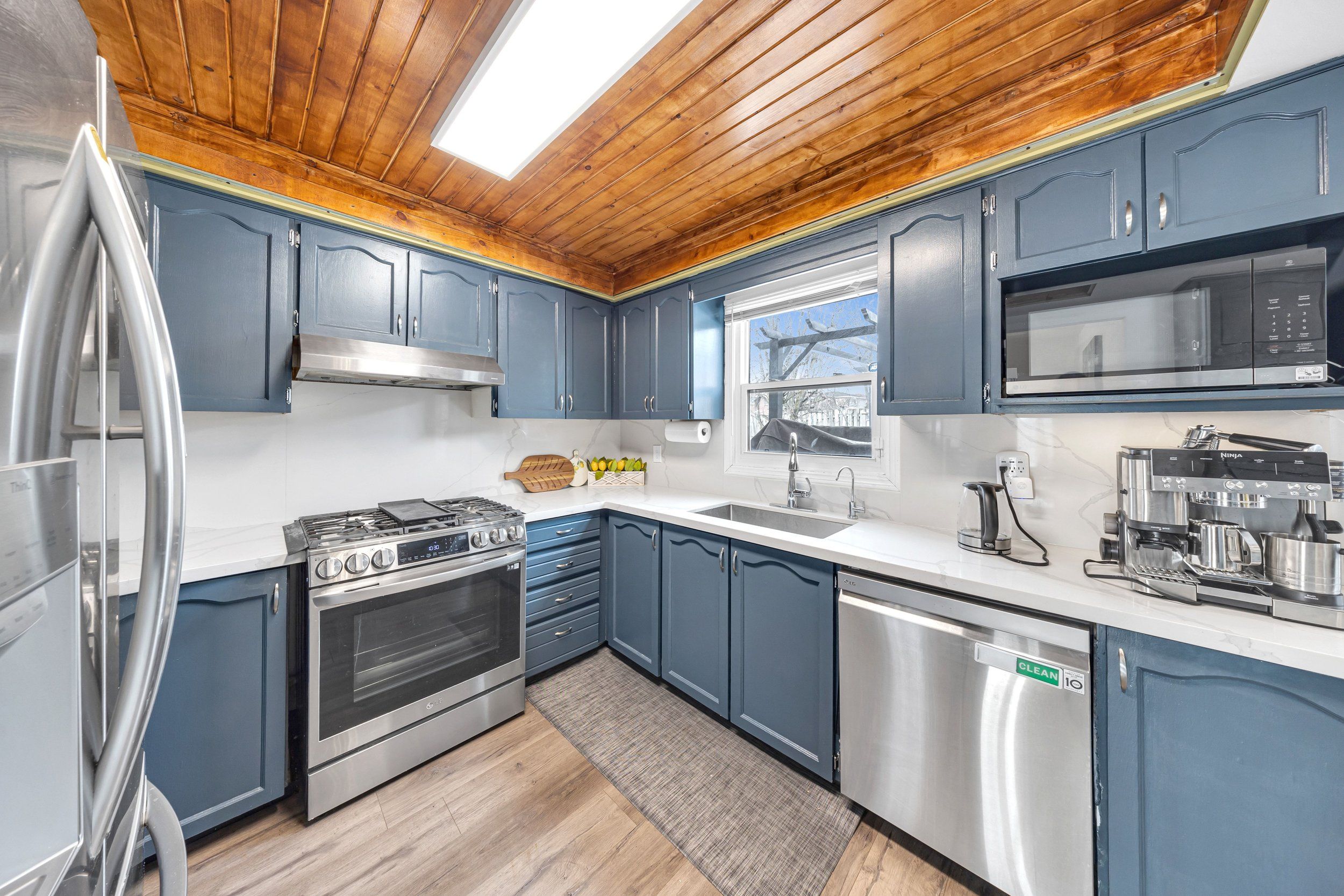 • Modern kitchen with quartz countertops and a large breakfast area.