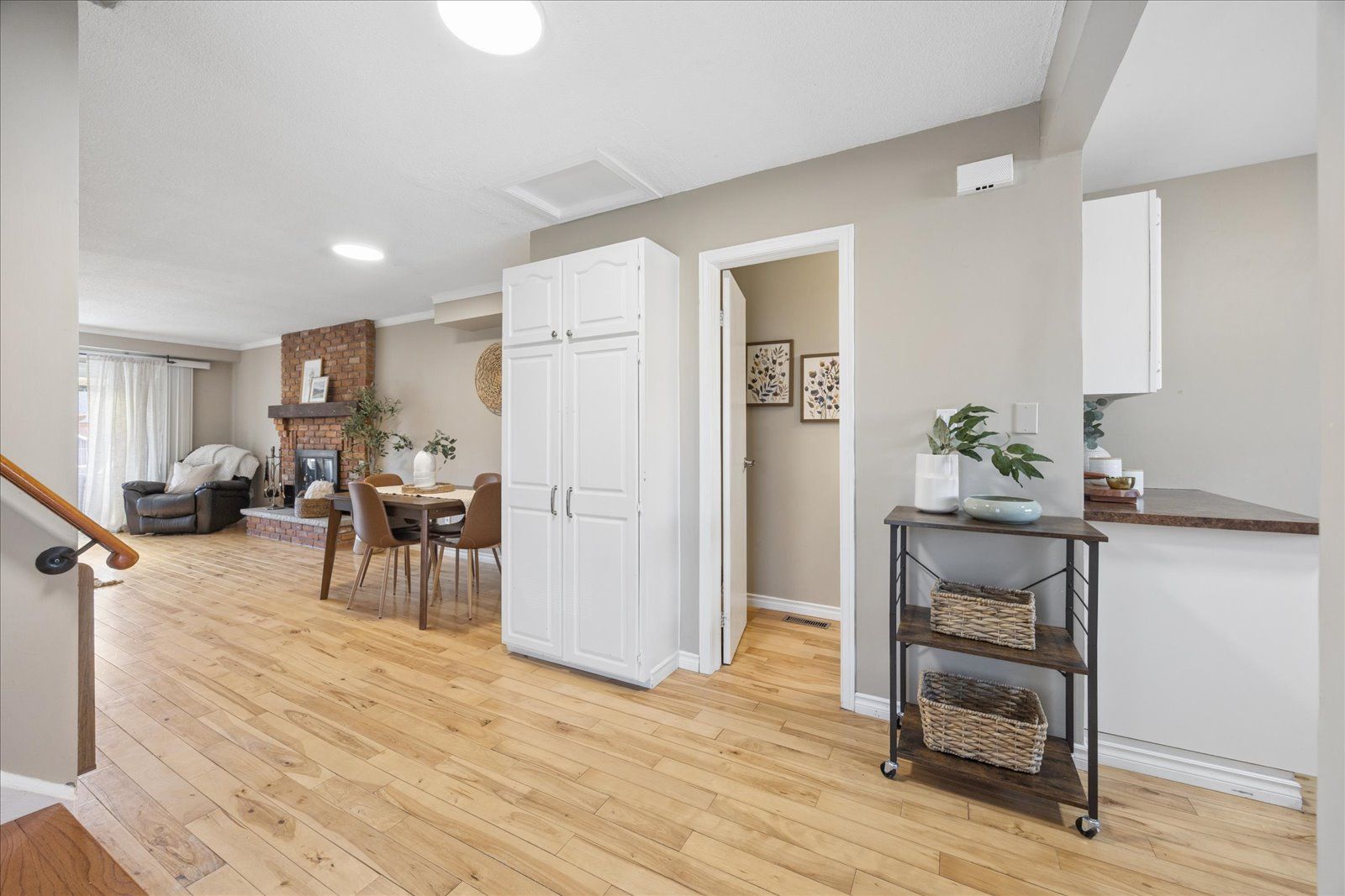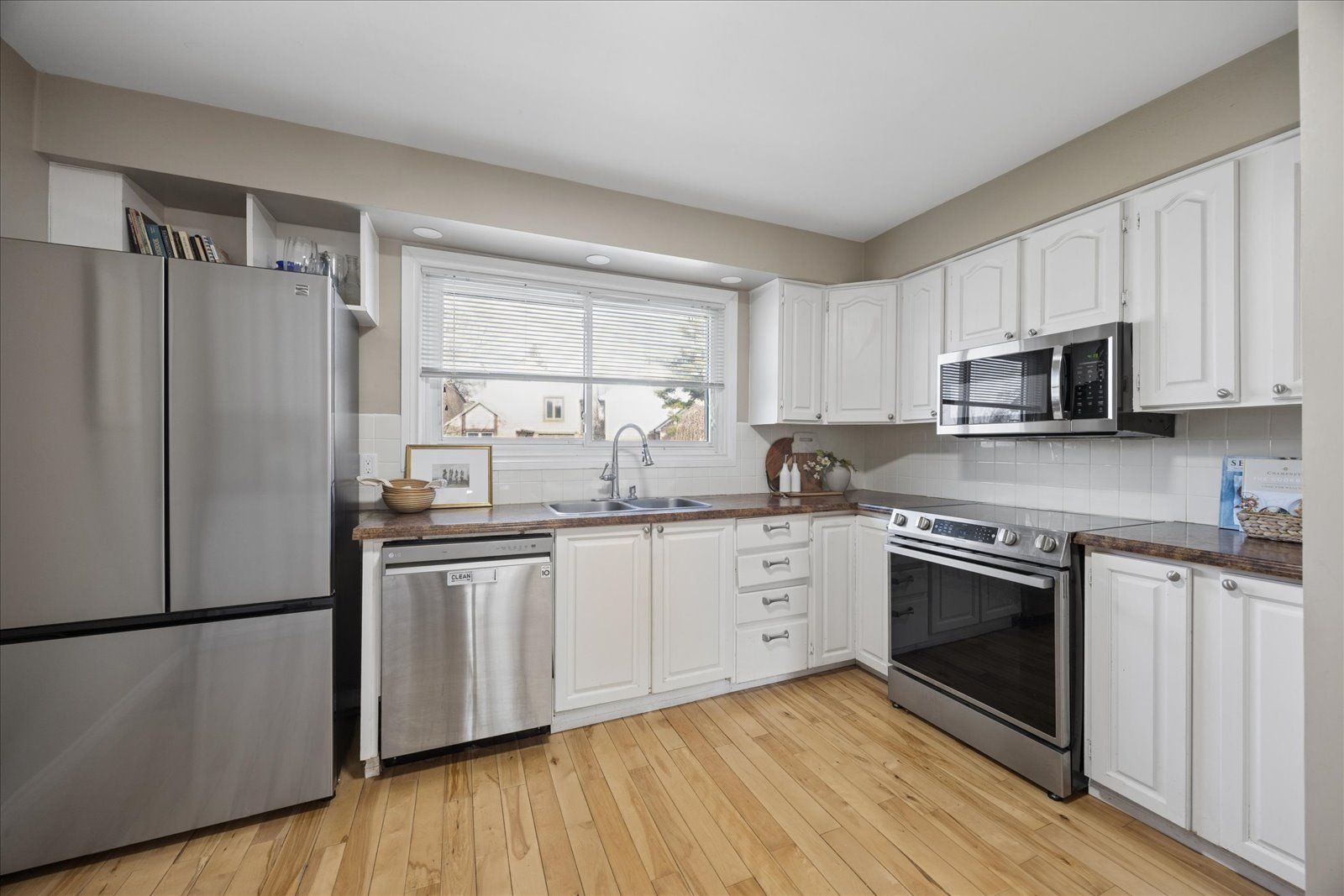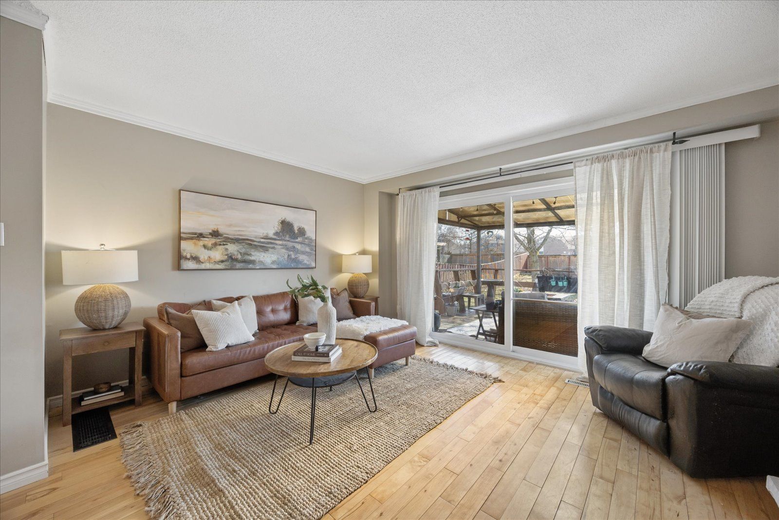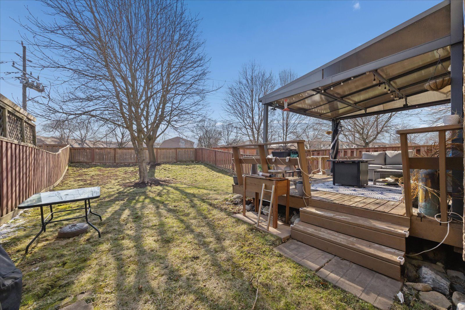Welcome to this charming detached two-storey, three bedroom home, perfectly suited for families and first-time buyers. Located just a 5 minute walk from the lakefront and 7km of beautiful waterfront trails, you'll love having nature, parks, and outdoor adventures right at your doorstep. Inside, you'll find a comfortable and inviting layout with an open-concept main floor and hardwood floors throughout: easy to maintain and perfect for everyday living. The bright kitchen features new stainless steel appliances, making meal prep simple and enjoyable. Step outside to your private backyard through the extra large sliding door (2022) to the deck and large sun shelter, ideal for summer bbqs, kids' playtime, or relaxing evenings with friends and family. The finished basement offers a cozy rec room, giving you extra space for movie nights, a playroom, or a home office. With a single-car garage and a 3-car driveway, there's plenty of room for parking. Recent updates including: new kitchen appliances; shingles (2019); furnace (2020); central air (2020); and owned hot water tank (2019) make for a move-in-ready home with peace of mind for years to come. A wonderful opportunity to get into a family-friendly neighbourhood close to the lake-this is a place you'll be eager to call home.