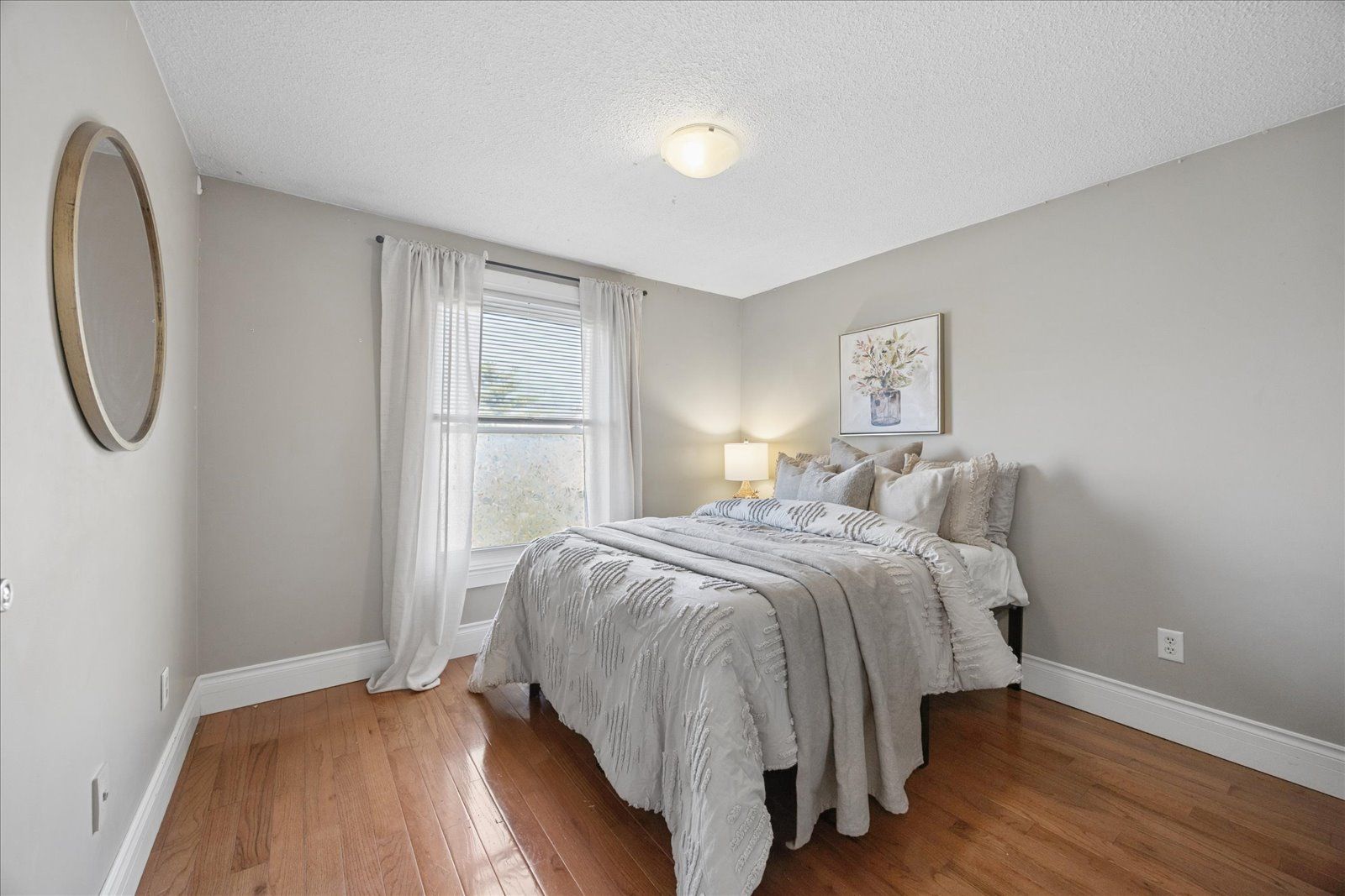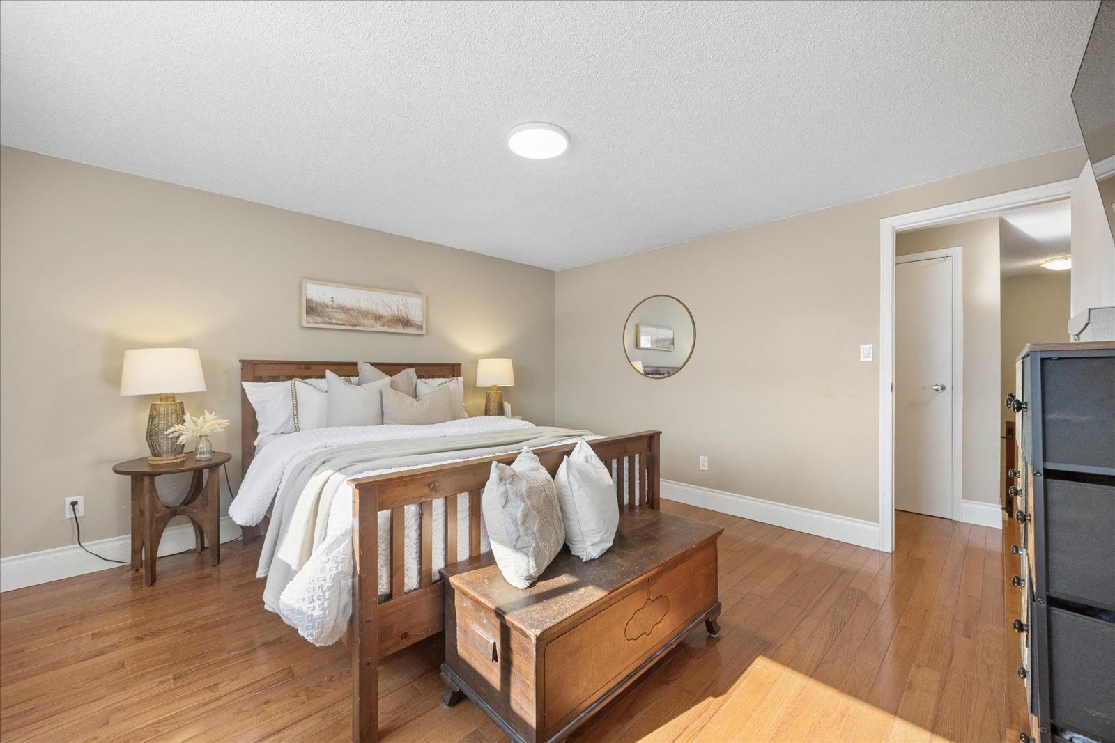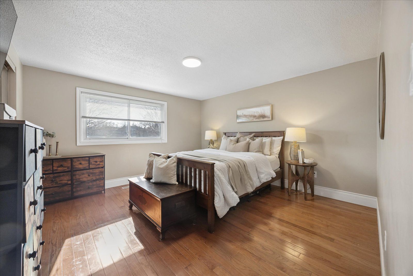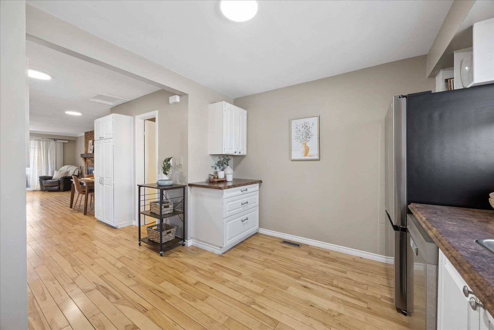 Welcome to this charming detached two-storey, three bedroom home, perfectly suited for families and first-time buyers. Located just a 5 minute walk from the lakefront and 7km of beautiful waterfront trails, you'll love having nature, parks, and outdoor adventures right at your doorstep. Inside, you'll find a comfortable and inviting layout with an open-concept main floor and hardwood floors throughout: easy to maintain and perfect for everyday living. The bright kitchen features new stainless steel appliances, making meal prep simple and enjoyable. Step outside to your private backyard through the extra large sliding door (2022) to the deck and large sun shelter, ideal for summer bbqs, kids' playtime, or relaxing evenings with friends and family. The finished basement offers a cozy rec room, giving you extra space for movie nights, a playroom, or a home office. With a single-car garage and a 3-car driveway, there's plenty of room for parking. Recent updates including: new kitchen appliances; shingles (2019); furnace (2020); central air (2020); and owned hot water tank (2019) make for a move-in-ready home with peace of mind for years to come. A wonderful opportunity to get into a family-friendly neighbourhood close to the lake-this is a place you'll be eager to call home.