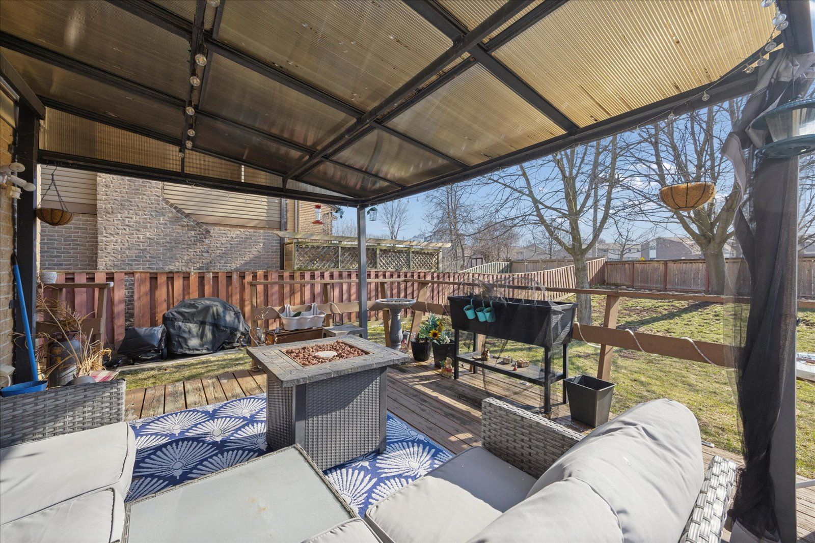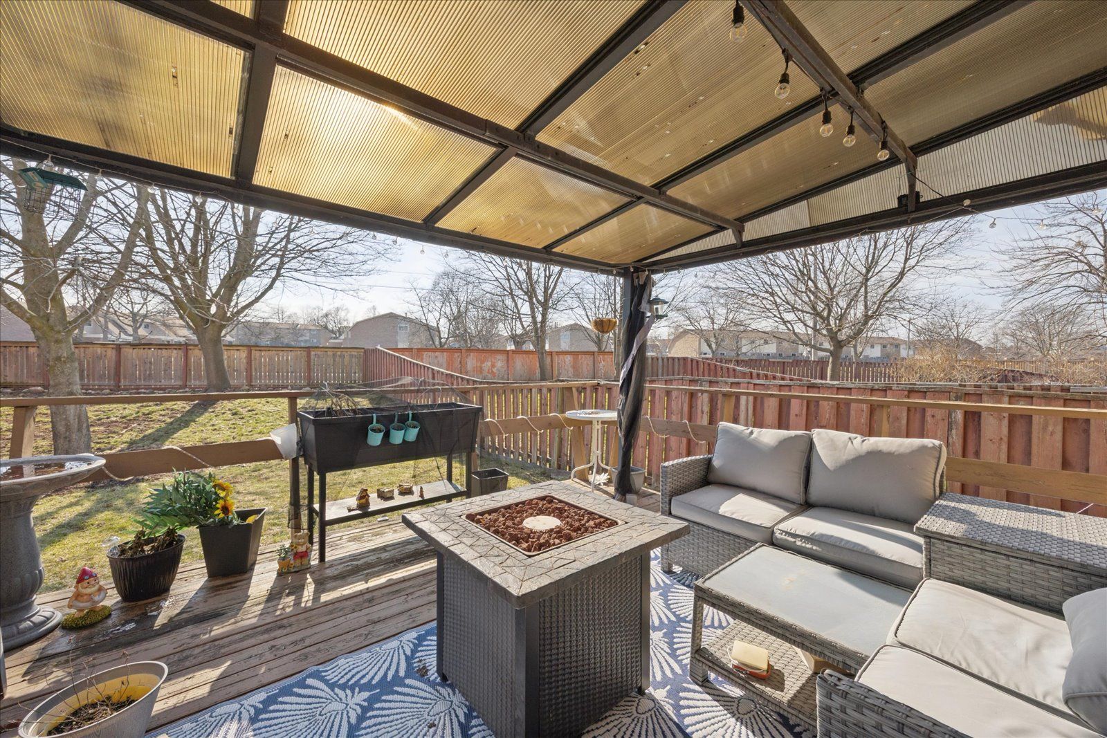 • Private backyard with a deck and sun shelter for outdoor fun.