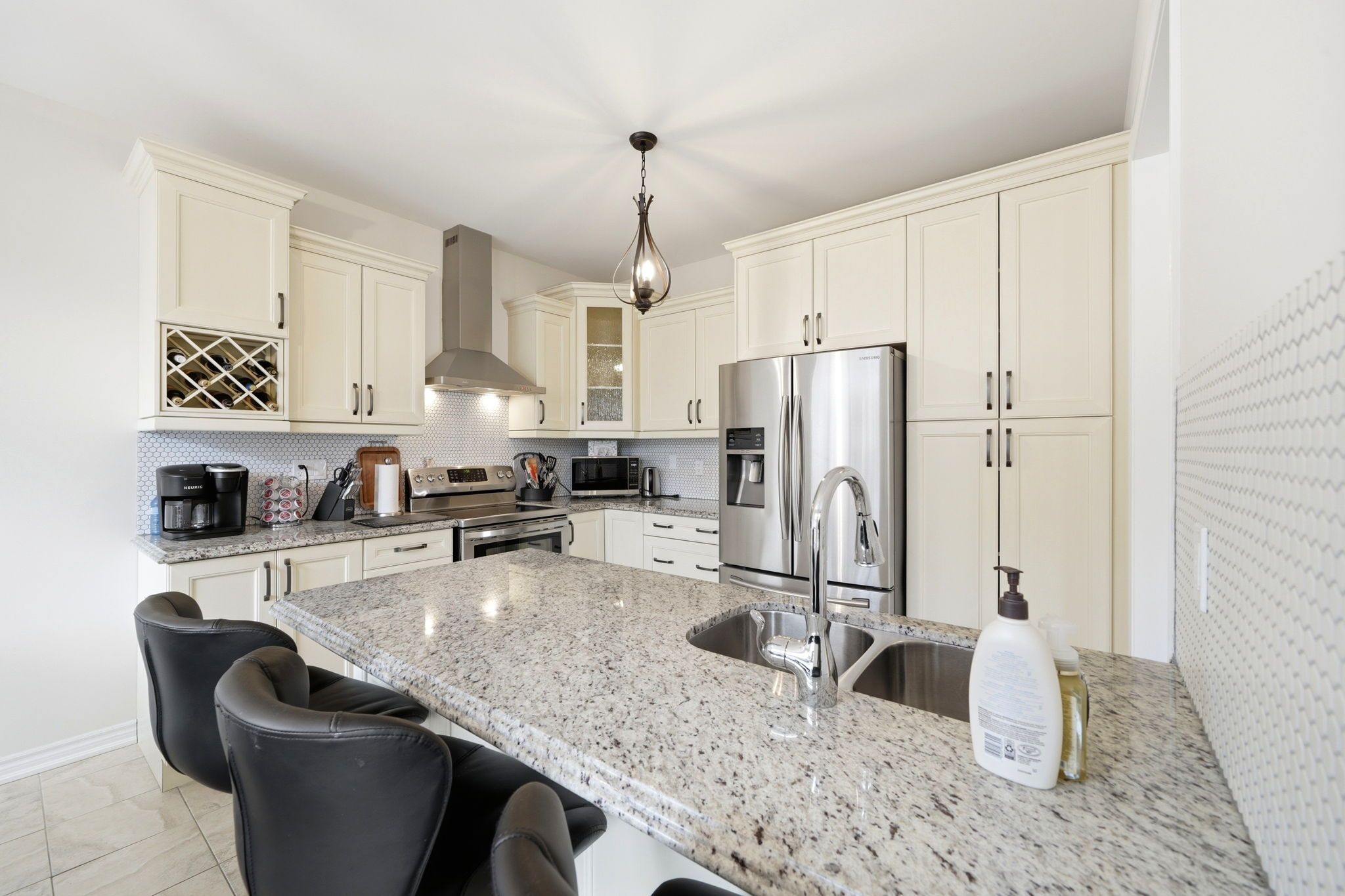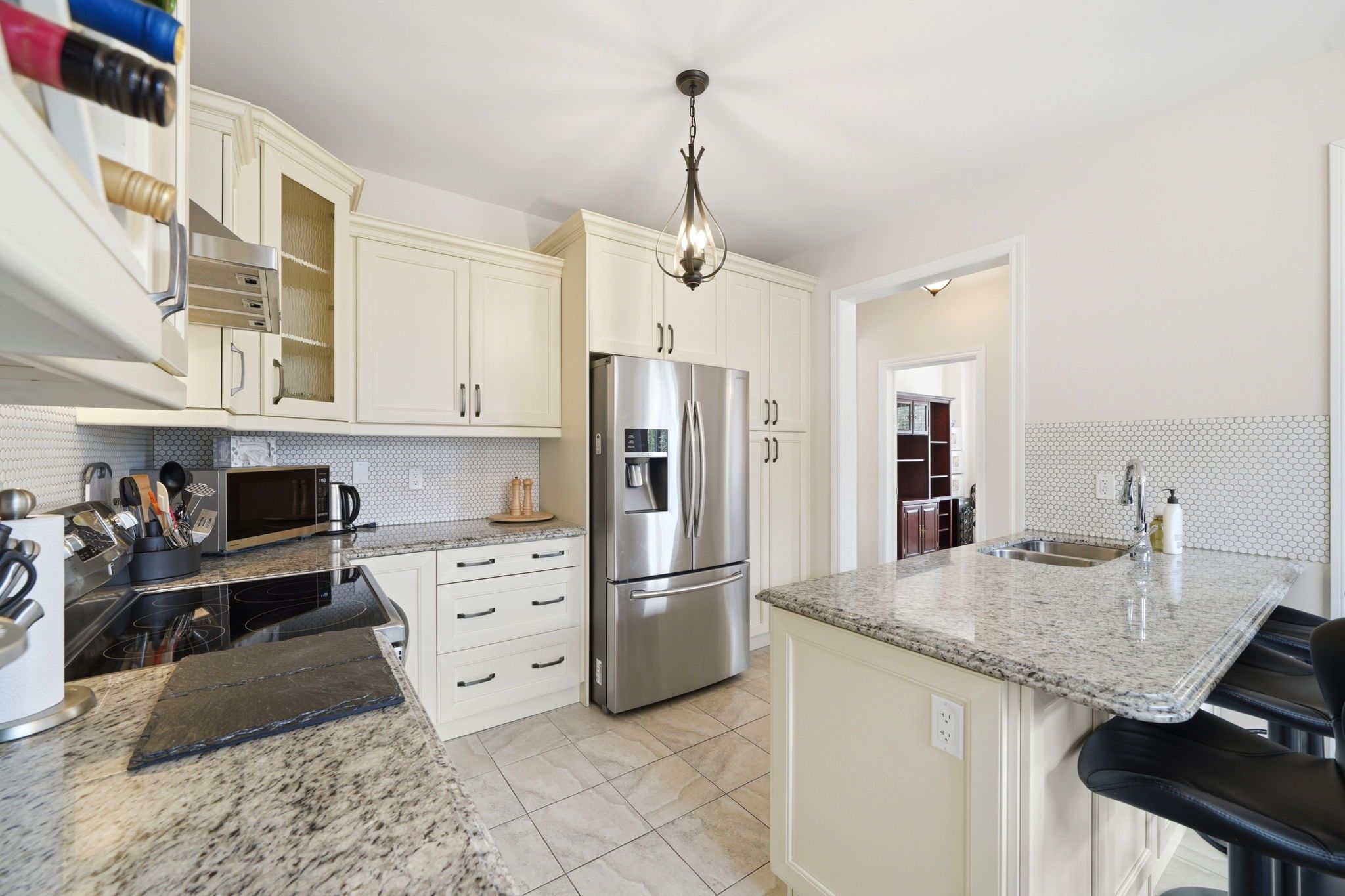 • Well-appointed kitchen with granite countertops, great for entertaining.