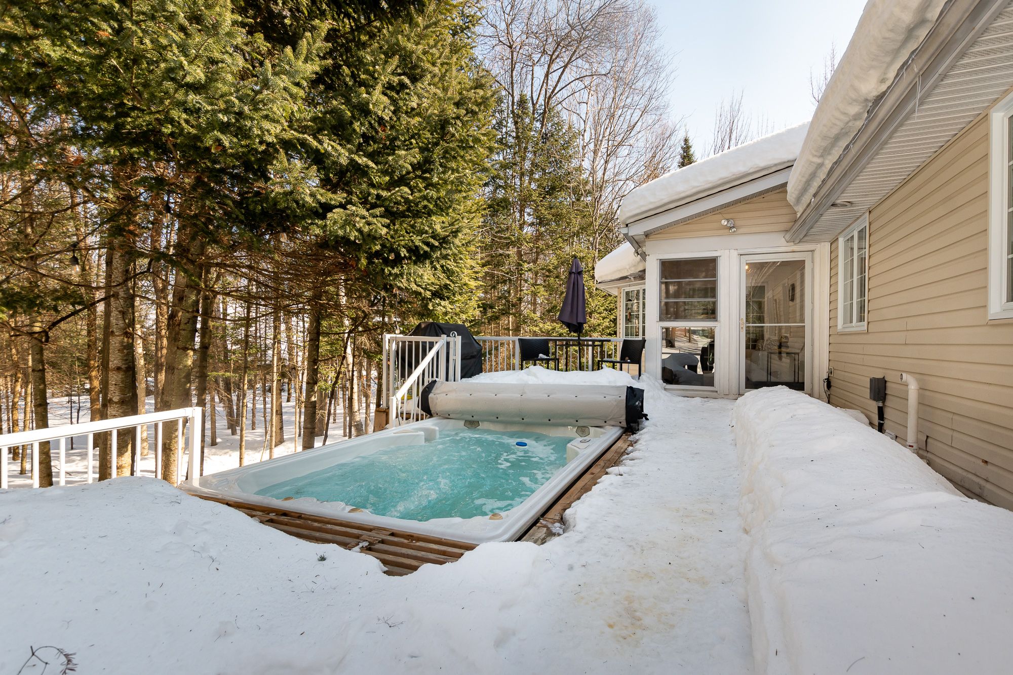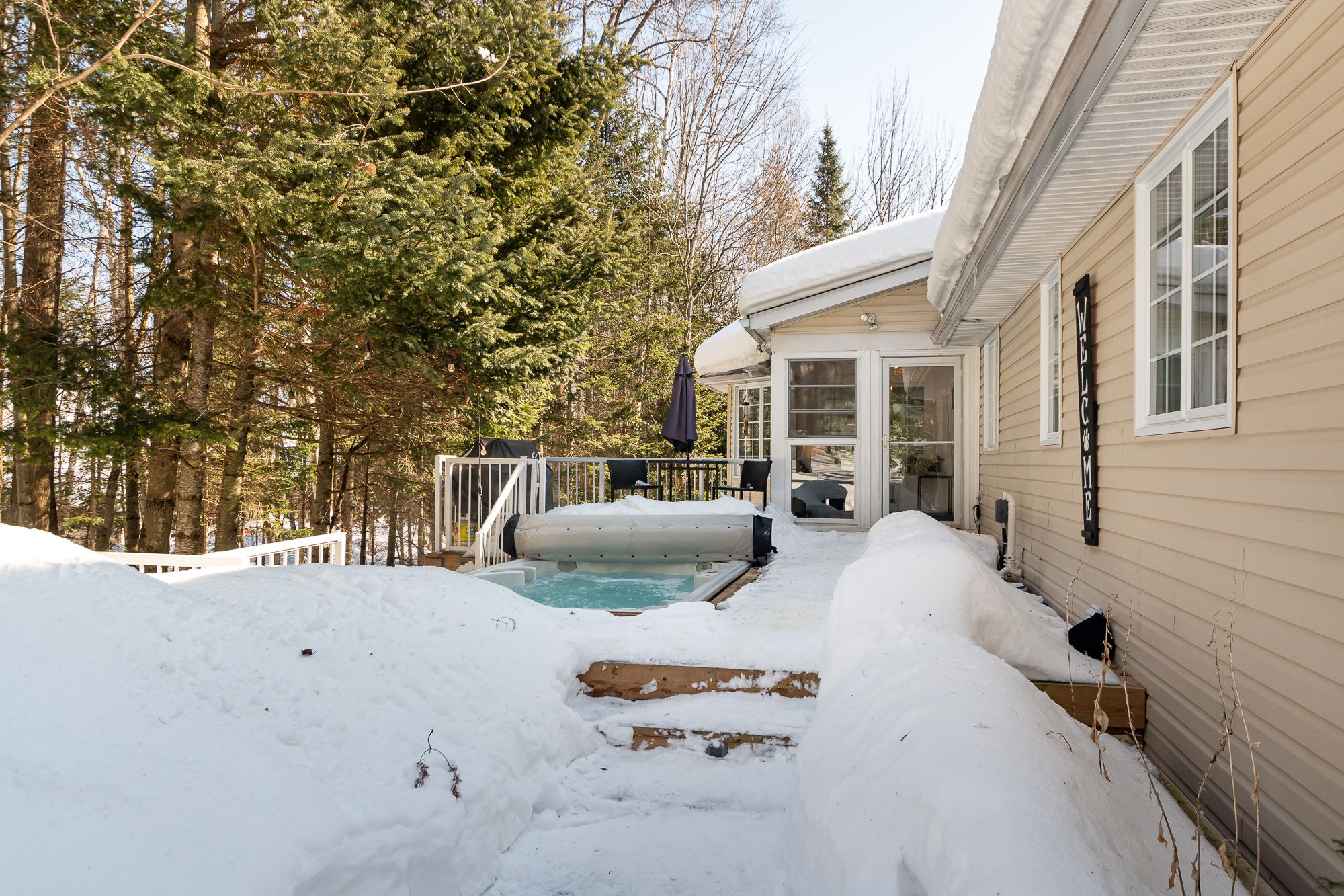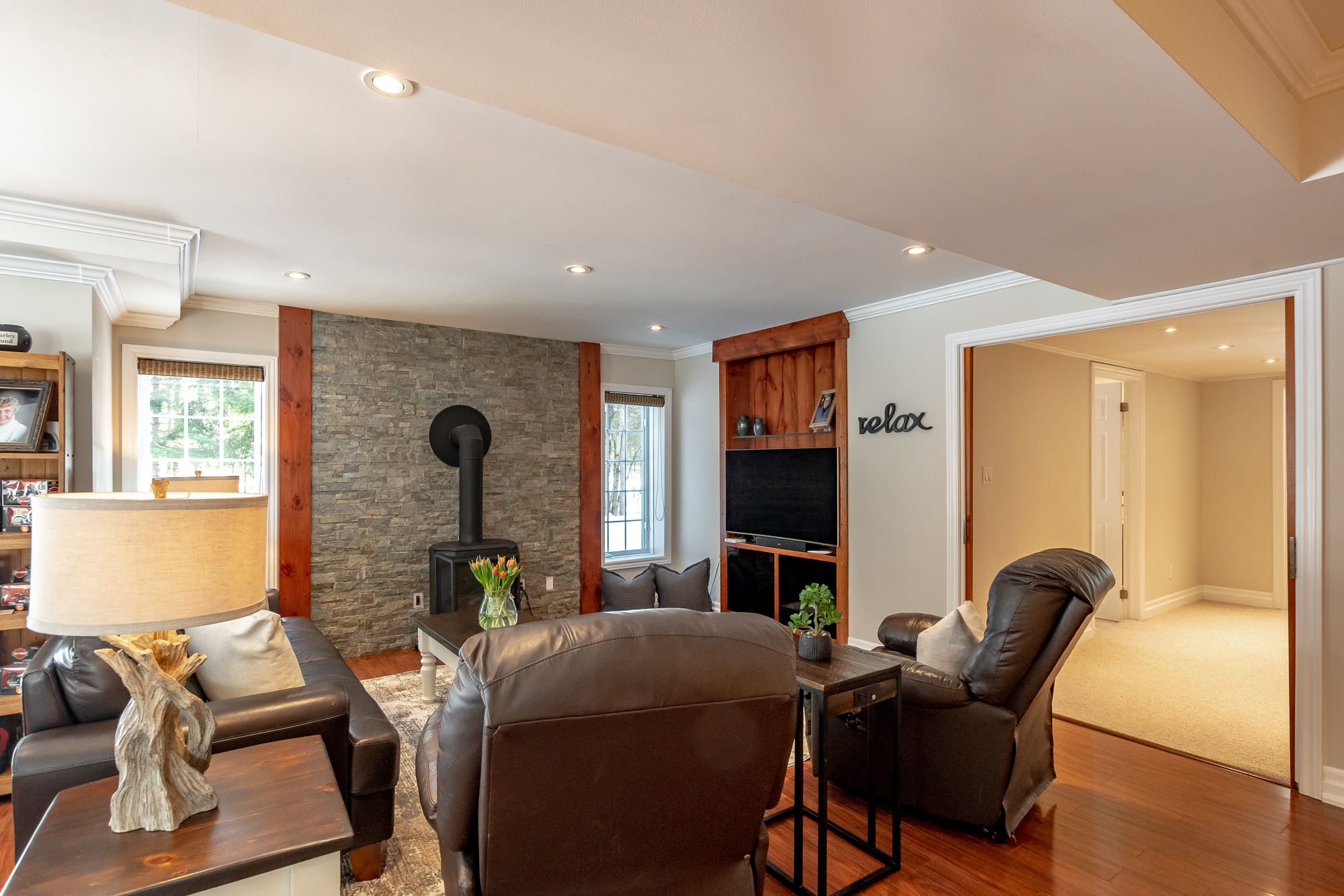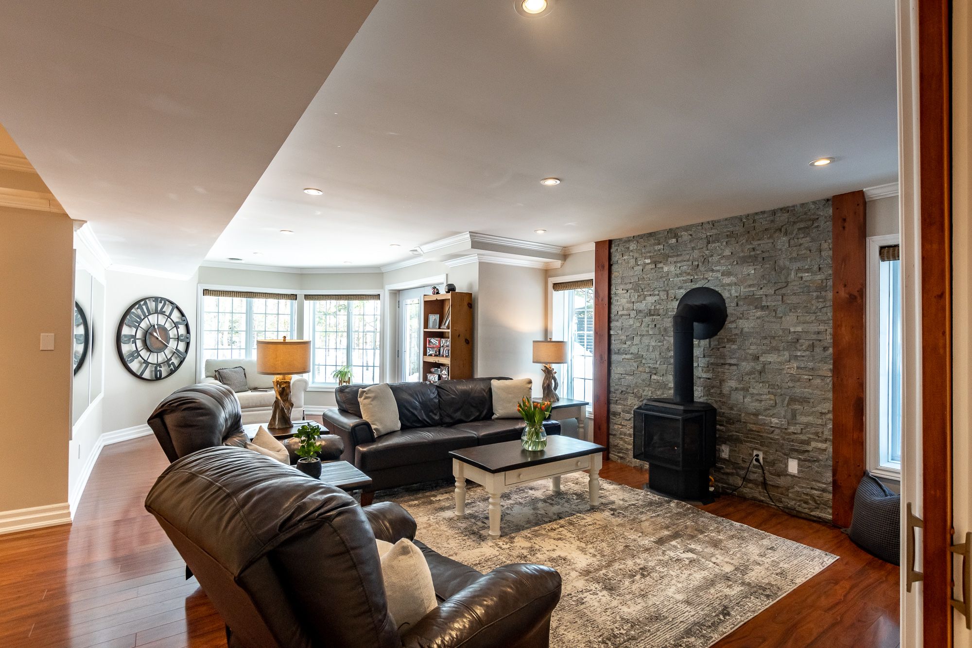 Set on over an acre in woodland heights, this sprawling bungalow offers space, flexibility & a lifestyle that is hard to match. The incredible custom kitchen, truly the centre of the home, showcases an oversized island, abundant prep space & quality kitchenaid appliances (fridge new feb/26), flowing seamlessly into the family room with propane fireplace & onward into the formal dining & living rooms, creating elegant yet comfortable spaces for both everyday living & special occasions. A 3-season muskoka room extends the living space outdoors, opening onto expansive decking where the swim spa becomes part of your daily rhythm, morning exercise, afternoon family fun or evening soaks under the stars. A spacious main floor office, previously a bedroom, offers flexibility to work from home, while the generous guest bedroom & beautifully finished guest bath with tile & glass shower plus separate soaker tub provide comfort & style. The primary suite feels like a private sanctuary, complete with a 4-pc ensuite featuring double vanity, tiled shower & convenient laundry, thoughtfully designed for ease & comfort. A functional mudroom with inside entry from the double attached garage keeps life organized. The lower walkout level delivers exceptional additional family living space with its own kitchen & laundry, a sprawling rec room with recently upgraded propane fireplace (new door, pilot button, etc.), large bedroom with ensuite access to a 3-pc bath, substantial storage/utility room & full-size windows throughout, ideal for multi-generational living or guests, yet fully integrated for everyday single family use. Peace of mind exudes with a new furnace in jan/26. This home offers proximity to deerhurst resort, mark o'meara golf course, hidden valley ski resort, lake access & a quick drive to huntsville for shops, dining & amenities.