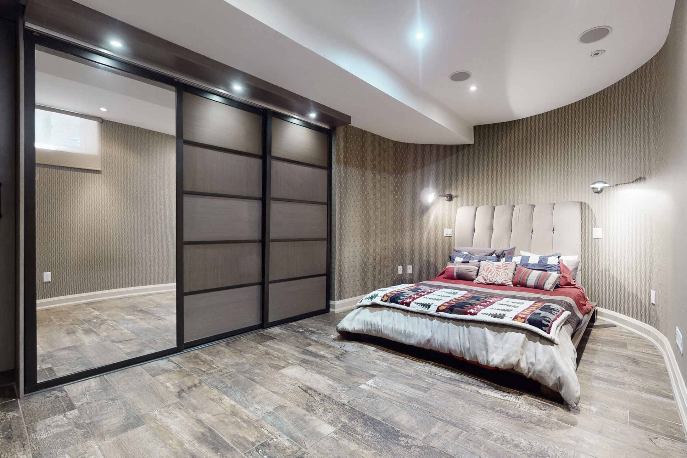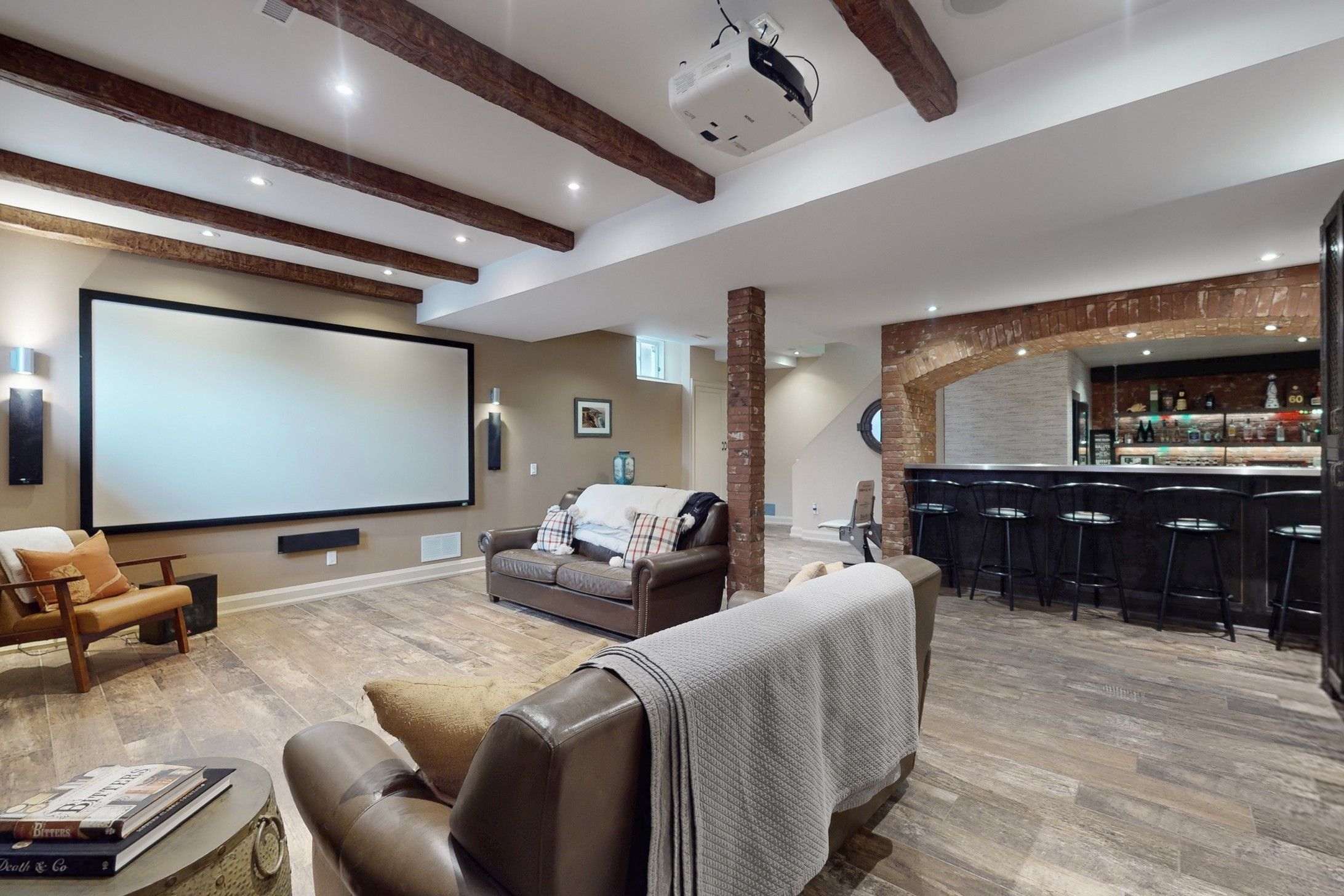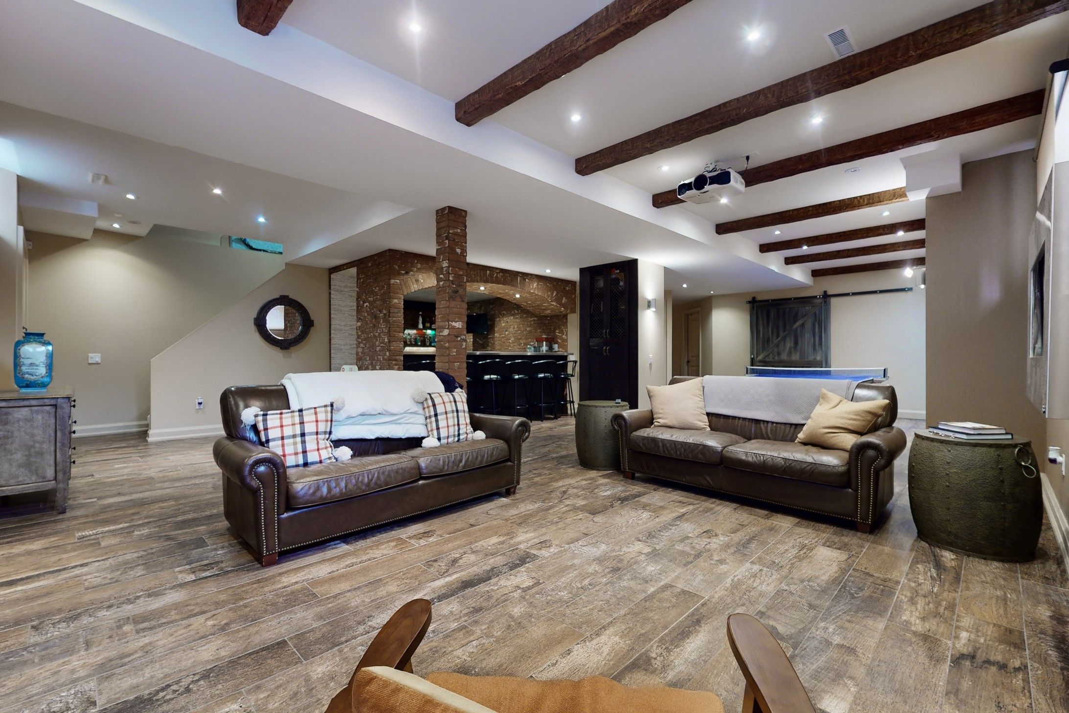 • Finished basement perfect for entertaining with bar and media area.