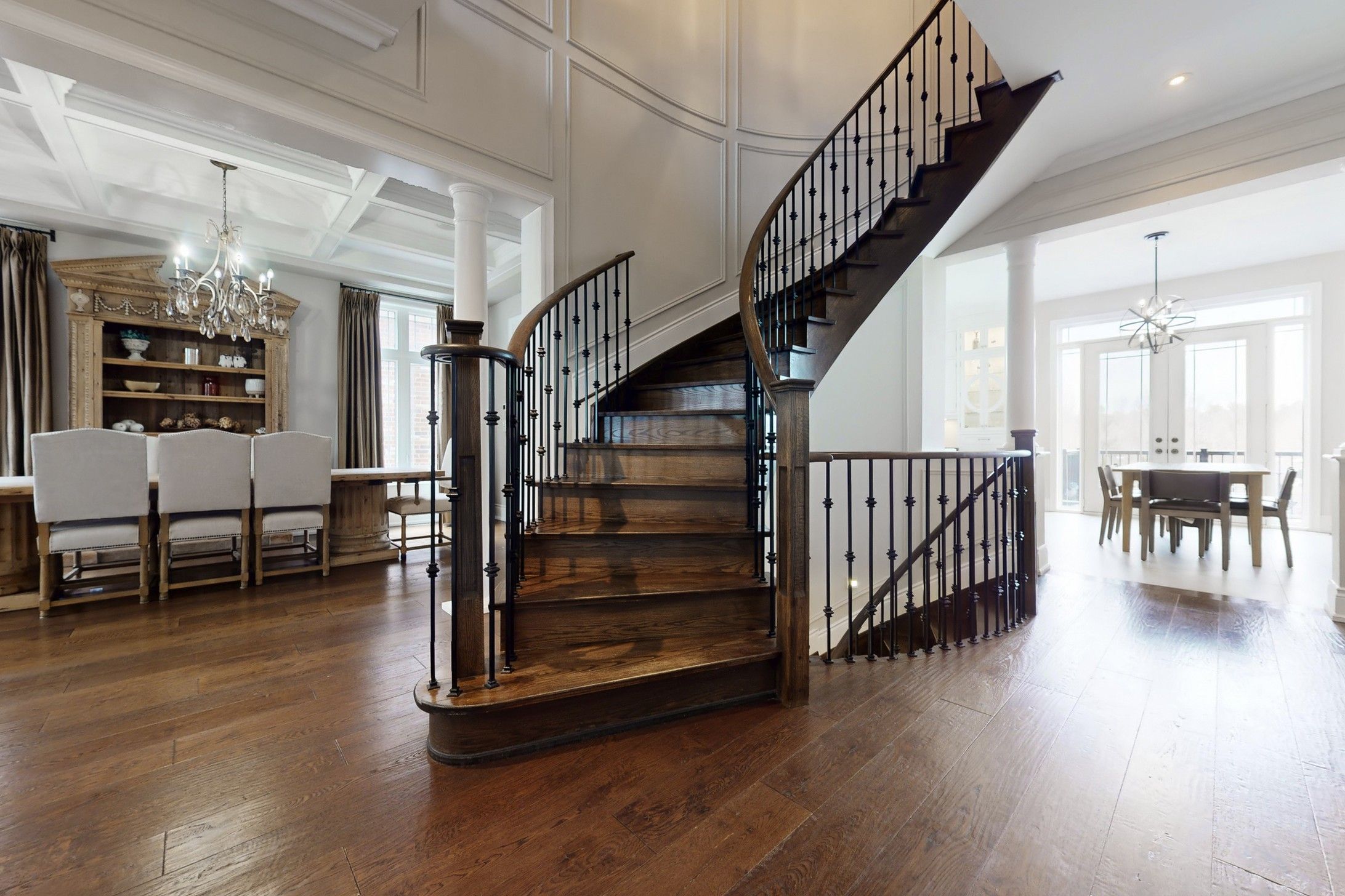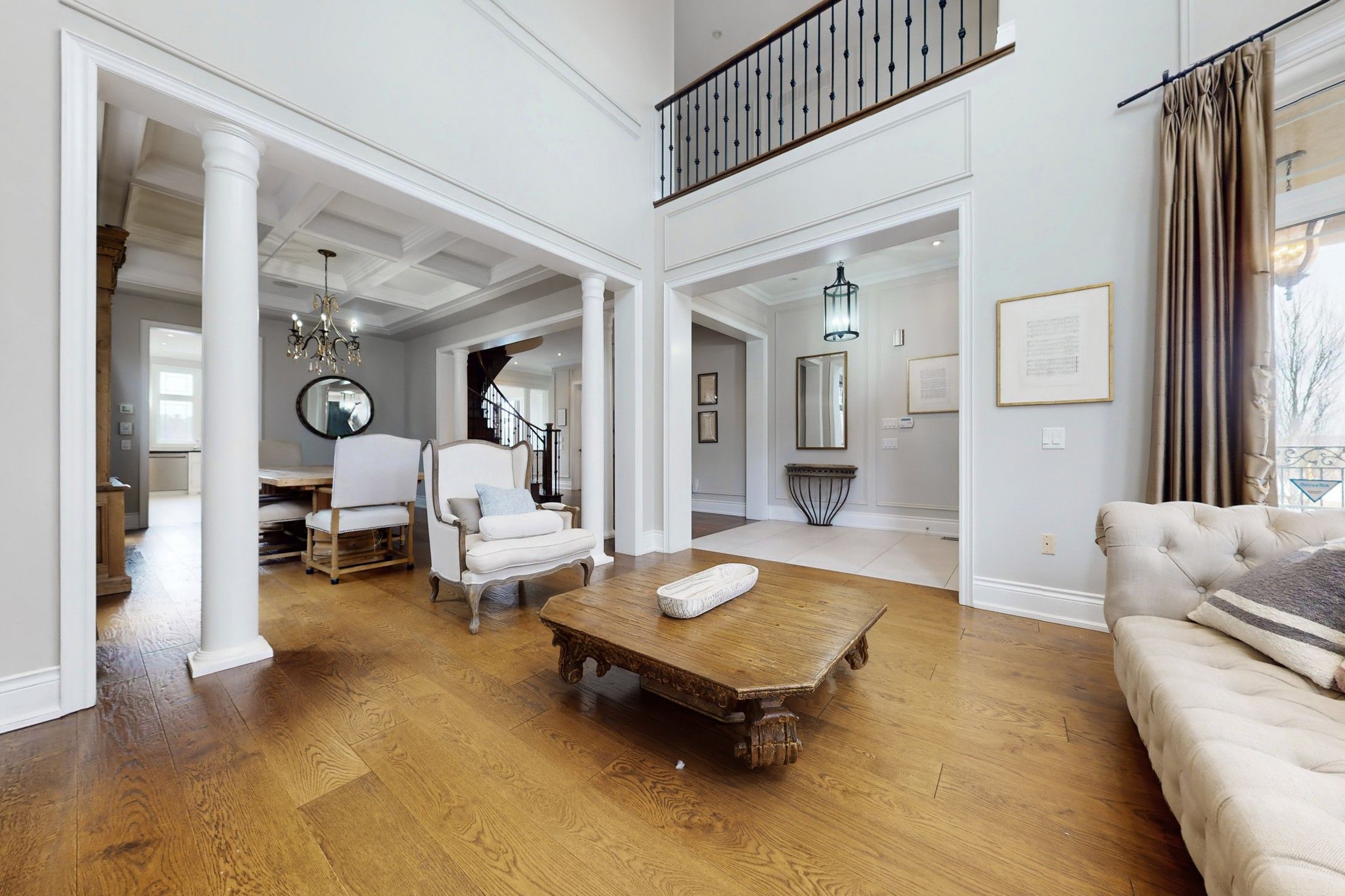 • Sophisticated design with soaring ceilings and intricate millwork throughout.