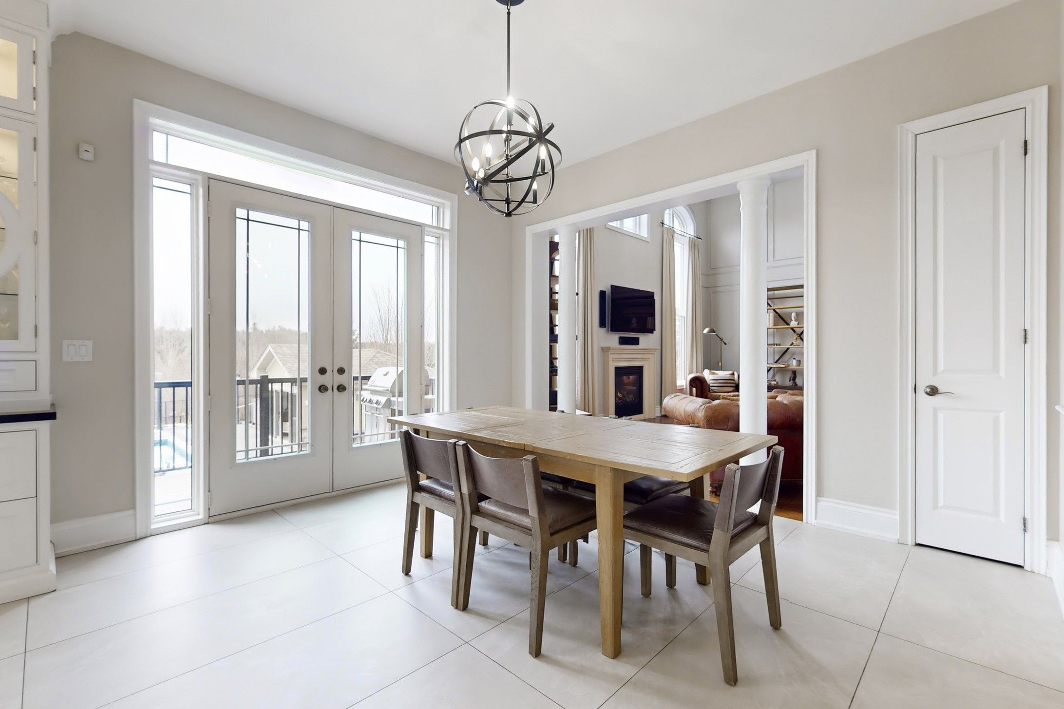Discover this exceptional executive home offering approx. 7,800 sqft of refined living space & a private outdoor retreat backing onto conservation in prestigious nobleton! A striking exterior of stone, stucco and brick introduces a home defined by timeless elegance and architectural detail. Soaring ceilings, intricate millwork, crown moulding & expansive windows flood the space with natural light. The grand foyer opens to sophisticated principal rooms with hardwood flooring, a waffle ceiling, decorative columns & custom finishes. The chef-inspired kitchen is equipped with sub-zero refrigeration, a 6-burner gas range, granite countertops, a large centre island, walk-in pantry & walkout to a composite deck. Overlooking the kitchen, the dramatic 2-storey family room offers a gas fireplace, statement lighting & open-to-above design. A main floor office adds flexibility for work or guests. Upstairs, hardwood flooring continues throughout with wrought iron railings & open balcony views. The luxurious primary suite features a fireplace, built-in speakers, dual walk-in closets & a spa-like ensuite with soaker tub, glass shower & double vanity. All additional bedrooms are generously sized with access to full bathrooms. The finished basement with approx. 10 ft ceilings is designed for entertaining, complete with a rec room, full bar, gas fireplace, projector & screen, guest bedroom & bath w/heated floor. Step outside to a resort-style backyard with tiered stone patios, in-ground pool, hot tub, outdoor kitchen & a fully finished cabana with kitchenette, fireplace, serving windows & outdoor shower! Landscape lighting, outdoor speakers & multiple seating areas complete this private outdoor retreat. Don't miss out on this rare offering combining luxury, design & lifestyle!