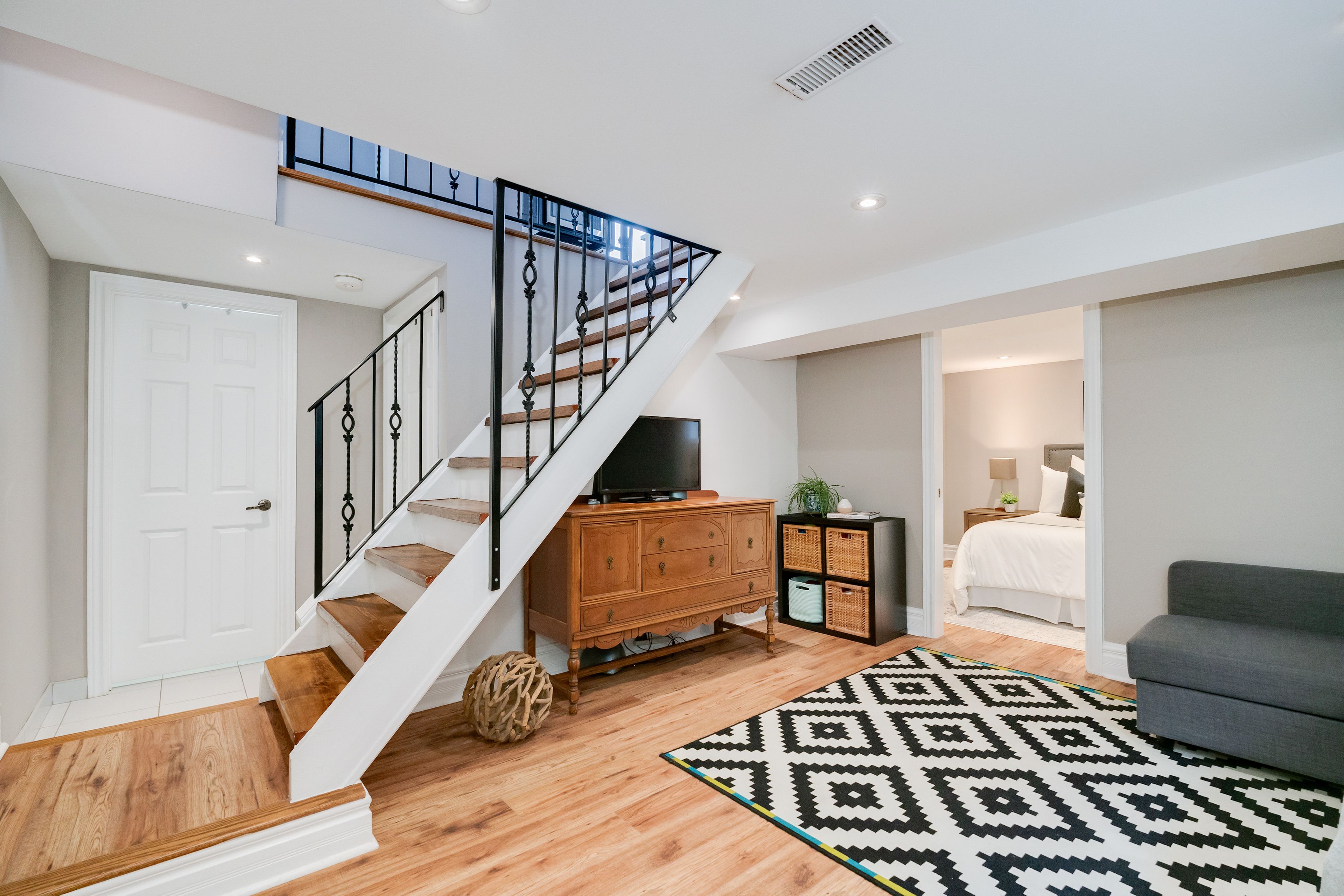 Nestled on a quiet, tree-lined street, this beautifully renovated three-bedroom home welcomes you the moment you walk through the front door. Designed with both style and function in mind, the bright and spacious open-concept living, dining, and kitchen area offers a seamless flow for everyday living and entertaining. The fully renovated kitchen showcases quartz countertops, a centre island, stainless steel appliances, and abundant storage and workspace-ideal for family gatherings and hosting. On the second floor, you'll find two spacious bedrooms, enhanced with upgraded insulation for added comfort and efficiency. The bright, well-lit basement offers a third large bedroom complete with a window and closet. The lower level also features an inviting recreation room with comfortable ceiling height, large windows that fill the space with natural light, a three-piece bathroom, and ample storage in the utility room. Step outside to your private, landscaped backyard oasis, thoughtfully designed with a custom patio and pergola, and expansive green space-perfect for relaxing, entertaining, or outdoor play. Conveniently located close to shops, grocery stores, restaurants, ttc, recreation centres, schools, and parks-everything you need is just minutes from your front door.