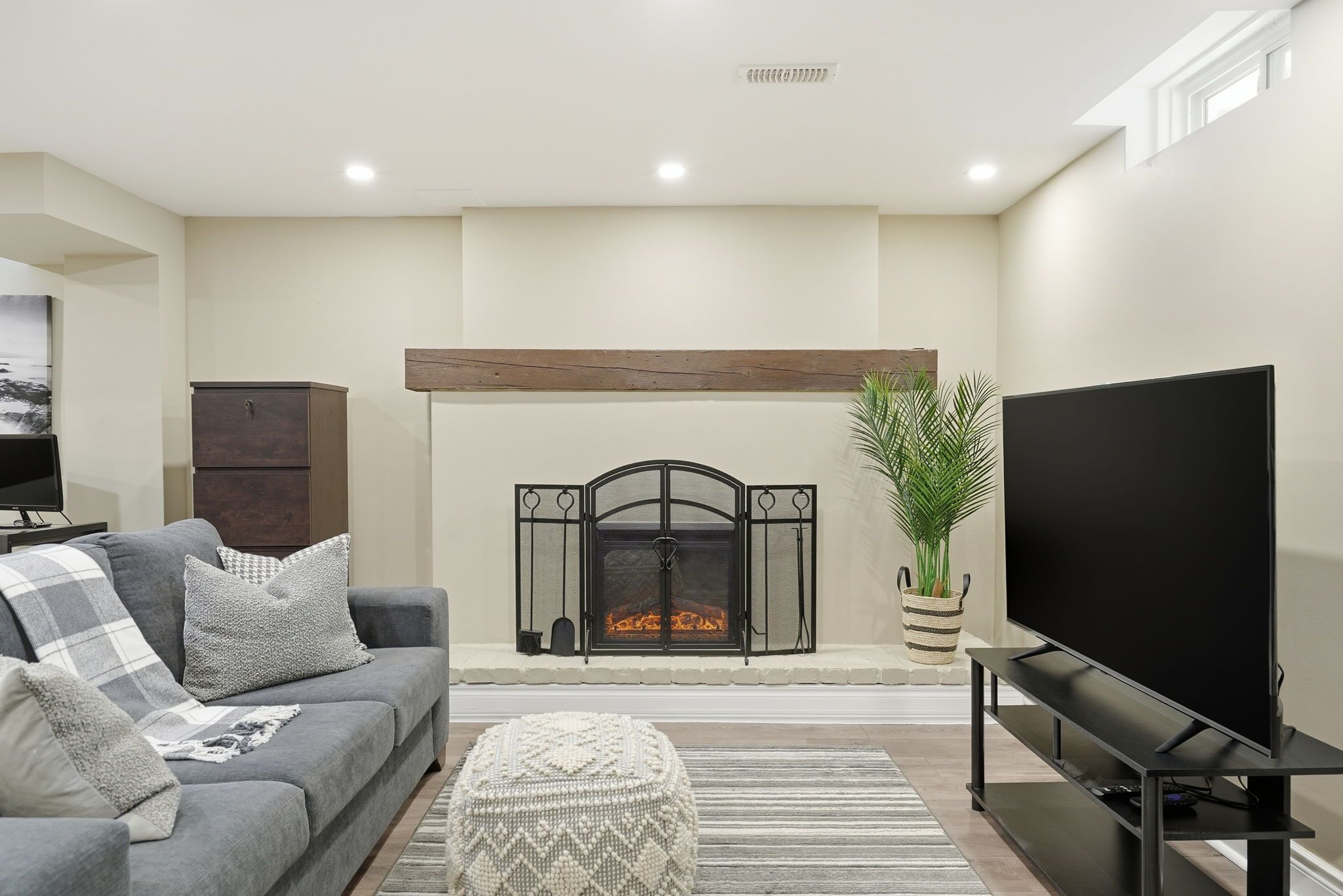 • Finished basement with rec room and electric fireplace for relaxation.