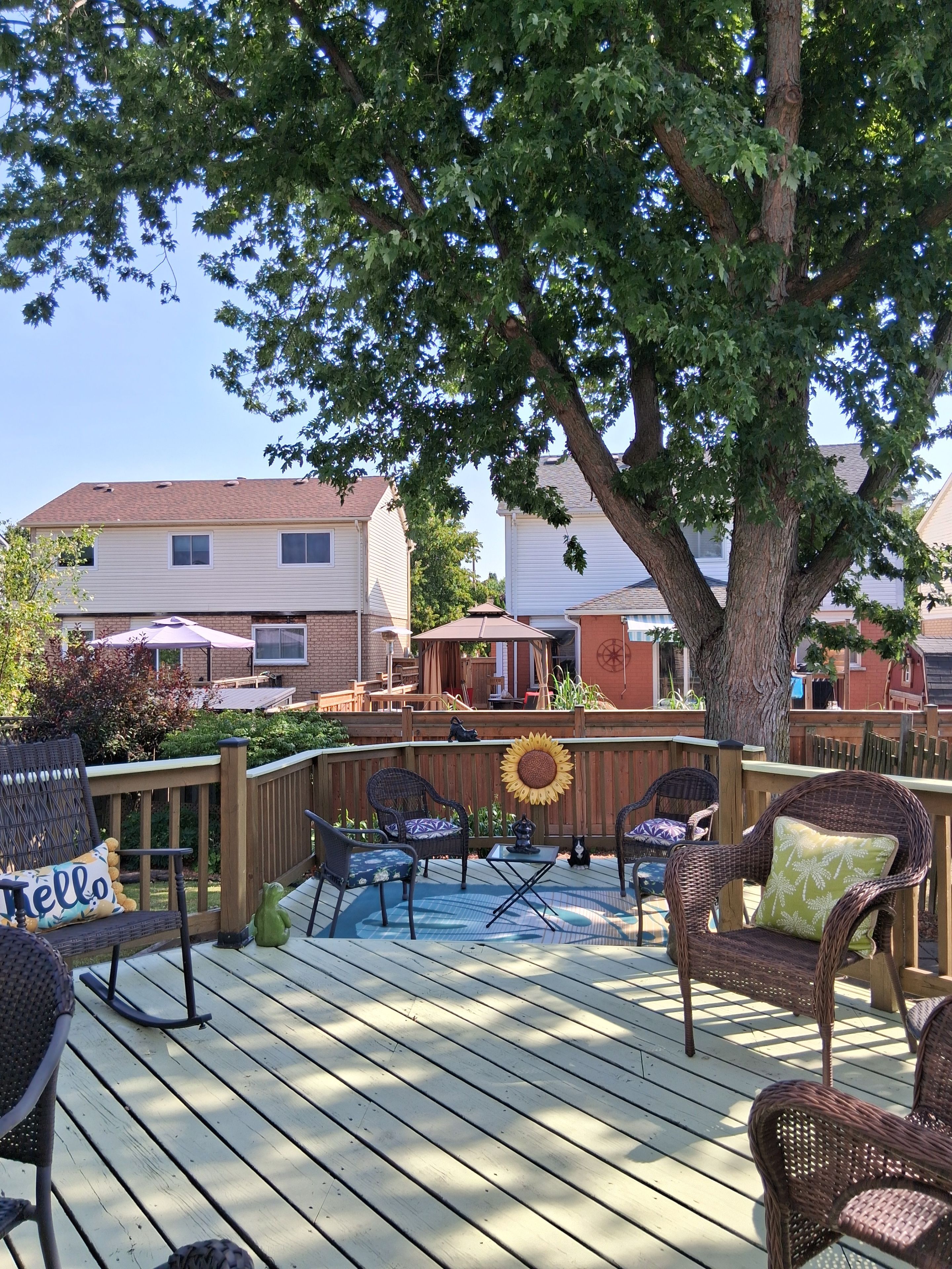 • Large deck perfect for summer barbecues in a family-friendly neighborhood.