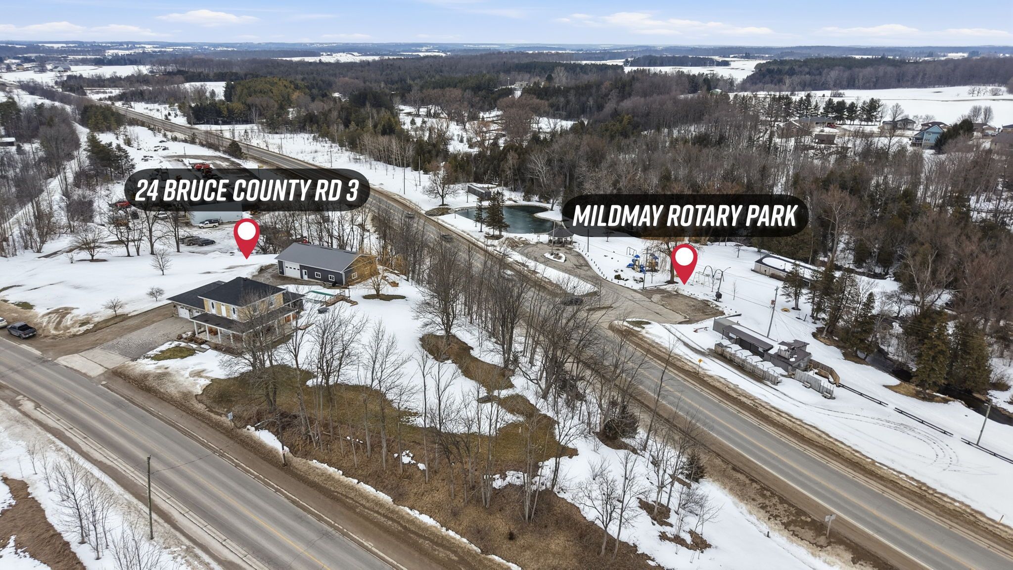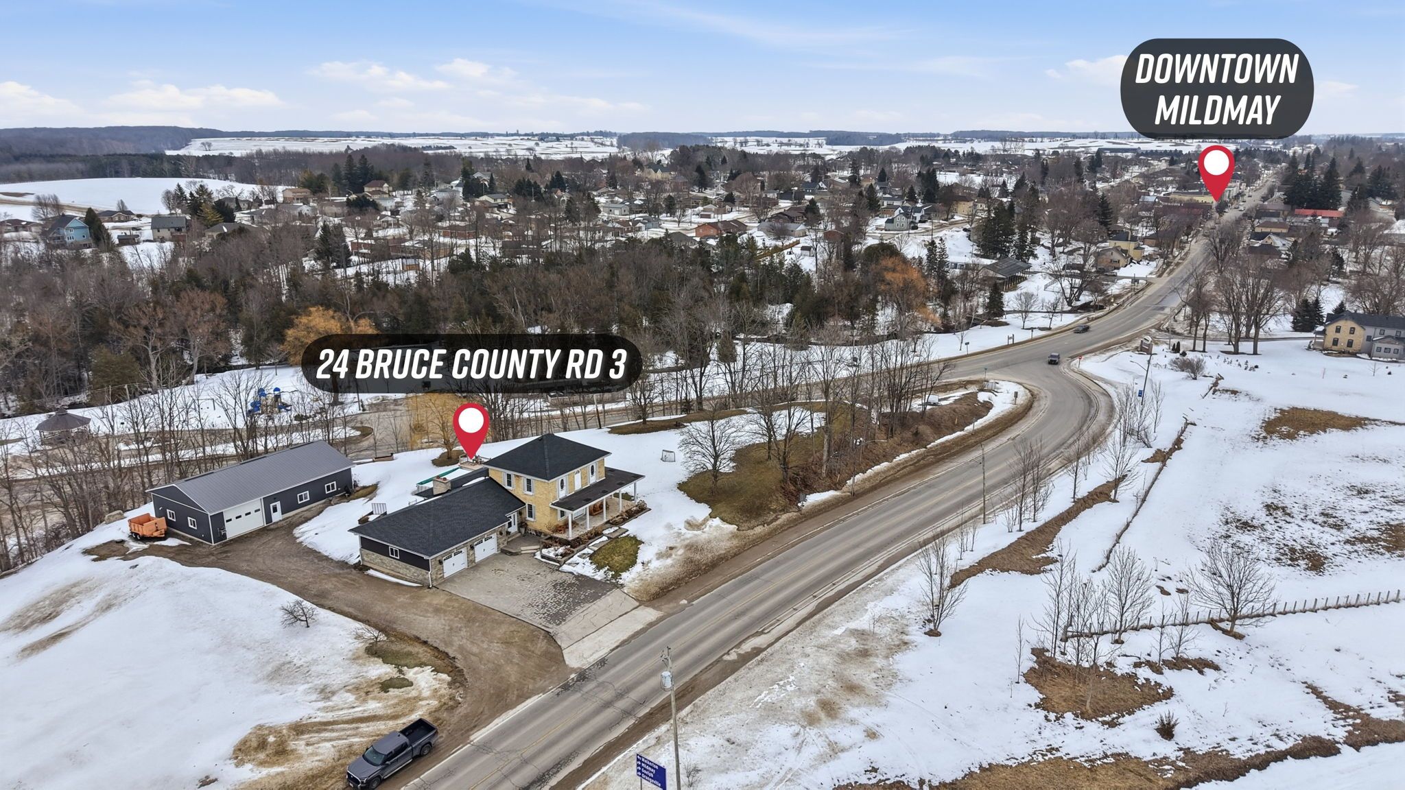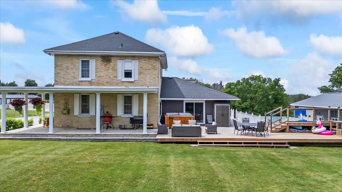 Welcome to your bruce county oasis at 24 bruce road 3, mildmayexperience the perfect harmony of historic charm and modern luxury in this stunning 3 bedroom, 2 bath century home. Perfectly situated on just under an acre on the edge of mildmay, this property offers a rare lifestyle for families and hobbyists alike, blending the peacefulness of country living with the convenience of being minutes from everything you need. From the moment you arrive, the wraparound covered porch invites you to start your mornings with a quiet coffee soaking in the sunrise, while the expansive back deck, yard & pool provide the ultimate vantage point for breathtaking sunsets while making memories with family and friends. The heart of the home is designed for both functionality and a major "wow" factor. An updated chef's kitchen features ample cabinetry and counter space, flowing seamlessly into a large dining room and an expansive family room anchored by a breathtaking gas fireplace with a custom stone backdrop. Whether you're hosting holiday dinners inside or spending summer afternoons enjoying the pool and a game of horseshoes in the massive backyard, there is a perfect space for everyone to enjoy. For those who prioritize space for projects and storage, this property truly delivers. In addition to the attached and heated 2-car garage, you will find a massive 34' x 56' heated shop, offering the ultimate workspace for your tools, toys, and big projects. This home and property blend comfort and convenience in one incredible package, located just minutes from the amenities of mildmay-including groceries, dining, and healthcare-and offering an easy commute to walkerton, bruce power, and the beautiful beaches of lake huron. Call your realtor today to view what could be your new country home at 24 bruce road 3, mildmay.
