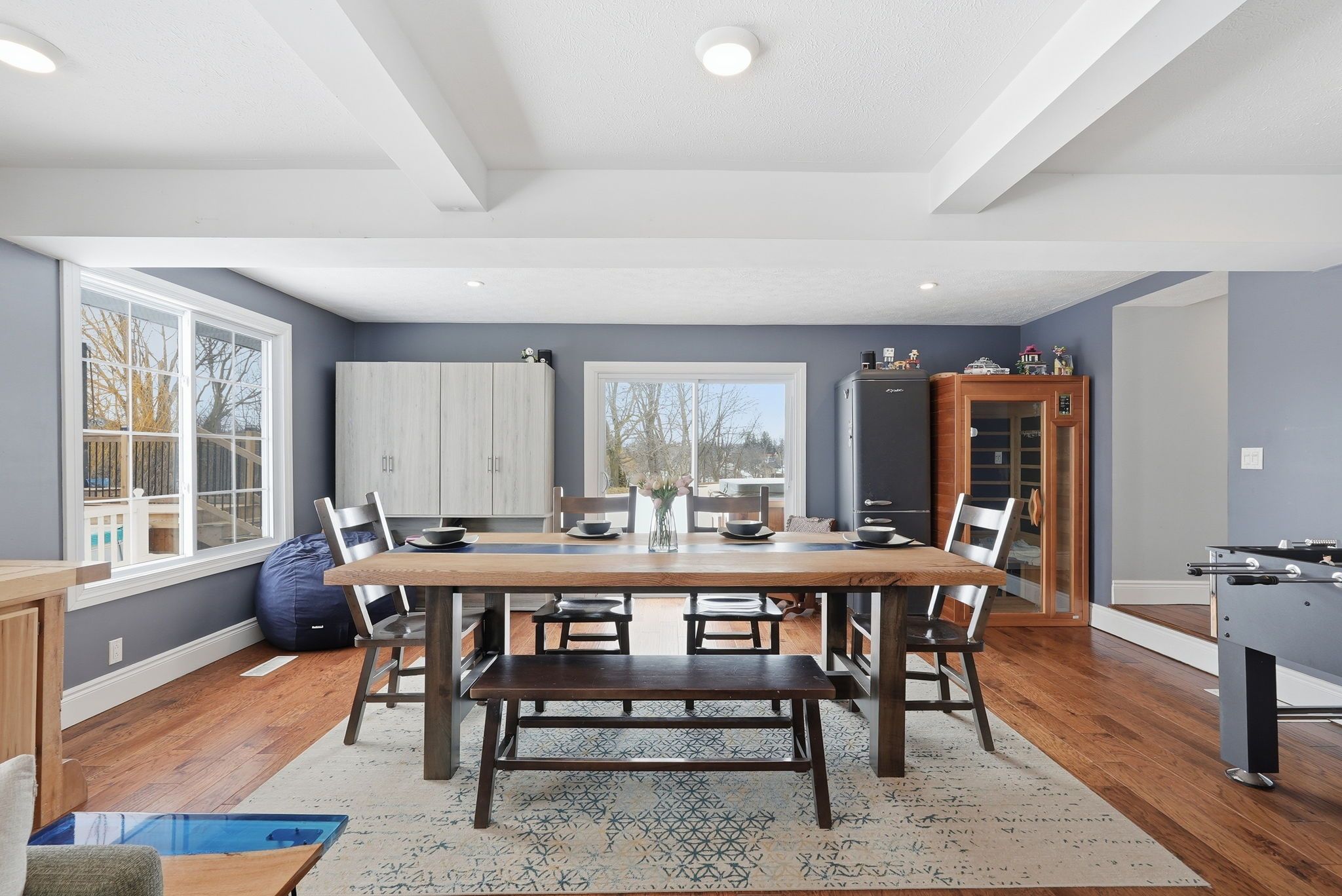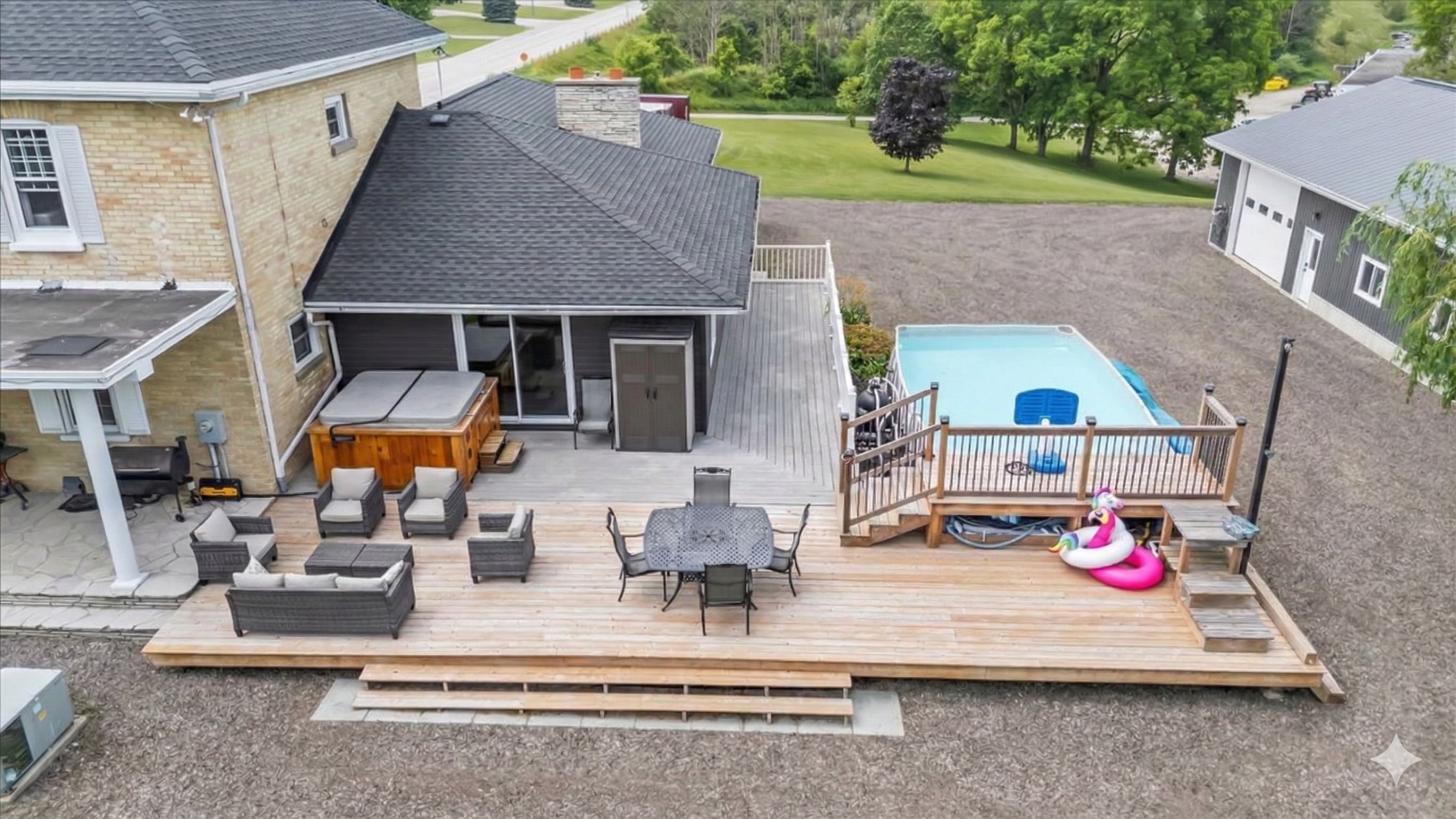 • Expansive backyard with a pool and deck for family gatherings.