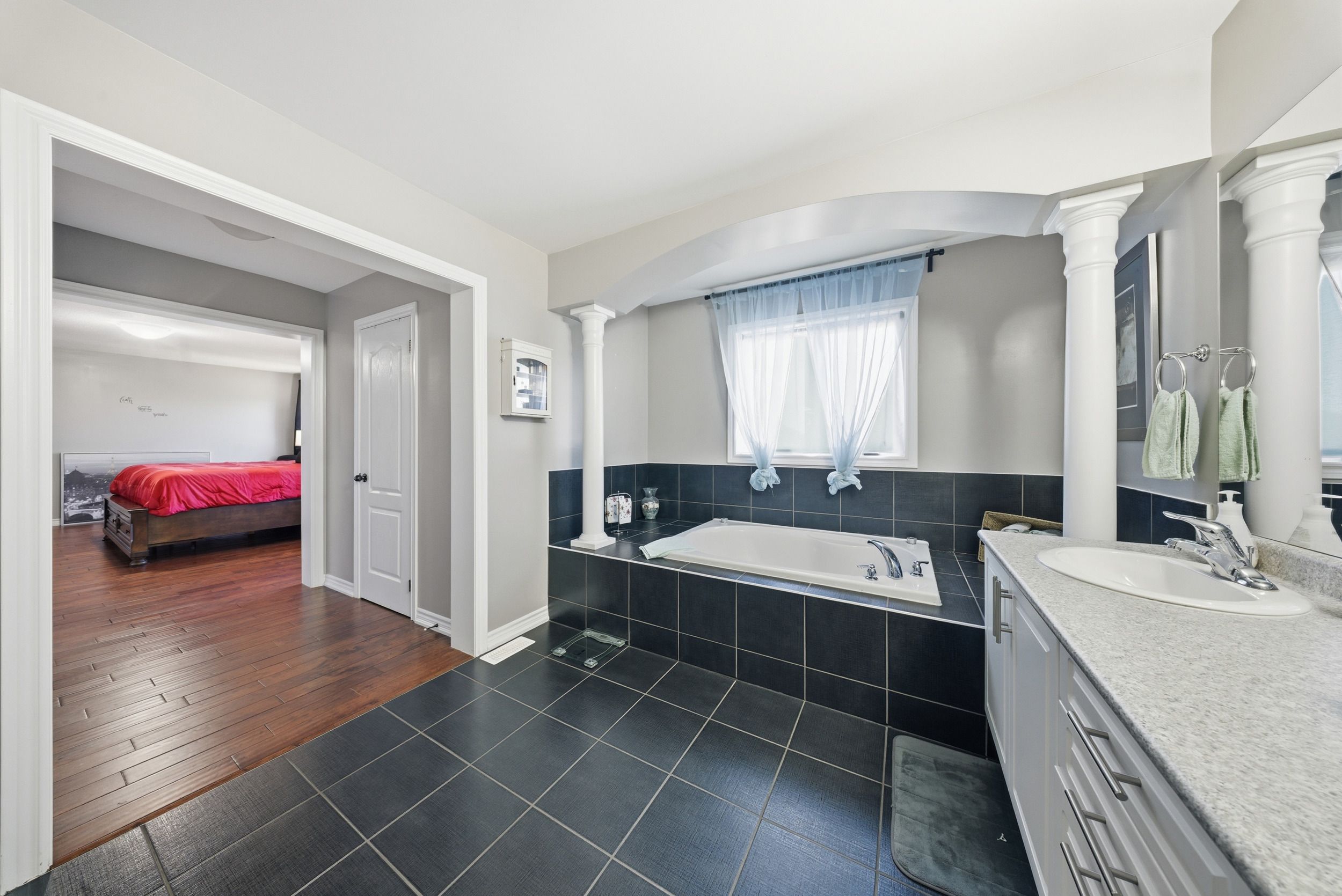 • Expansive primary suite with walk-in closet and luxurious ensuite bathroom.