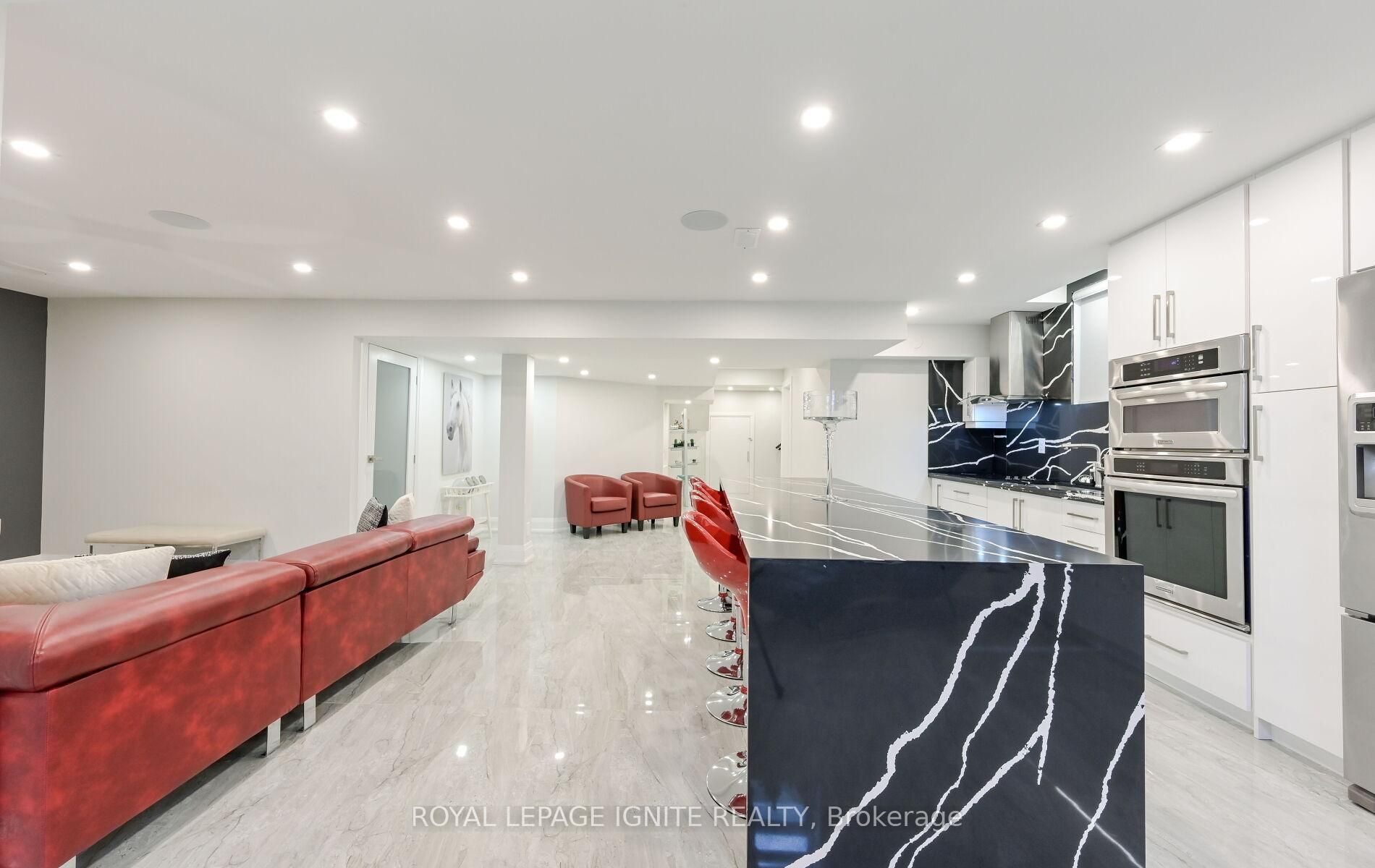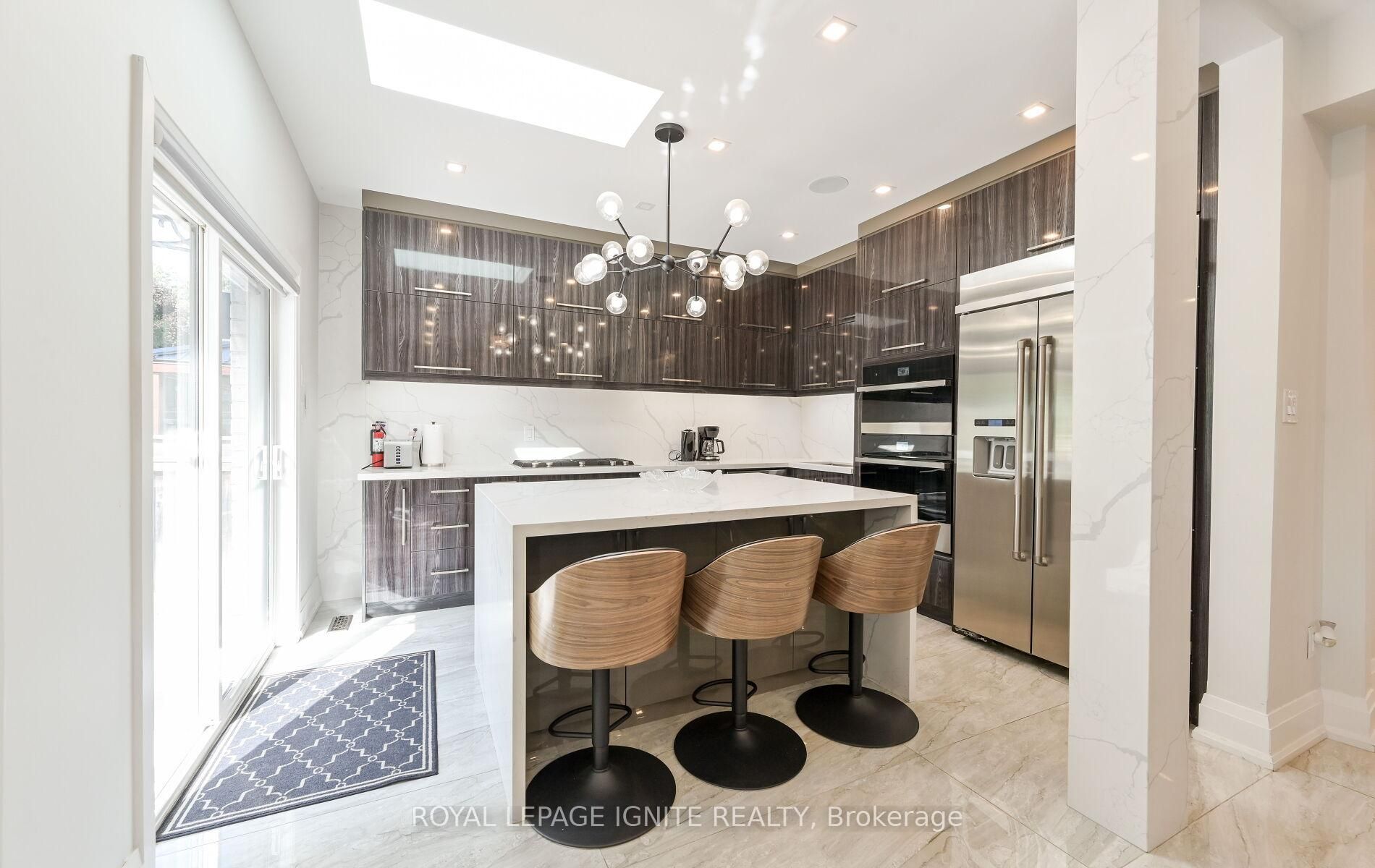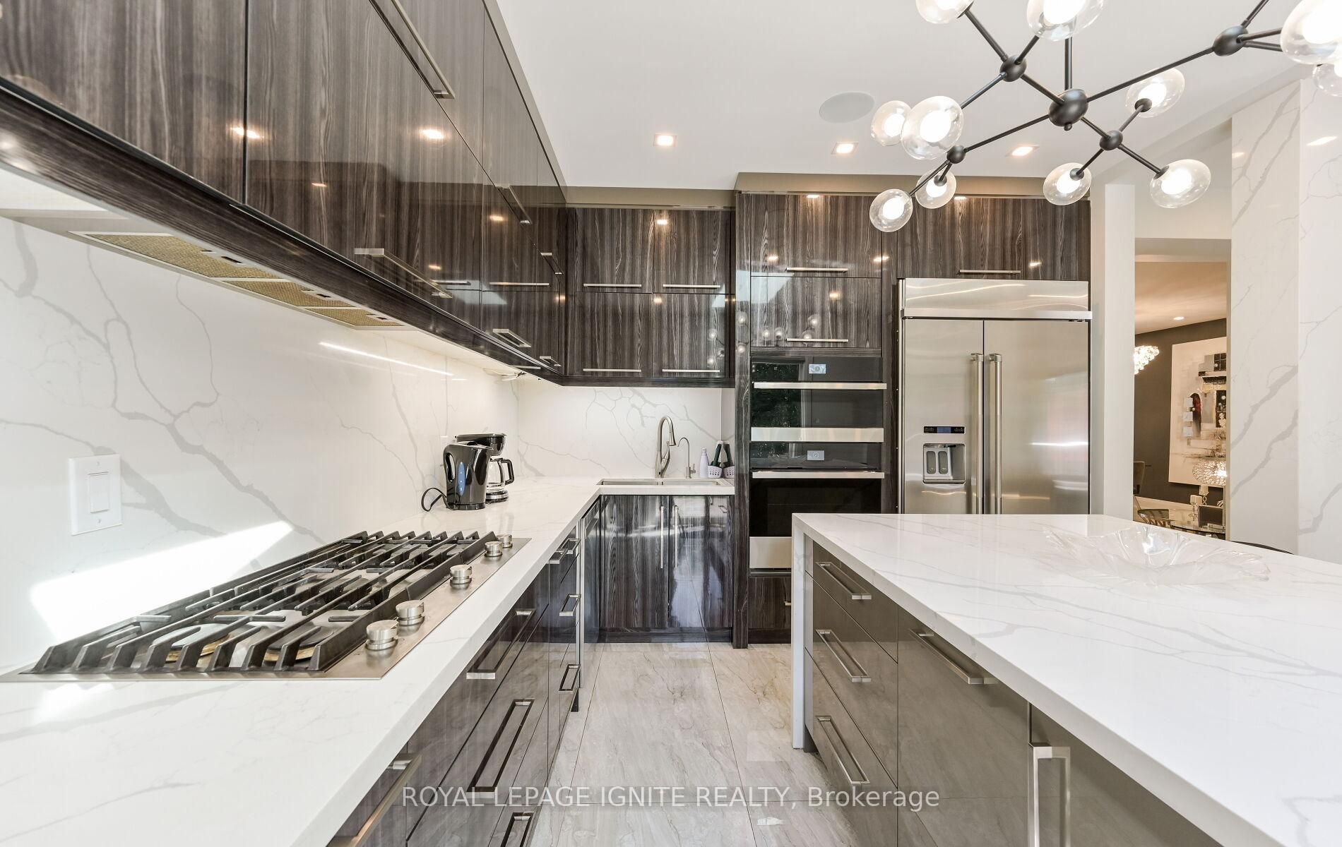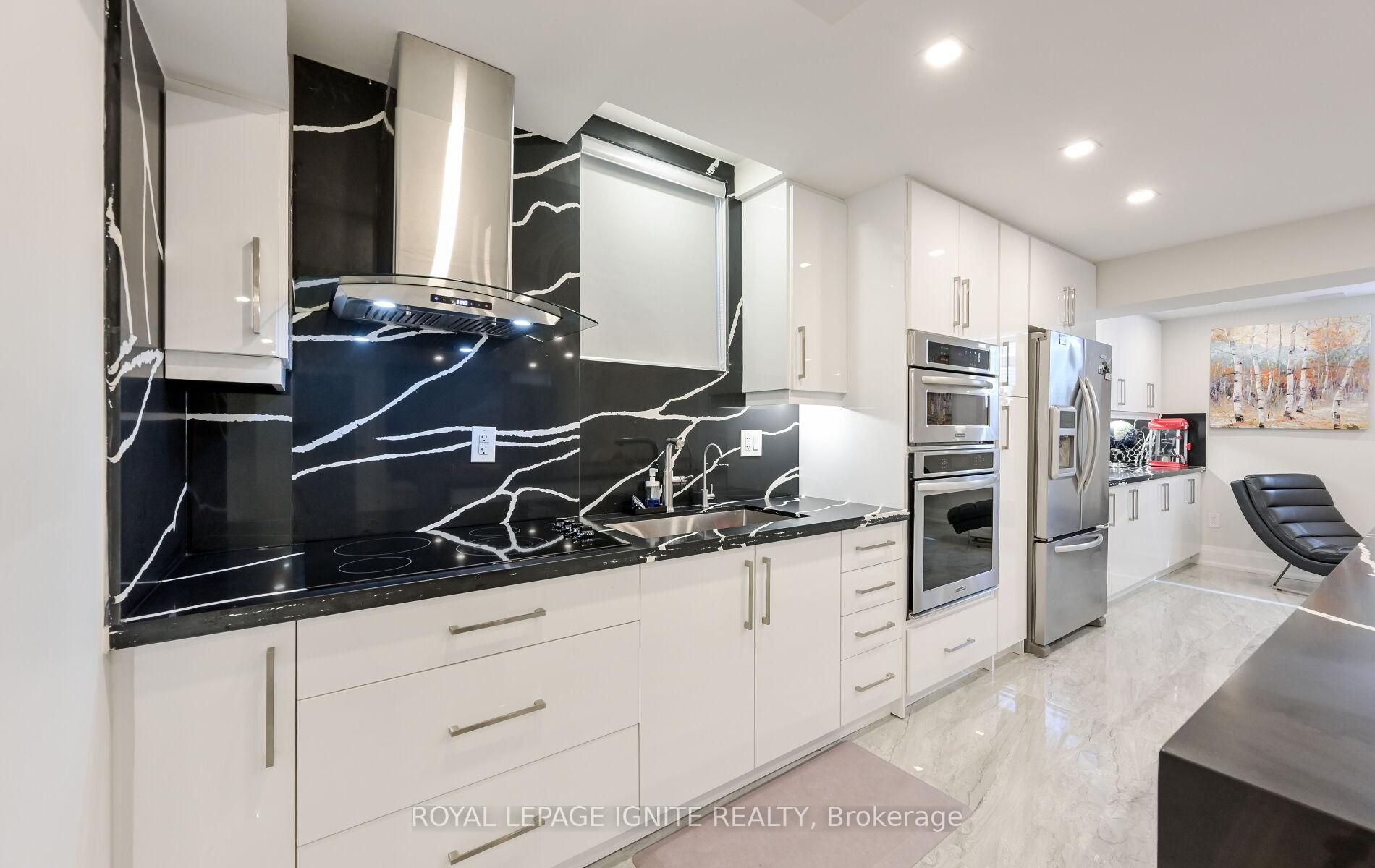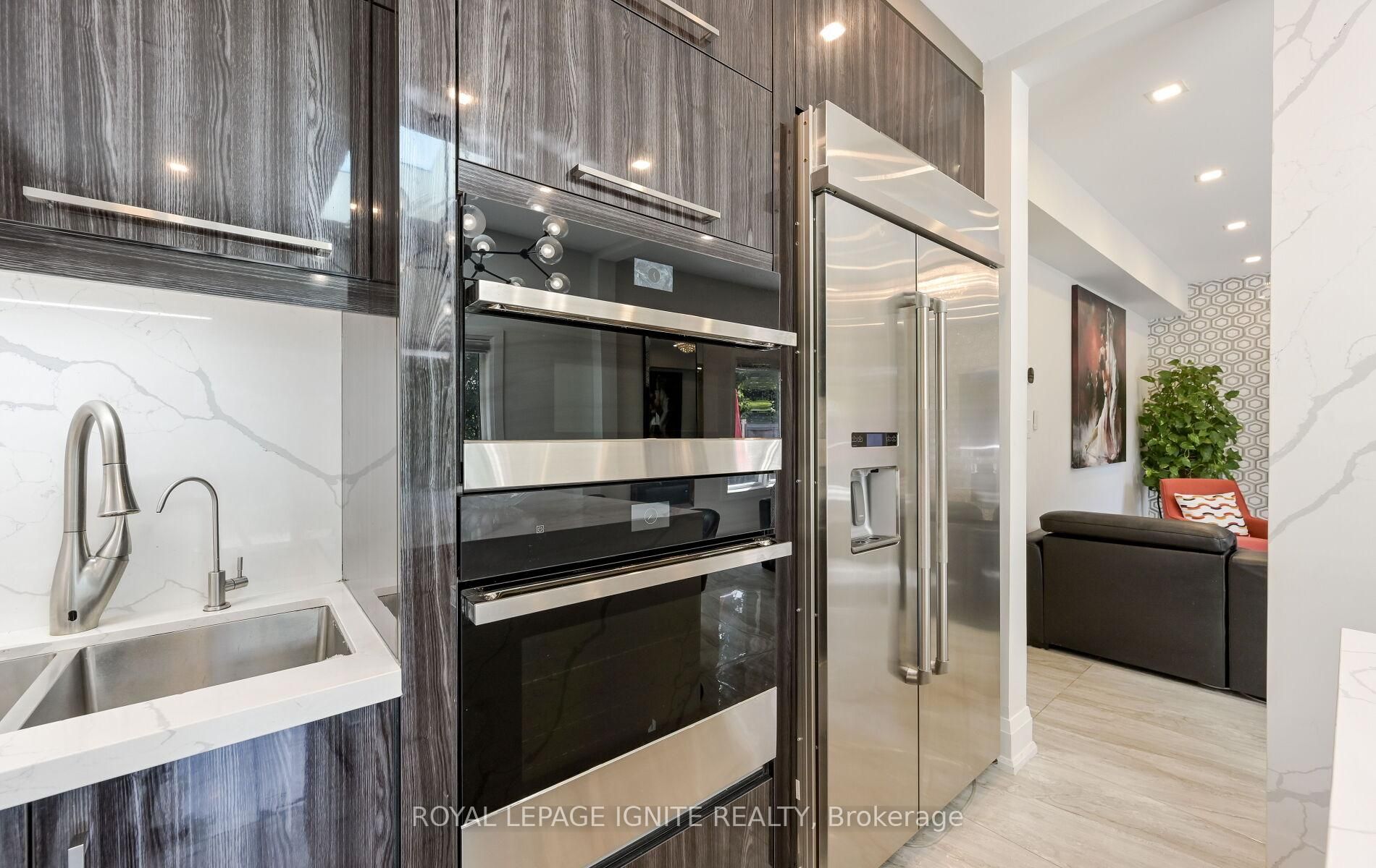 • Gourmet kitchen features built-in appliances and a stylish quartz backsplash.
