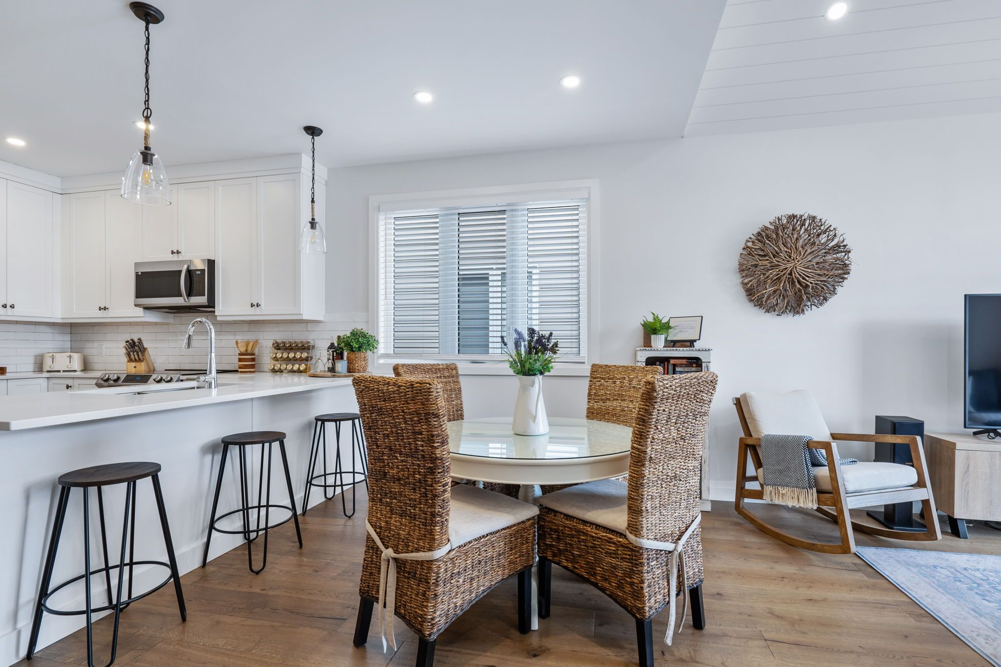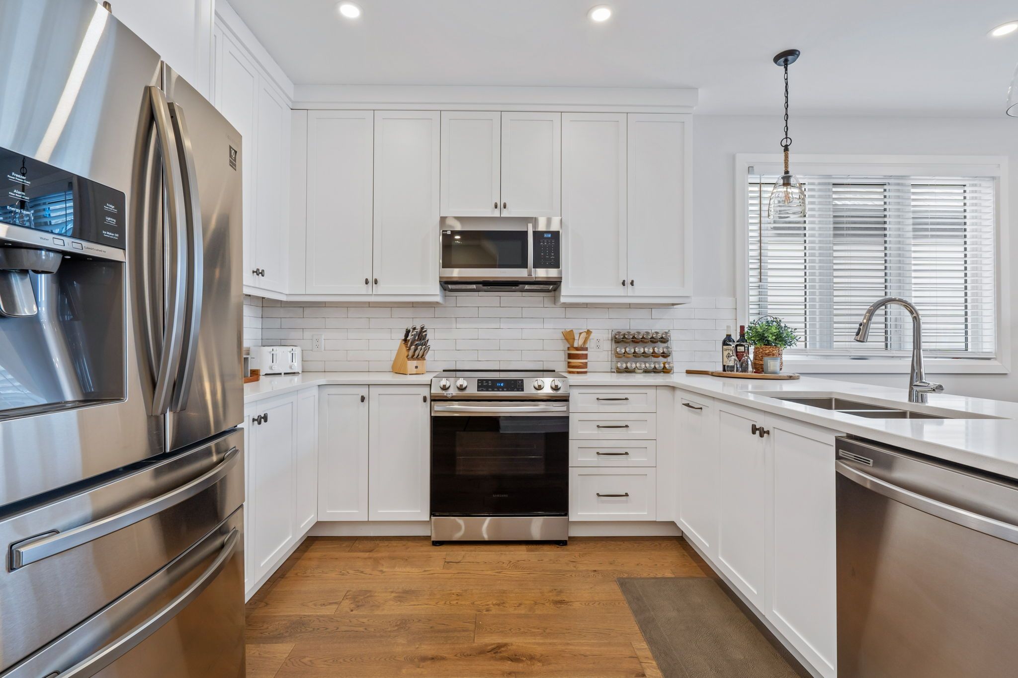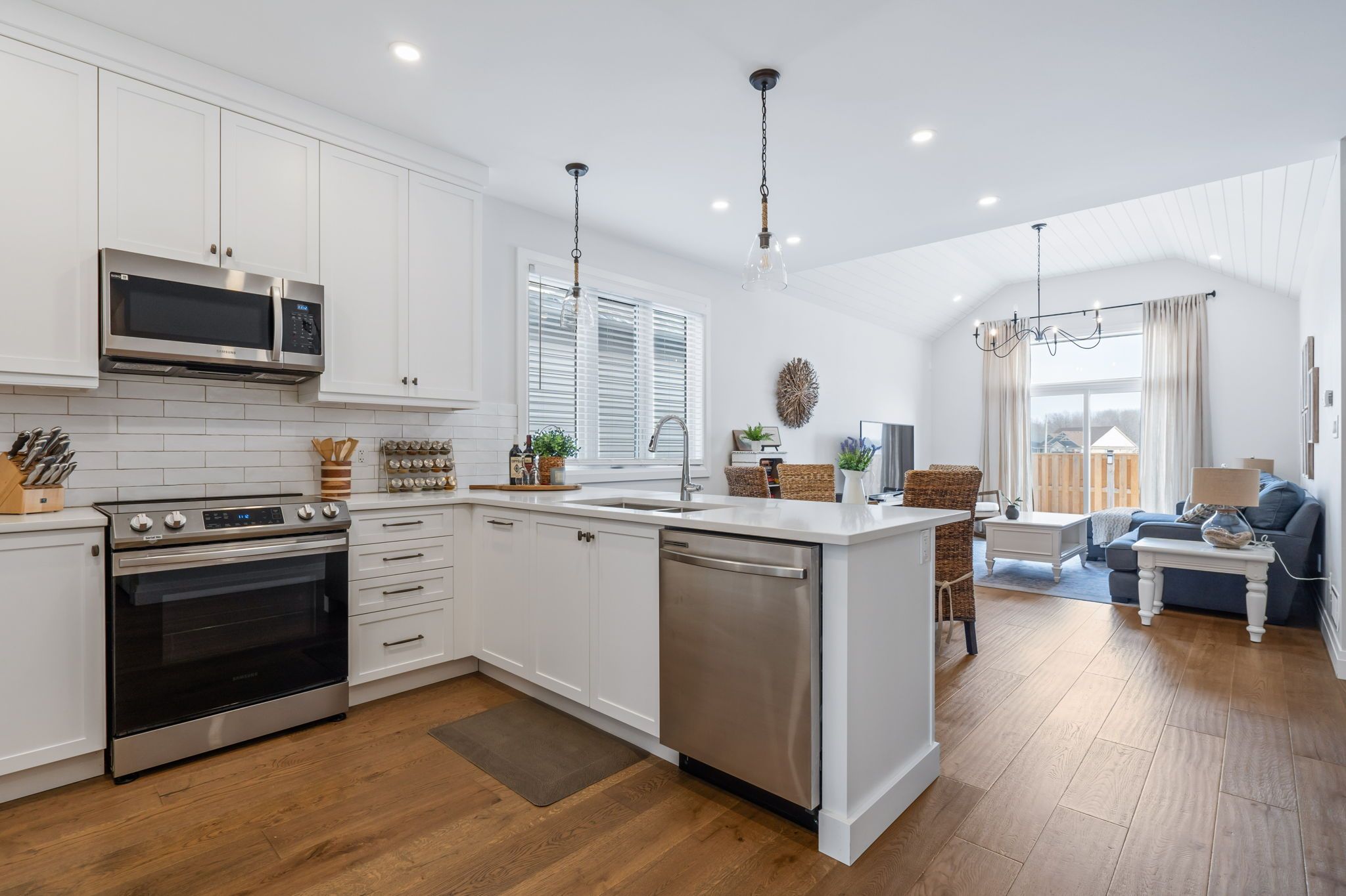 • Modern kitchen features upgraded cabinetry and seamless flow to living areas.