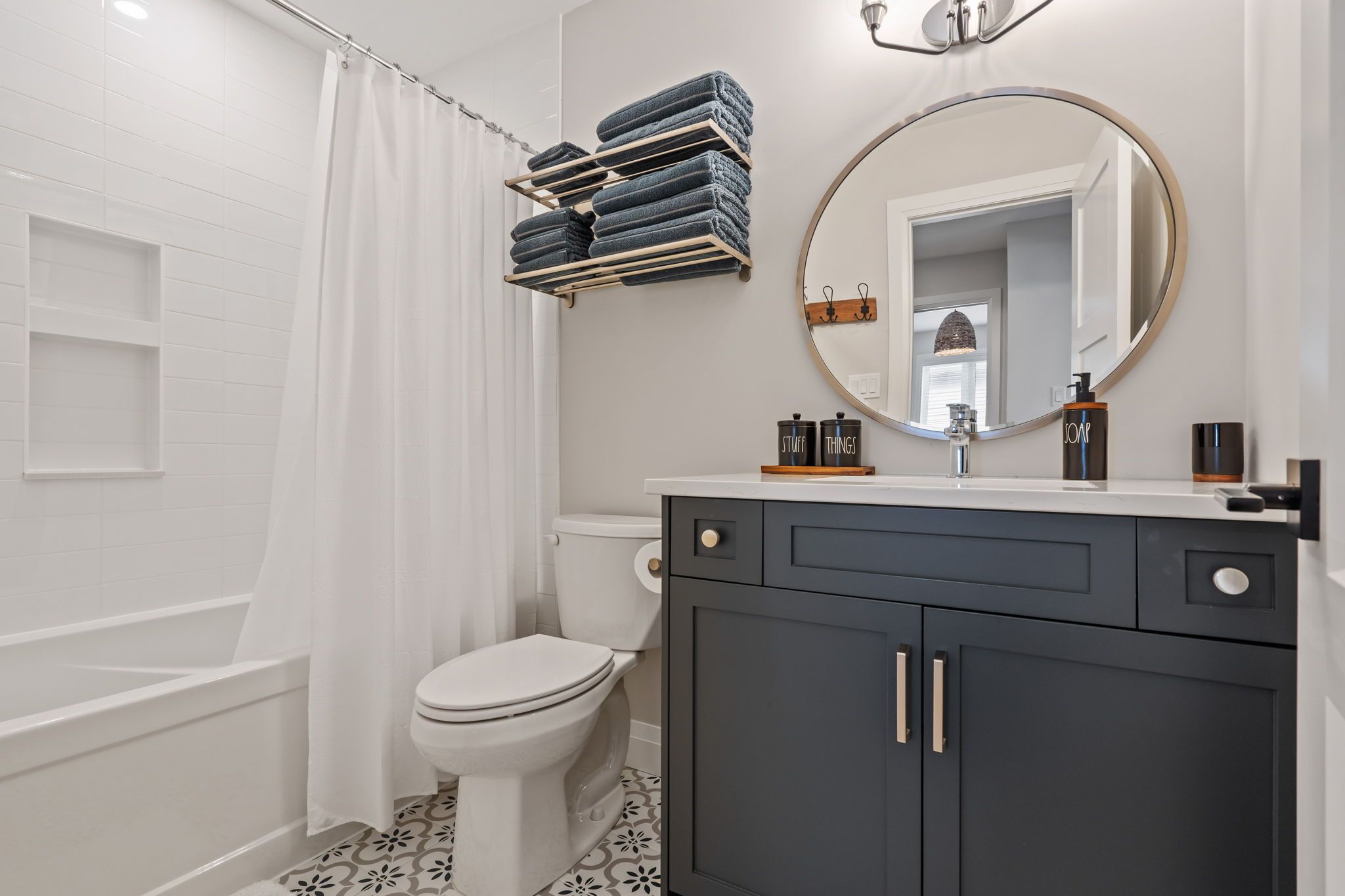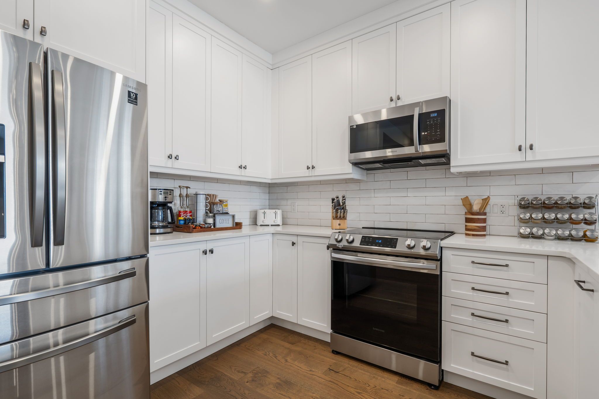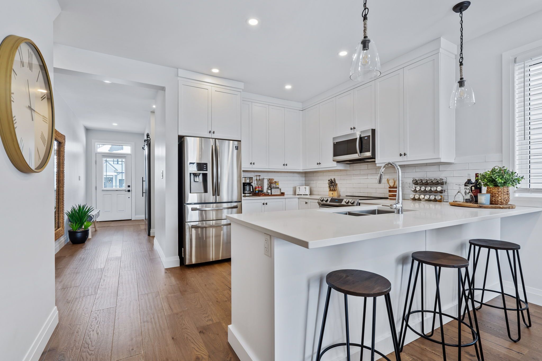 • Modern kitchen features upgraded cabinetry and seamless flow to living areas.