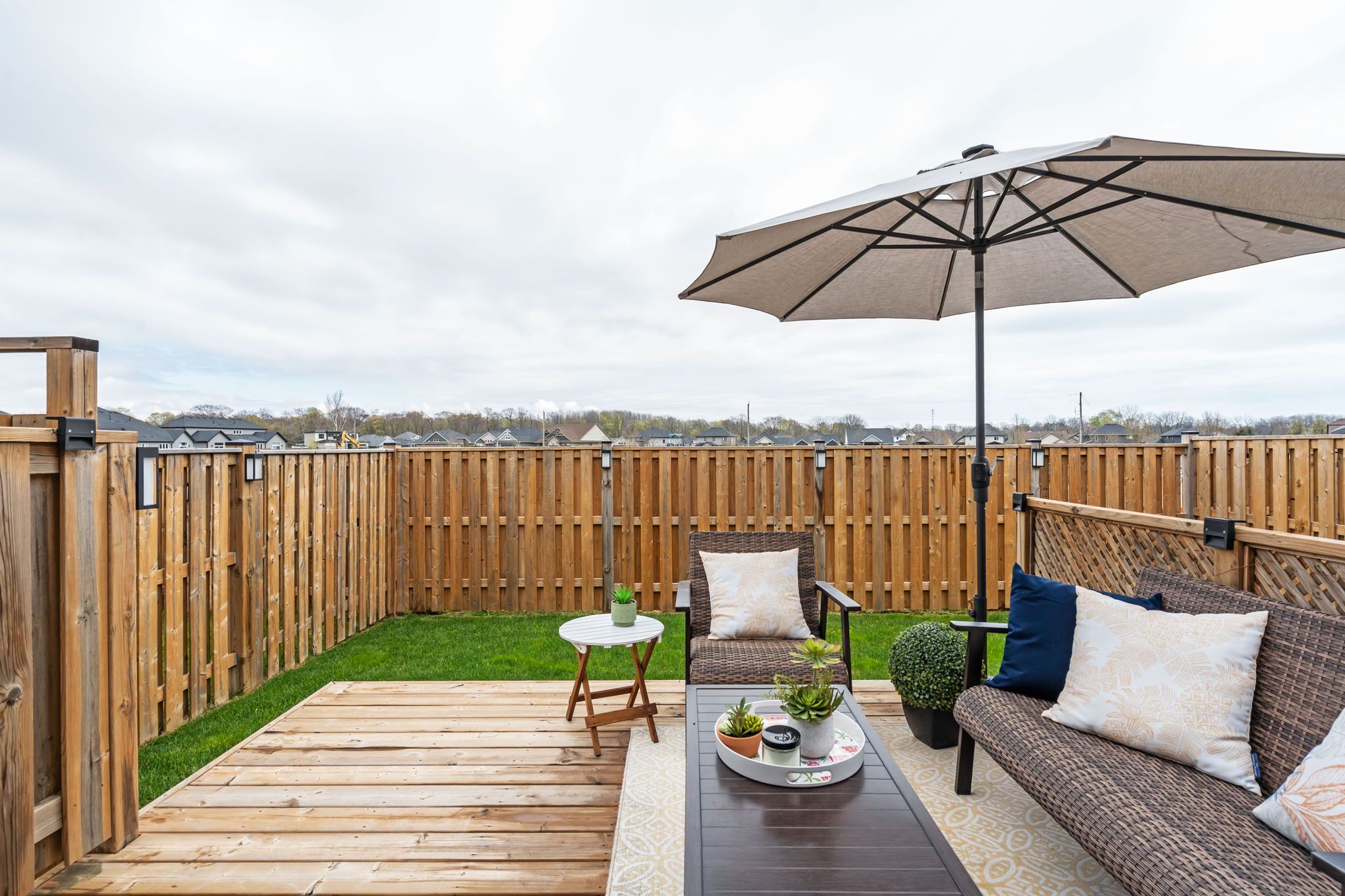 • Fully fenced yard includes a deck, perfect for relaxation and gatherings.