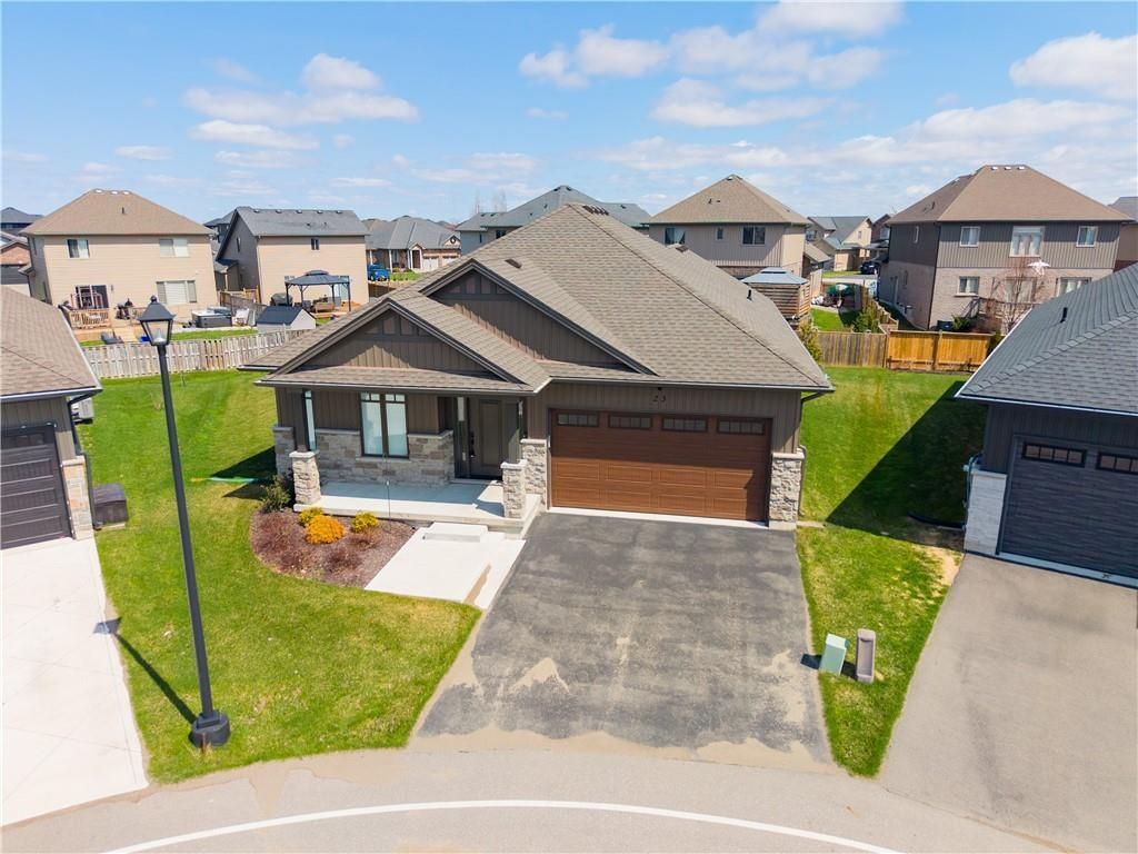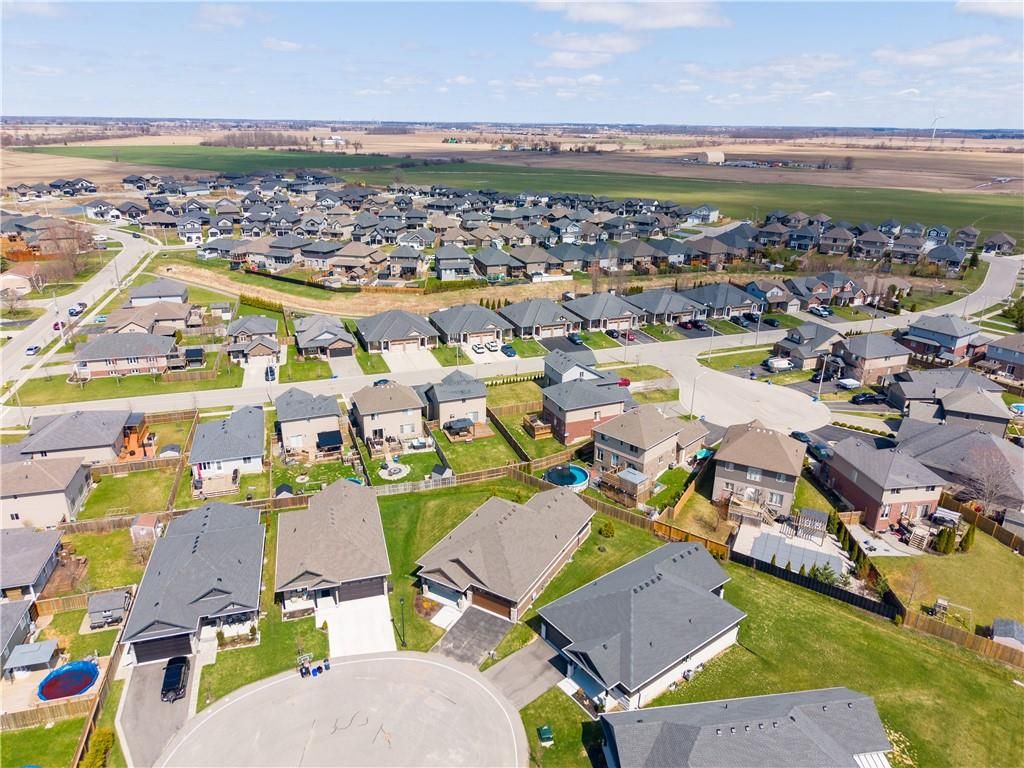 Envision small town ontario living in lavish luxury - look no further than this gorgeous 2022 custom built "ed robinson" bungalow situated at end of private court surrounded by similar maintained properties in jarvis - canada's officially recognized "friendliest town" located btw hagersville, port dover/lake erie, simcoe & waterford - 45/50 min commute to hamilton, brantford & 403. Positioned handsomely on 0. 18 ac pie-shaped lot introducing 1623sf of flawless main level living space plus 190sf professionally designed sunroom, 1623sf basement & 405sf 2-car garage. Oversized paved driveway leads to inviting covered verandah where front door enters to grand 10ft high foyer offering walk-in coat closet - continues past 4pc main bath flanked by 2 spacious bedrooms - on to stunning, open concept great room showcasing 10ft coiffured beamed ceilings, n/g fireplace set in stone hearth & shiplap accent walls - segues to chef's "dream" kitchen sporting chic in-vogue white cabinetry, designer island, quartz countertops, tile back-splash & convenient side laundry room housing walk-in pantry & direct garage access. Adjacent dinette enjoys patio door walk-out to gorgeous sunroom incs wall to wall windows with access to 100sf covered outdoor entertainment porch. Beautiful north wing primary bedroom boasts beautiful 3pc en-suite & walk-in closet completing main floor plan. Stylish matte finished engineered hardwood flooring, 9ft ceilings, custom milled trim/baseboards & led lighting compliment neutral décor with sophisticated flair. Spacious, unblemished lower level provides the ideal blank canvas to create your personally designed floor plan & finishes. Notable extras - motorized hi-end blinds, outdoor irrigation system, quality appliances, n/g furnace, a/c, hrv air exchange & landscaping. Reasonable $280 p/month road maintenance fee incs street lights, water/sewer charges & lawn cutting - snow clearing is owner's responsibility. Lock box for viewing ease. "perfection personified"