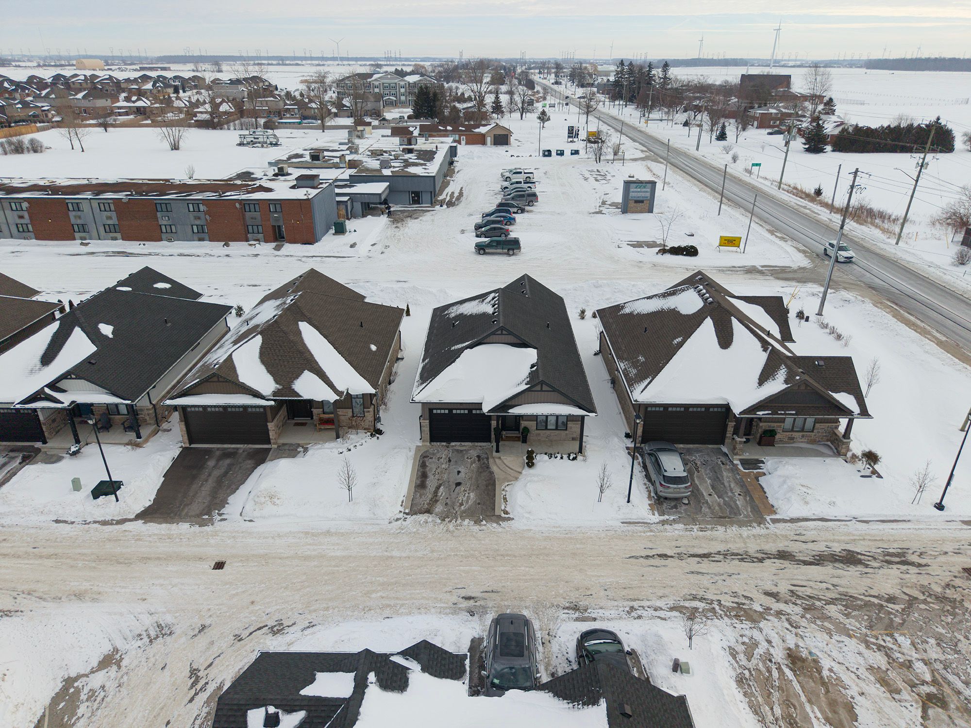 Welcome to this beautifully maintained 2+1 bedroom, 3 bathroom bungalow in the charming small town of jarvis- voted as "canada's kindest community" and just a short drive to the beaches and amenities of port dover. Nestled within a quiet, welcoming neighbourhood that still fosters a strong sense of community, this common elements condominium offers a thoughtful layout, modern finishes, and comfortable one-floor living with a fully finished basement-ideal for downsizers, professionals, or those seeking low-maintenance living. The main floor boasts engineered oak hardwood in the principal rooms, a versatile front bedroom/den with double doors, and a 4-piece guest bathroom with tiled floors and tub/shower combo. The bright kitchen offers white shaker cabinetry, quartz countertops, subway tile backsplash, peninsula, and stainless steel frigidaire appliances. The open living/dining area includes a natural gas fireplace and patio doors that lead out to the backyard. The primary suite features a walk-in closet and a 3-piece glass shower ensuite, plus convenient main-floor laundry with garage access. The fully renovated (2022) basement provides a spacious recreation room with shiplap accent walls, sconce lighting, and an electric fireplace-ideal for relaxing or entertaining-along with a large bedroom featuring a proper egress window and generous closet, plus ensuite privilege to a stylish 3-piece bathroom with glass shower. Step outside to the covered backyard patio, a perfect space to enjoy your morning coffee, host summer dinners, or unwind in any season. Thoughtfully designed, move-in ready, and located in a welcoming community that offers small-town charm with nearby lakeside access, this home delivers comfort, style, and easy living-an excellent opportunity in jarvis.