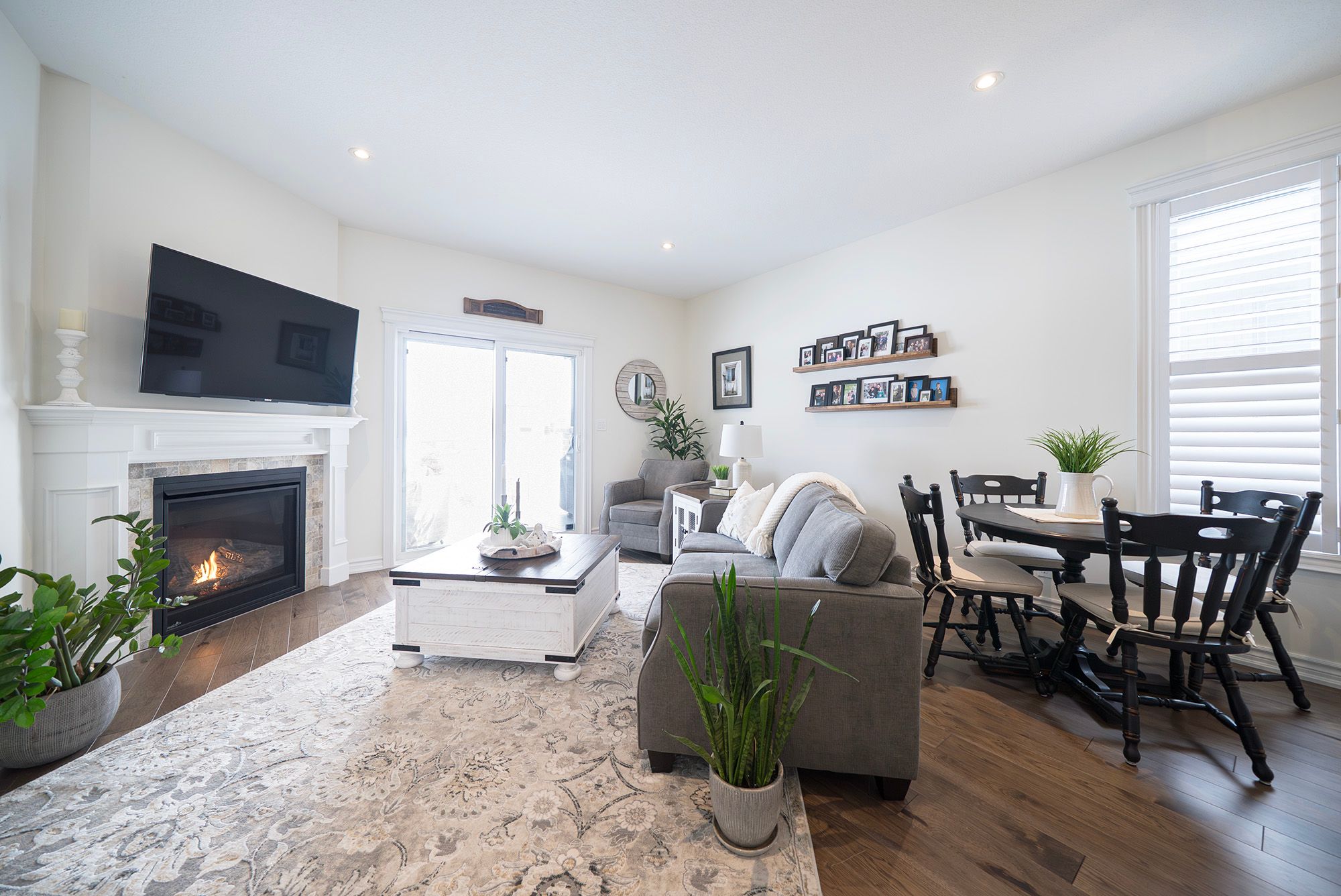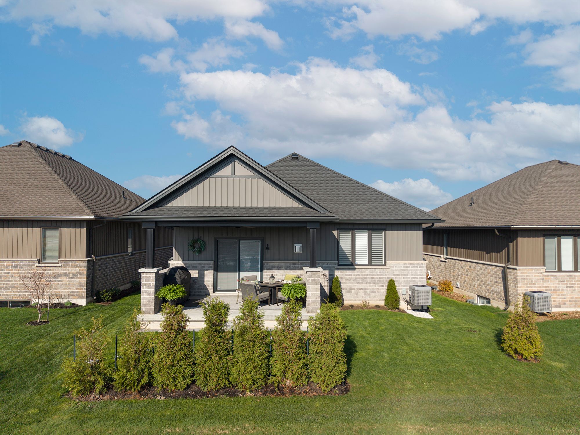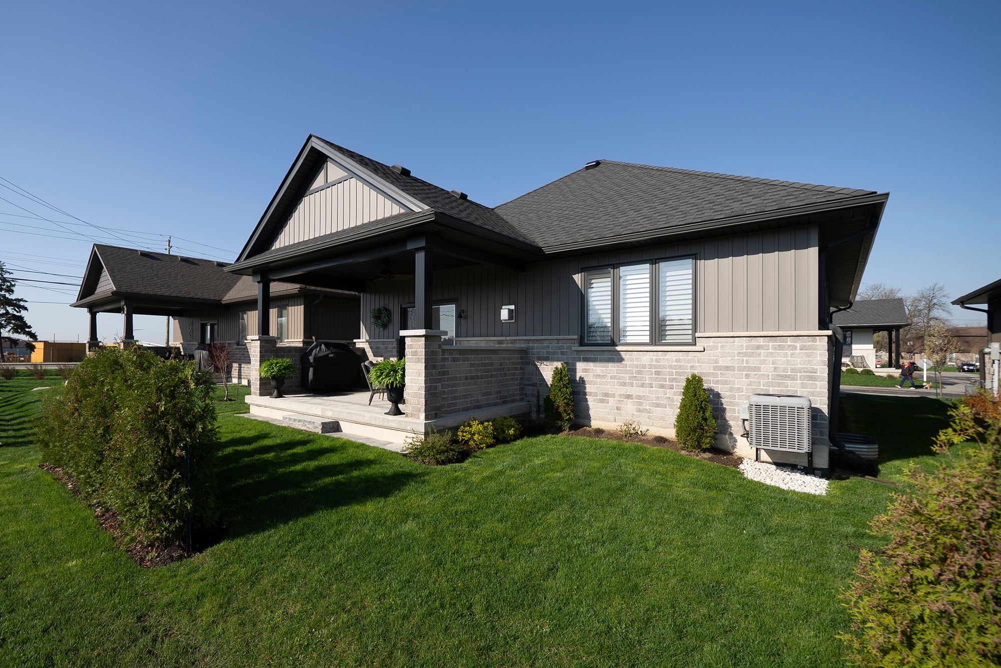Welcome to this beautifully maintained 2+1 bedroom, 3 bathroom bungalow in the charming small town of jarvis - voted as "canada's kindest community" and just a short drive to the beaches and amenities of port dover. Nestled within a quiet, welcoming neighbourhood that still fosters a strong sense of community, this common elements condominium offers a thoughtful layout, modern finishes, and comfortable one-floor living with a fully finished basement-ideal for downsizers, professionals, or those seeking low-maintenance living. The main floor boasts engineered oak hardwood in the principal rooms, a versatile front bedroom/den with double doors, and a 4-piece guest bathroom with tiled floors and tub/shower combo. The bright kitchen offers white shaker cabinetry, quartz countertops, subway tile backsplash, peninsula, and stainless steel frigidaire appliances. The open living/dining area includes a natural gas fireplace and patio doors that lead out to the backyard. The primary suite features a walk-in closet and a 3-piece glass shower ensuite, plus convenient main-floor laundry with garage access. The fully renovated (2022) basement provides a spacious recreation room with shiplap accent walls, sconce lighting, and an electric fireplace-ideal for relaxing or entertaining-along with a large bedroom featuring a proper egress window and generous closet, plus ensuite privilege to a stylish 3-piece bathroom with glass shower. Step outside to the covered backyard patio, a perfect space to enjoy your morning coffee, host summer dinners, or unwind in any season. Thoughtfully designed, move-in ready, and located in a welcoming community that offers small-town charm with nearby lakeside access, this home delivers comfort, style, and easy living-an excellent opportunity in jarvis.