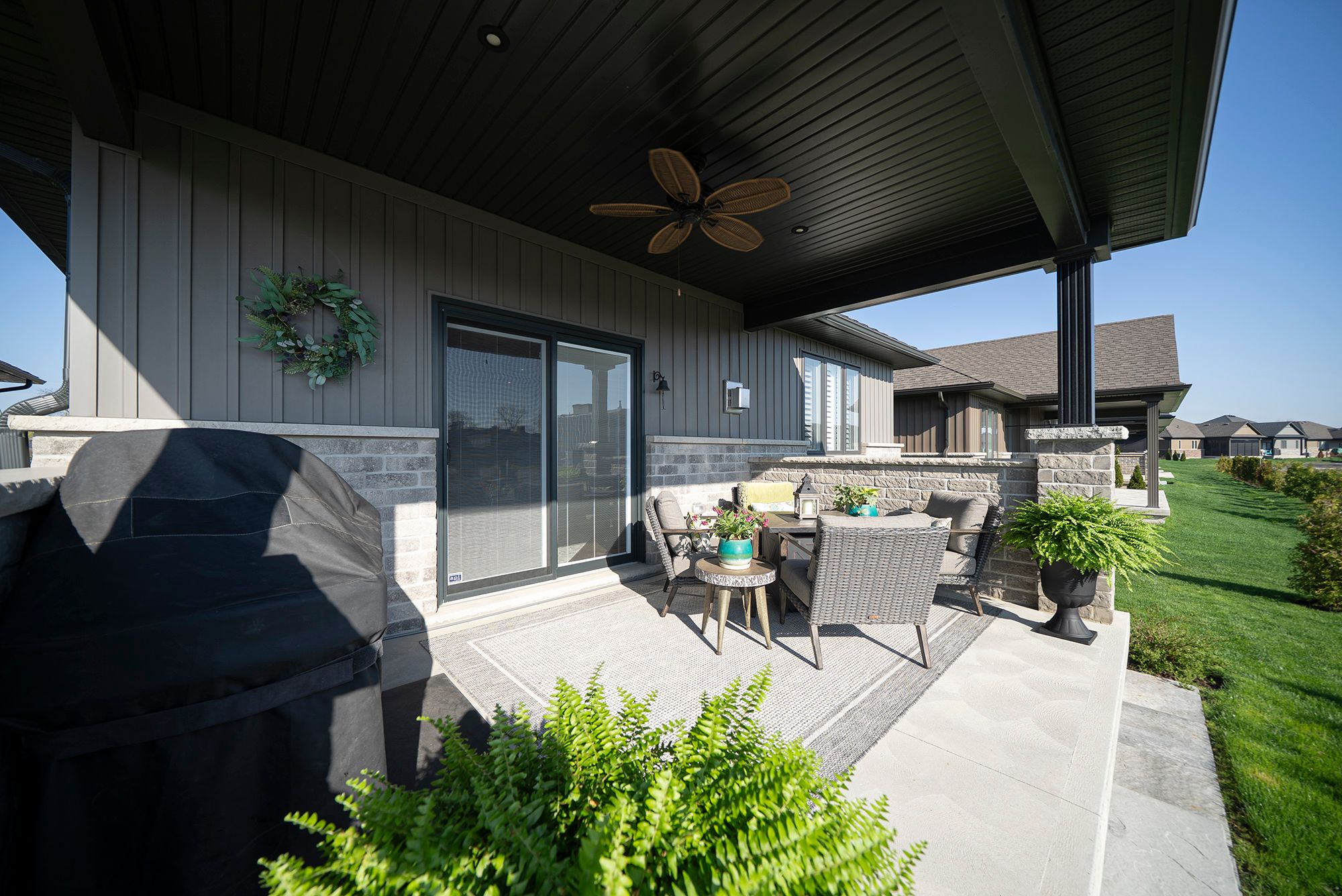 • Covered backyard patio ideal for morning coffee and summer gatherings.