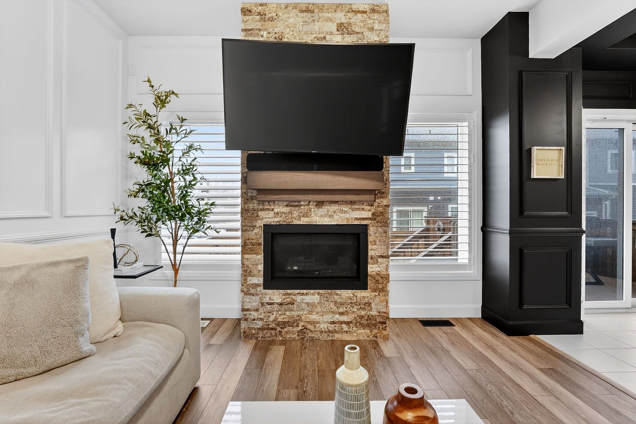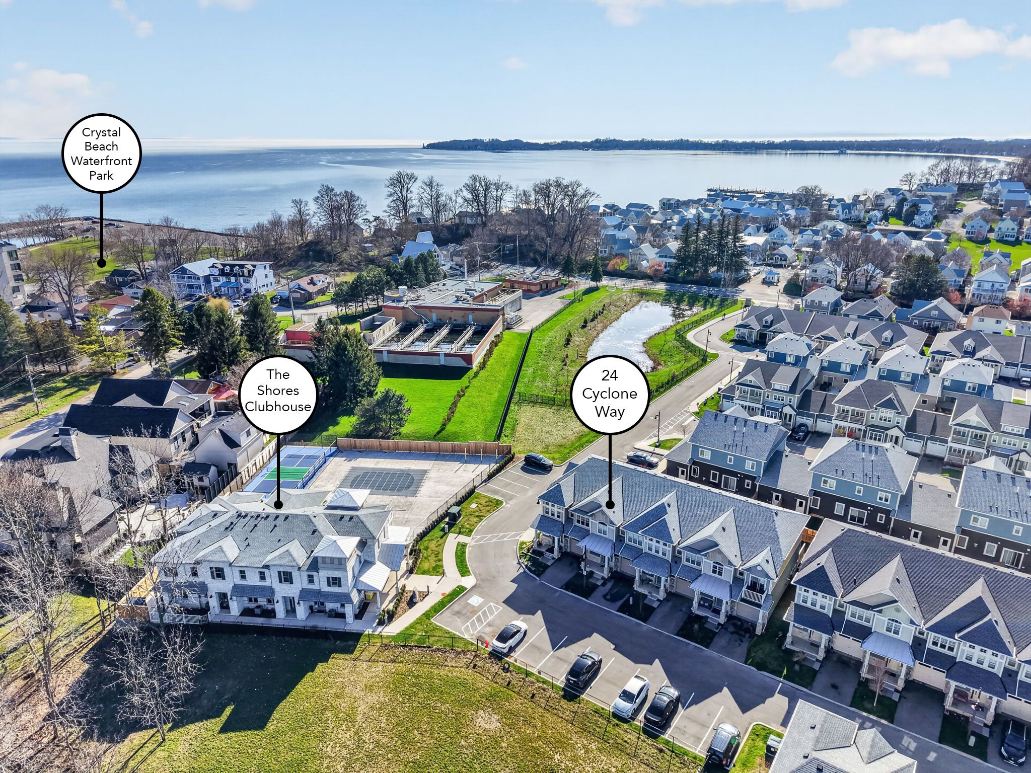 Welcome to 24 cyclone way! This freehold town offers 3 bedrooms and 3 bathrooms with approx. 1,575 square feet of above-grade living space. Open concept main floor features luxurious wainscoting detail, a combined modern kitchen and living area, a gas fireplace, and a walkout to the backyard with a gas bbq hookup. Functional layout with a floating staircase & garage access through the foyer. Upper leve features a primary bedroom with a built-in walk-in closet and an ensuite bath, plus two additional spacious bedrooms. Basement provides extra square footage, future potential, and includes a laundry area. Equipped with central air, a furnace-mounted humidifier w/ whole home humidity control, and wired ethernet ports throughout. Attached garage with slat-wall storage system and retractable hose, plus private driveway parking. Located in crystal beach, it is steps from bay beach and waterfront access, with close proximity to ridgeway, local restaurants, cafes, and shops. Easy access to fort erie, niagara falls, and the niagara wine region. Residents have access to the shores club, which offers an indoor/outdoor lounge, catering kitchen, fitness room, private workspaces, coffee bar, resort-style outdoor pool with a cabana, a sports court, and party/meeting spaces. Suitable for buyers seeking a newer home in a beach-oriented community with added lifestyle amenities. This won't last!