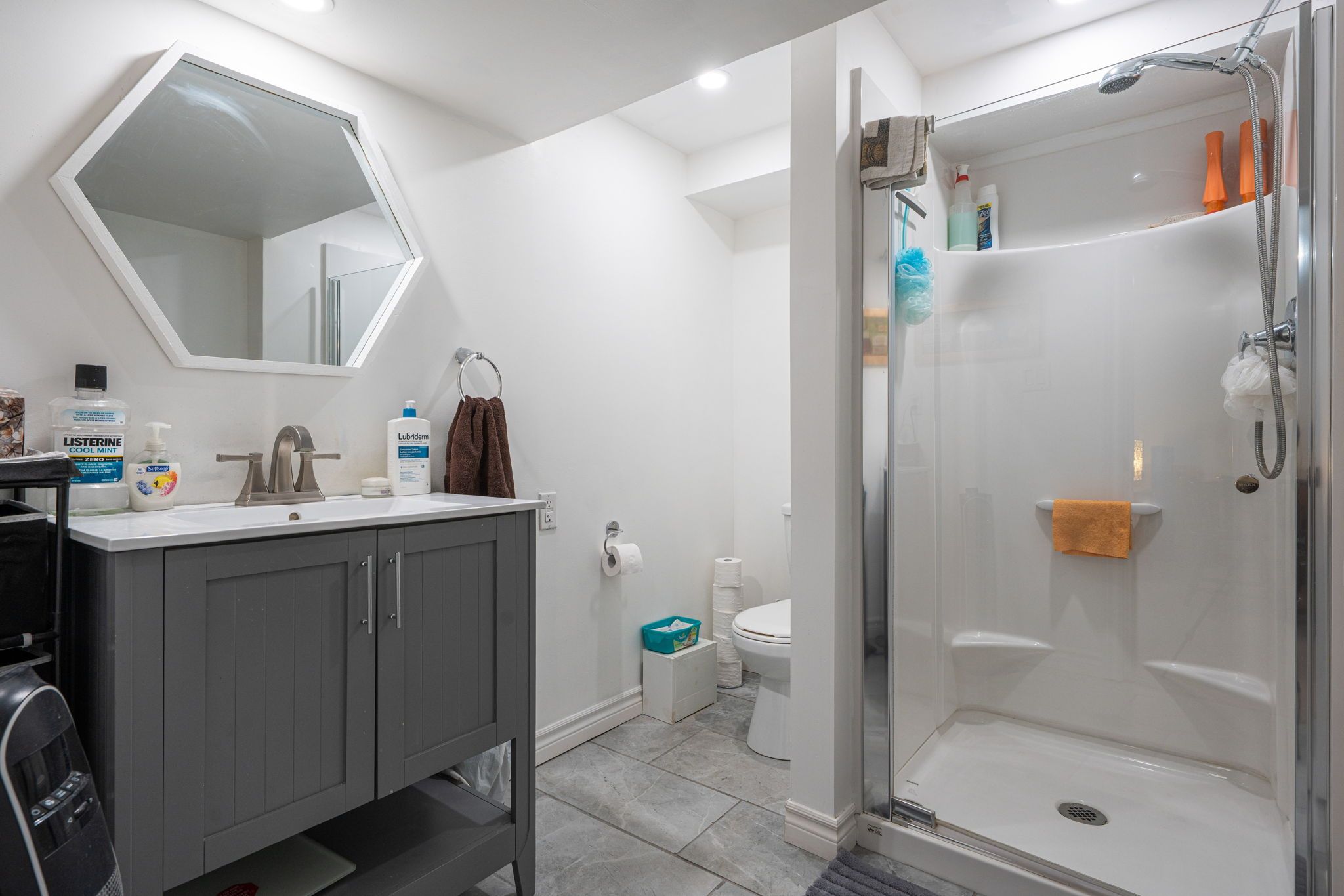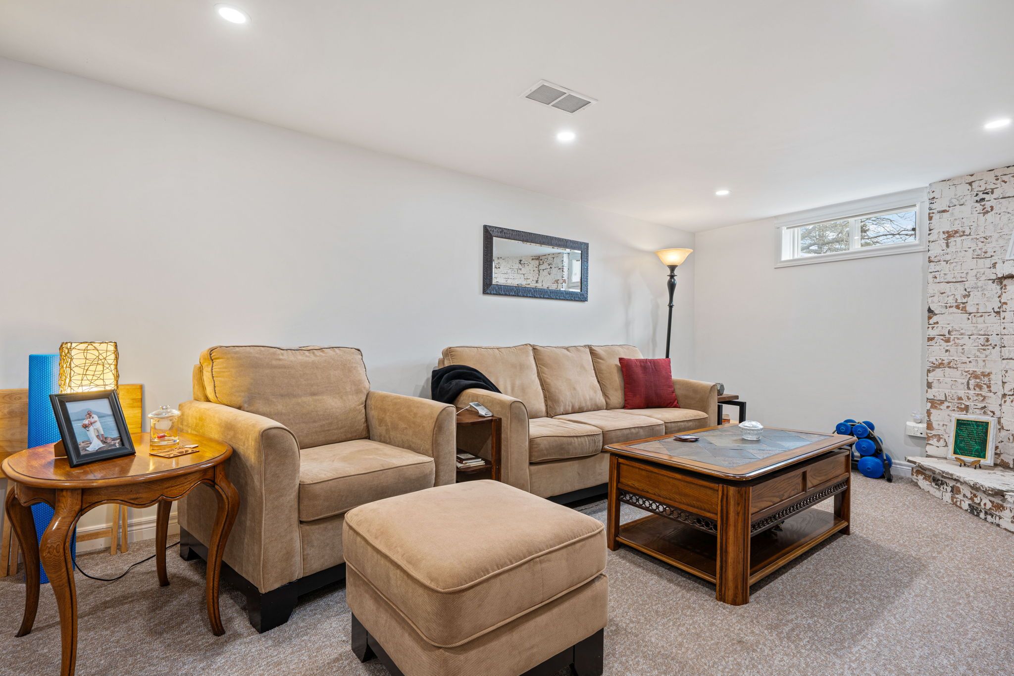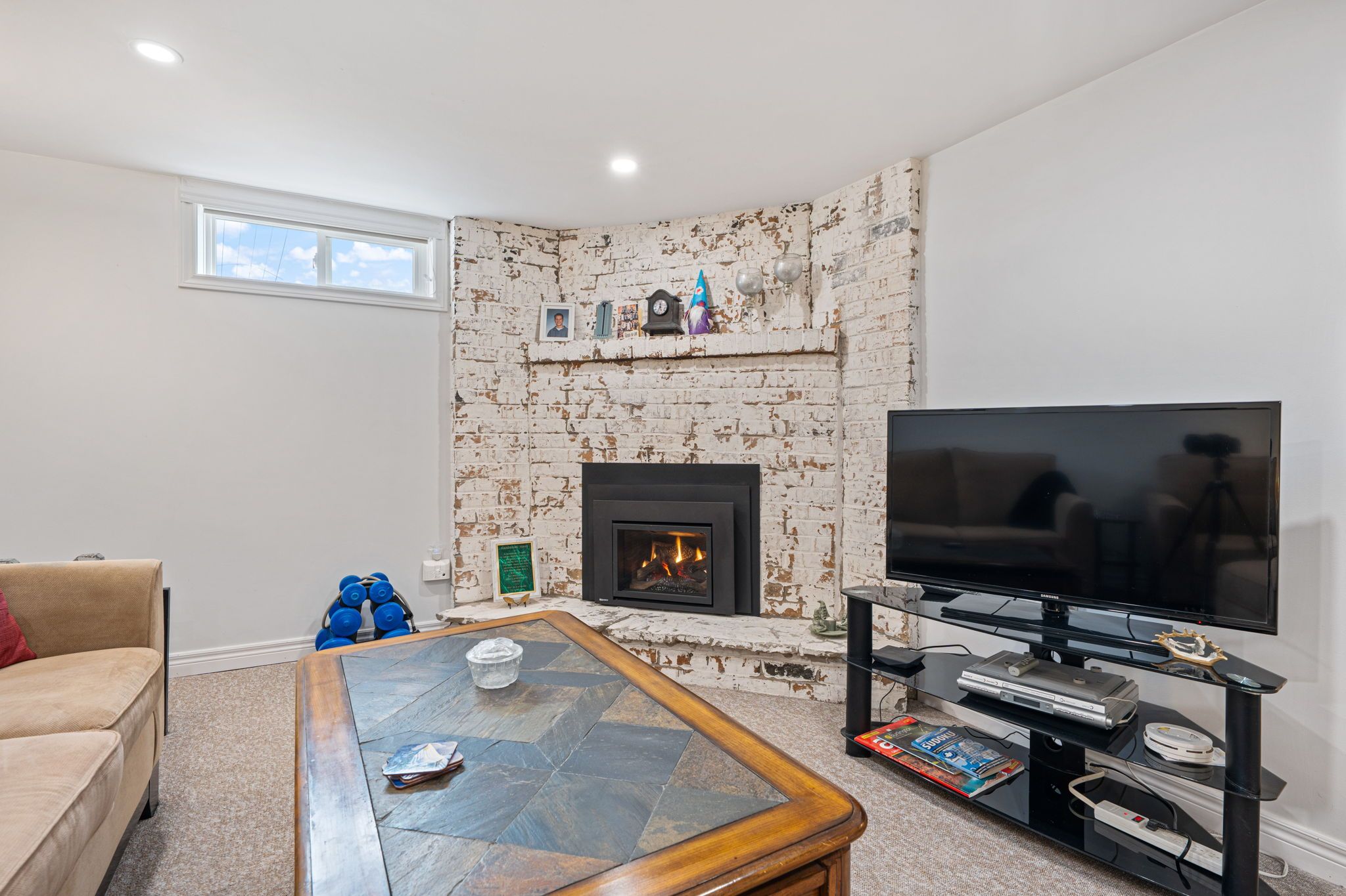 • Cozy lower-level recreation room with a gas fireplace and additional bathroom.