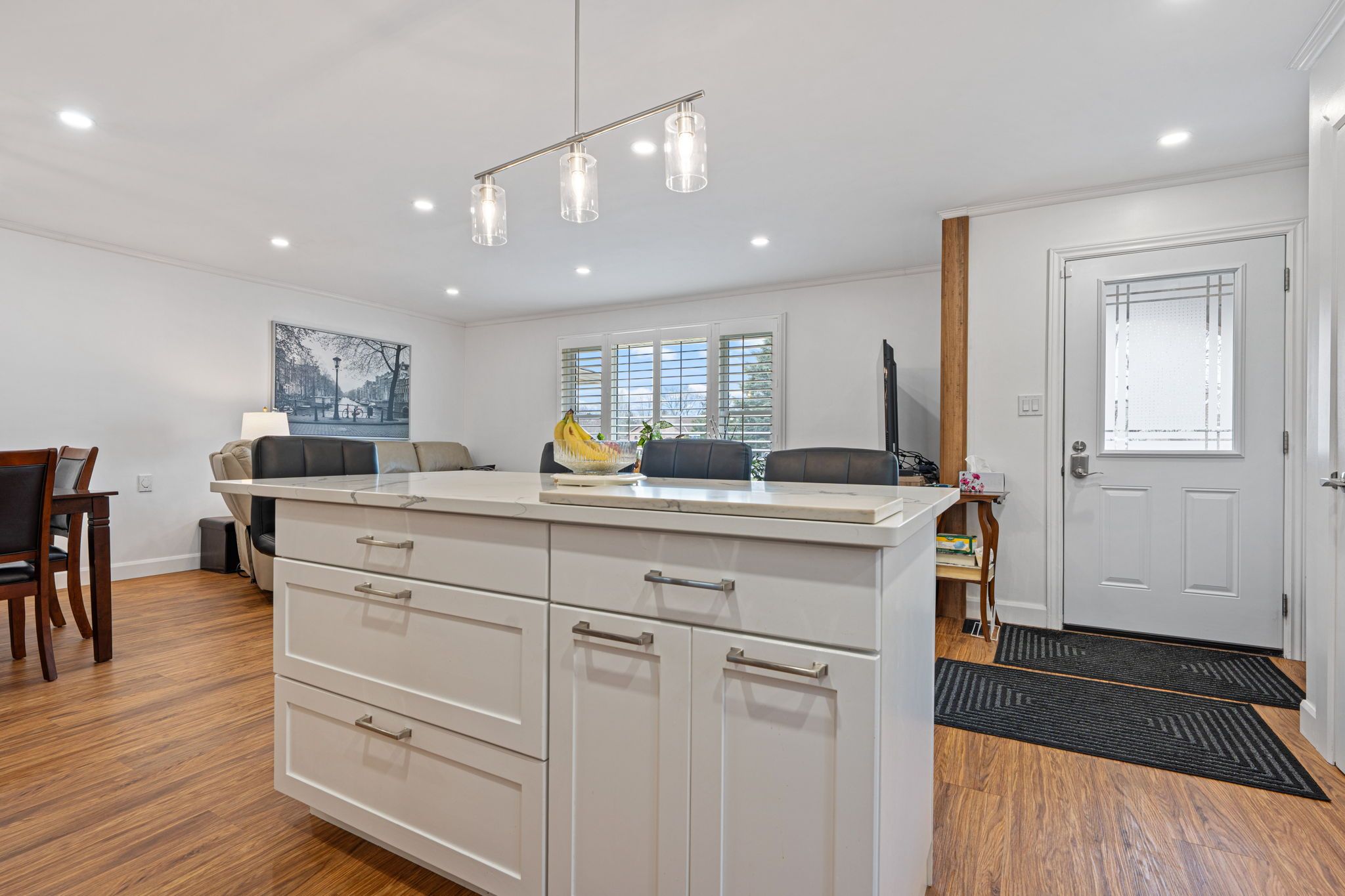 • Fully updated bungalow with a modern kitchen and open-concept living space.