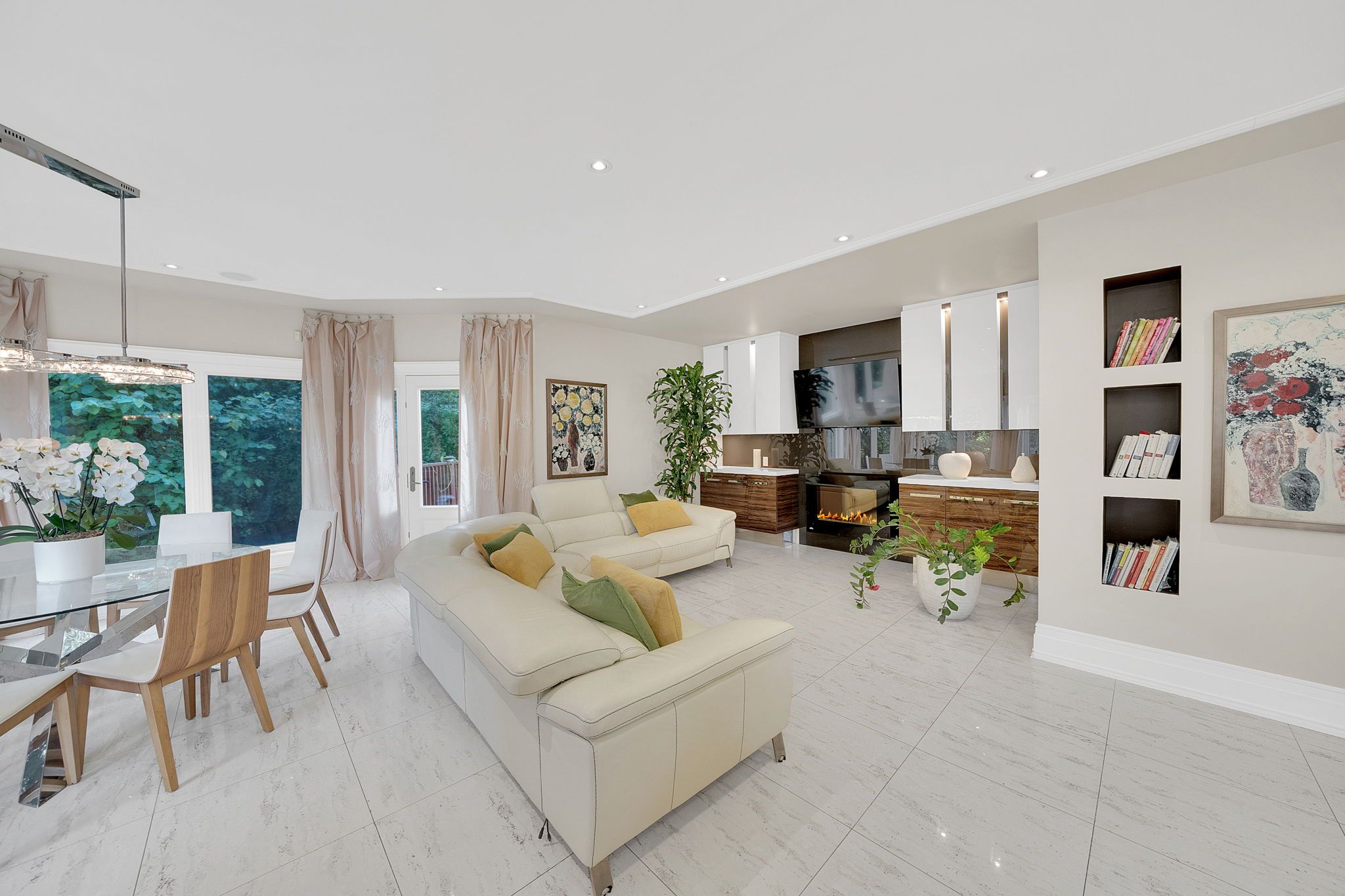 • Open-concept living area with soaring ceilings perfect for family gatherings.