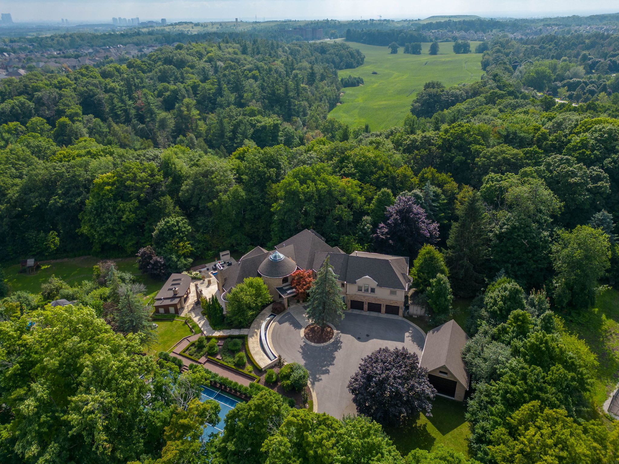 Welcome to chateau de vaughan! This rare opportunity presents a stunning residence nestled on one of the most private lots in the area, featuring aspacious 8400 sq ft home on 1. 8 acres of wooded land on a quiet court. Ideally situated near top-rated schools, parks, restaurants, and shopping, this 6bedroom 10 bathroom home combines convenience with tranquility. Featuring a remarkable addition and a full renovation, it exudes a clean, modernelegance throughout. Enjoy expansive bedrooms, an open-concept living and dining area with soaring ceilings, and a spacious gourmet kitchenequipped with high-end appliances, perfect for family gatherings and entertaining. The outdoor space is a haven, boasting an inviting infinity pool, adedicated entertainment area, sports court, golf simulator, multiple waterfalls, and more. A truly magical place for a family to enjoy and make lastingmemories! ***extras*** on town water and well for back upon