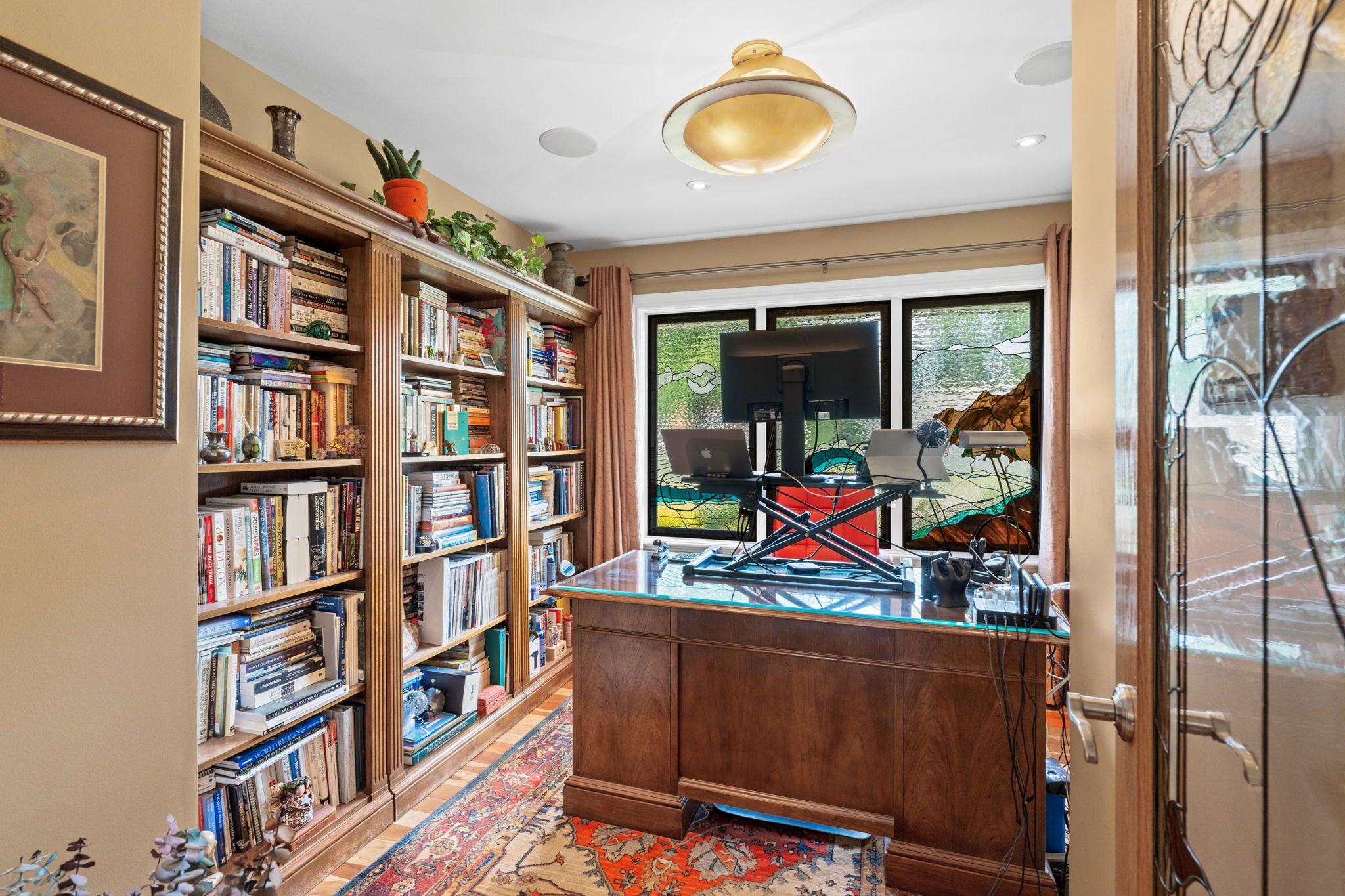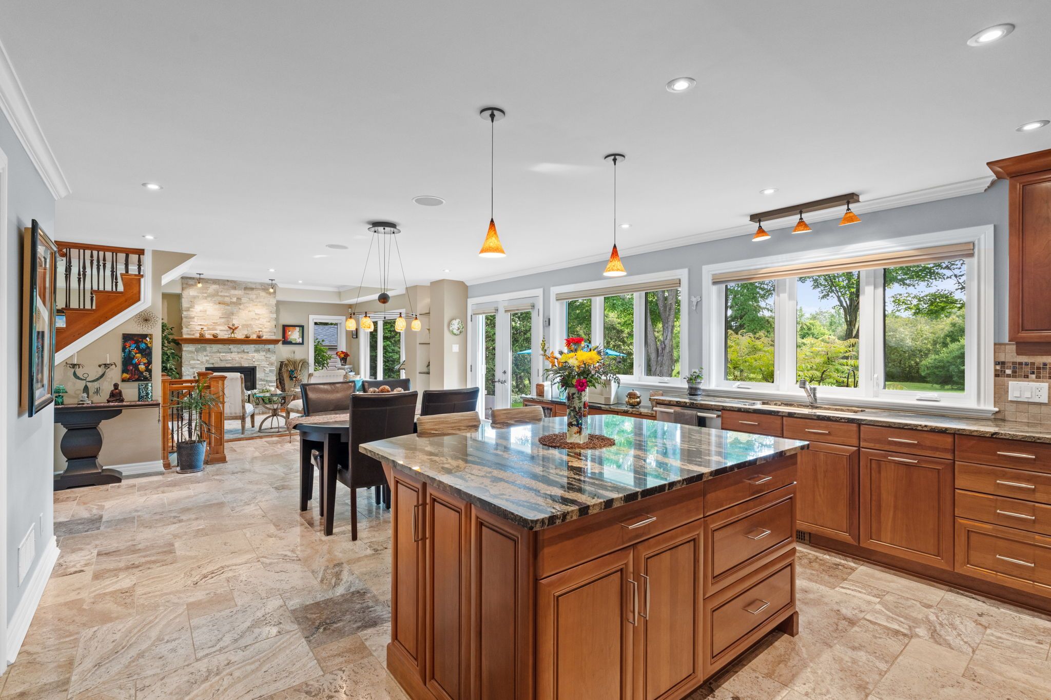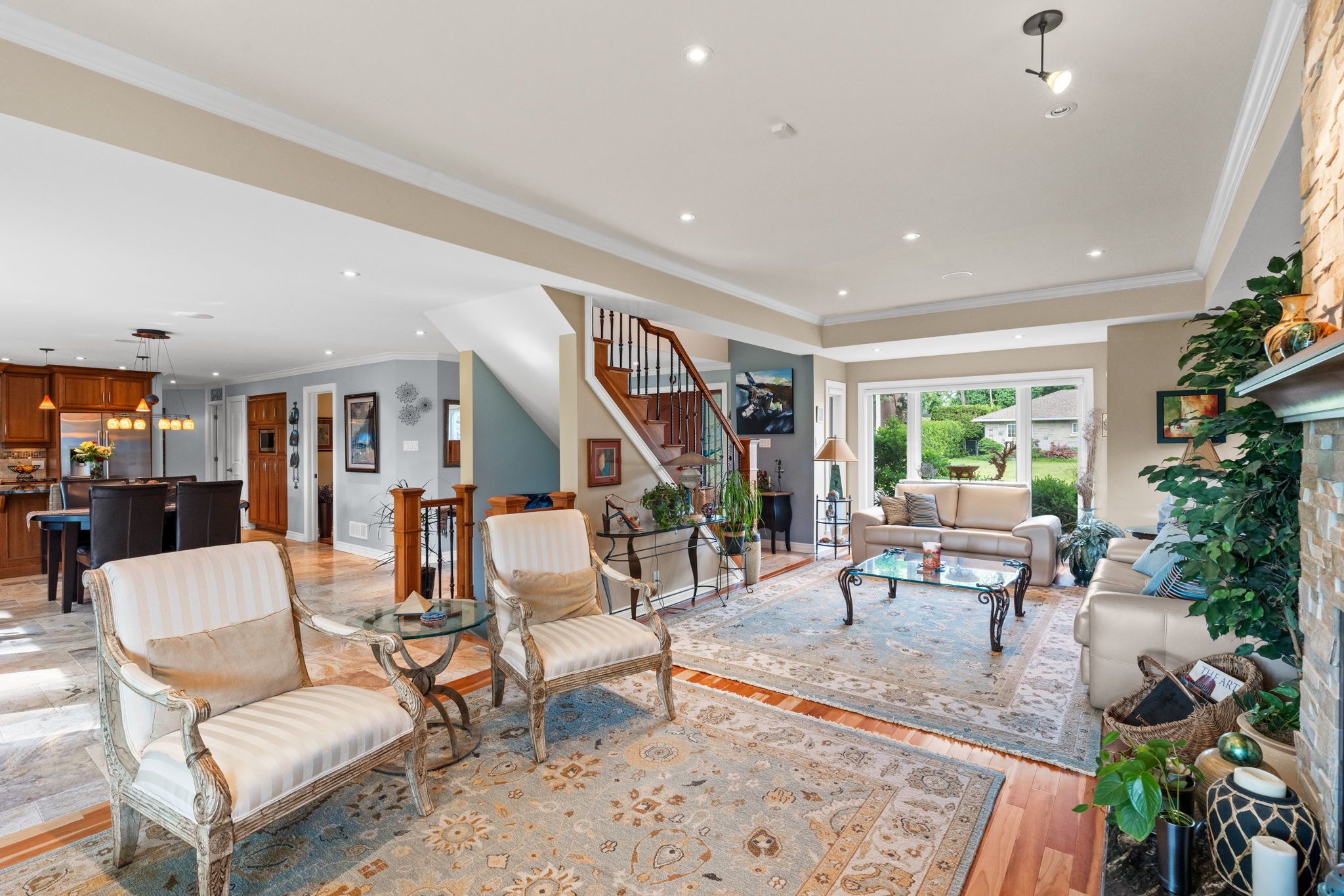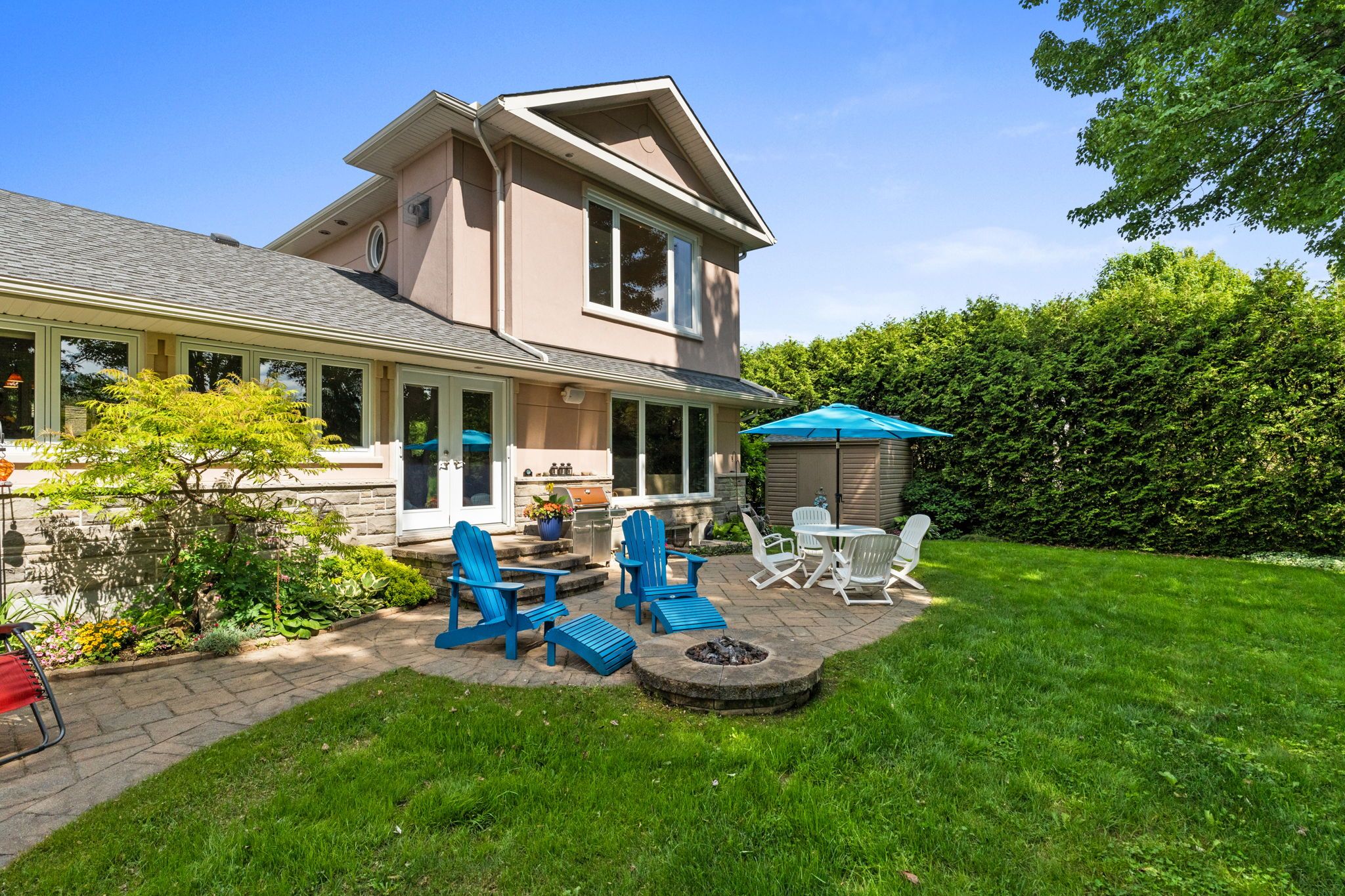 Situated on a private, tree-lined lot backing onto ncc greenspace, 24 doris avenue offers $100,000+ in custom stained glass and over $100,000 in landscaping. This custom home sits in the heart of kemp park, surrounded by an enclave of fellow expansive custom homes. The main level welcomes you with an elegant stone-clad portico and arched entry, opening to a grand foyer with custom stained glass and rich cherry wood floors. At the heart of the home, a spacious open-concept living and dining area features a floor-to-ceiling stone fireplace, coffered ceiling, and oversized windows framing the serene backyard. The chef's kitchen is equally impressive, boasting an oversized island with black-and-gold granite, extensive cherry wood cabinetry, and premium stainless steel appliances - perfect for hosting or casual family meals. Off the kitchen, a dedicated office provides an ideal workspace, while a full steam room with shower offers a spa-like experience. Two generous main floor bedrooms, a beautifully appointed full bath, and a laundry area just off the garage complete this level. Upstairs, the private primary suite with vaulted ceilings, a natural gas fireplace, expansive windows, and tranquil views is designed for relaxation. The ensuite features a deep soaker tub, walk-in glass shower, dual vanities with granite counters, and elegant finishes throughout. The fully finished lower level offers exceptional flexibility. A bright recreation room, dedicated home theatre, and gym accommodate a variety of lifestyle needs. Outdoors, the landscaped backyard is an entertainer's dream. A large interlock patio, outdoor fireplace, and natural gas bbq connection make outdoor living seamless. The property spans over a third of an acre, offering privacy and a rare connection to surrounding greenspace. With close proximity to schools, parks, the airport parkway, and south keys shopping centre, this exceptional home offers luxurious city living in a tranquil, sought-after setting.