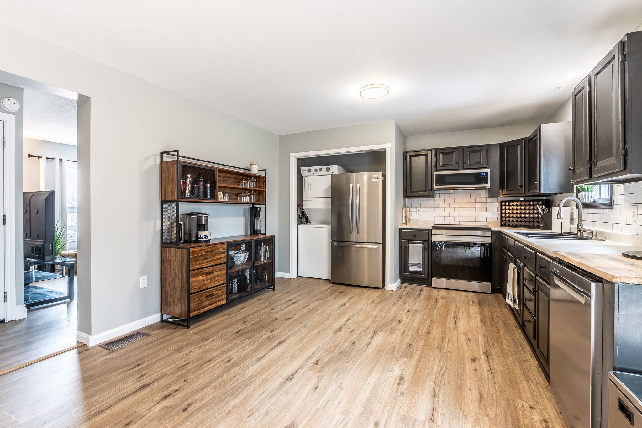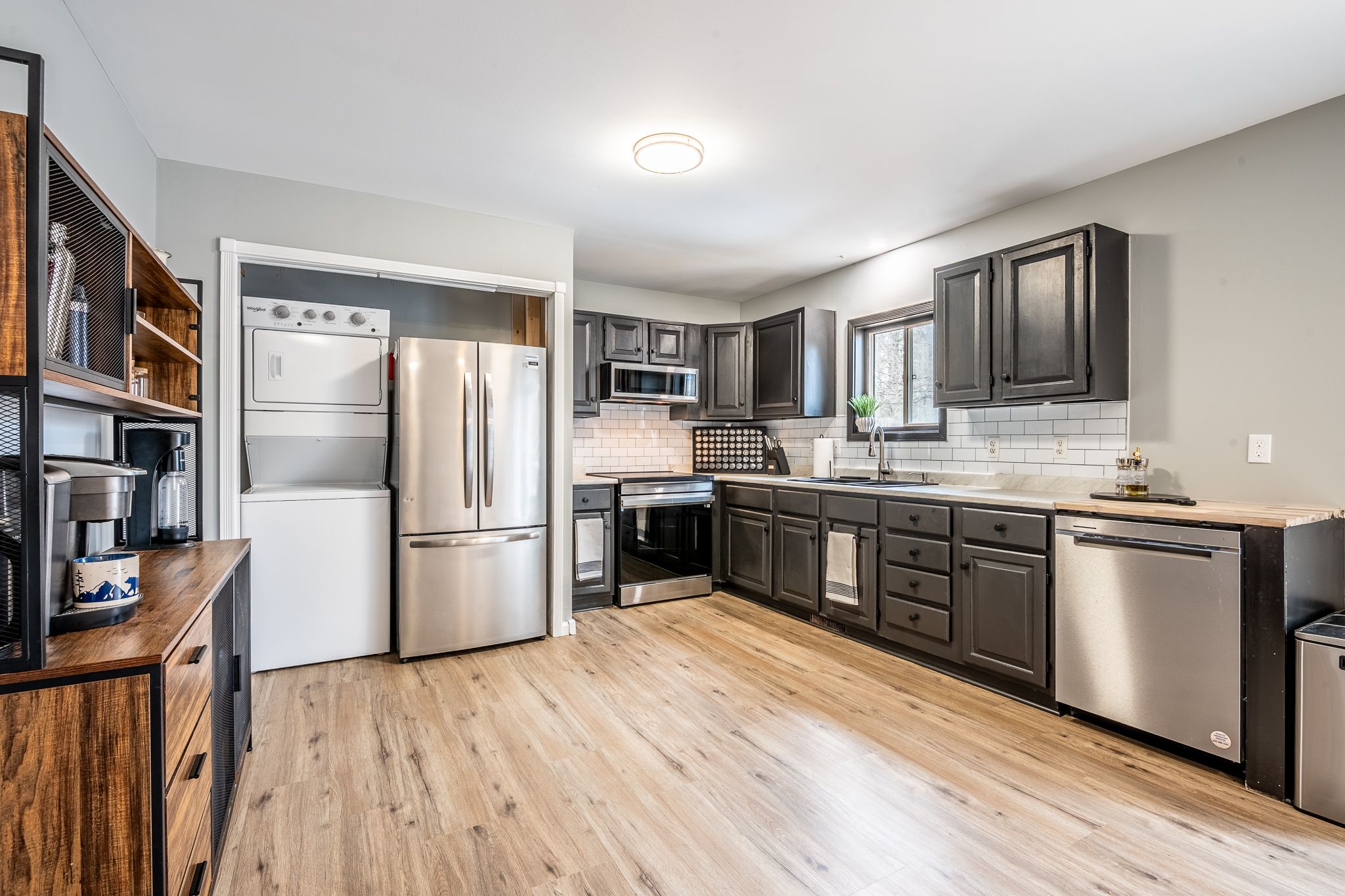Nestled on a quiet cul-de-sac in the desirable petawawa point neighbourhood, this freshly updated raised bungalow offers a rare combination of lifestyle, flexibility, and long-term value. With a park on the street, petawawa point beach just a short walk away, and convenient access to garrison petawawa and highway 17 in only 10 minutes, this is a property that suits a wide range of buyers. Inside, the home is thoughtfully laid out with a shared foyer and separate doors leading to each level, creating an ideal setup for an extended family (in-law suite), adult children, guests, or buyers seeking added flexibility in how they use the space. The upper level is bright and inviting, featuring fresh paint, new flooring, a spacious eat-in kitchen, and a new patio door leading to the newly built deck. Three bedrooms are located on this level, including a primary bedroom with a convenient two-piece ensuite, along with a full four-piece main bathroom. The upper level also has its own laundry. The lower level offers impressive versatility with two bedrooms, a full bathroom with laundry, a large eat-in kitchen, and a comfortable living room. Whether used for multigenerational living, hosting family, or supplementing household income, this layout provides options that are increasingly hard to find. The lower level is currently tenant-occupied, offering immediate appeal for buyers interested in an income-supporting setup. Additional features include ample parking, mature trees that add privacy and character to the yard, central air conditioning installed in 2025, and an efficient gas furnace for year-round comfort. A well-located home with a flexible design and updates already completed, this is an excellent opportunity for buyers looking for more than just a standard single-family property. 24 hour irrevocable on any written offer.