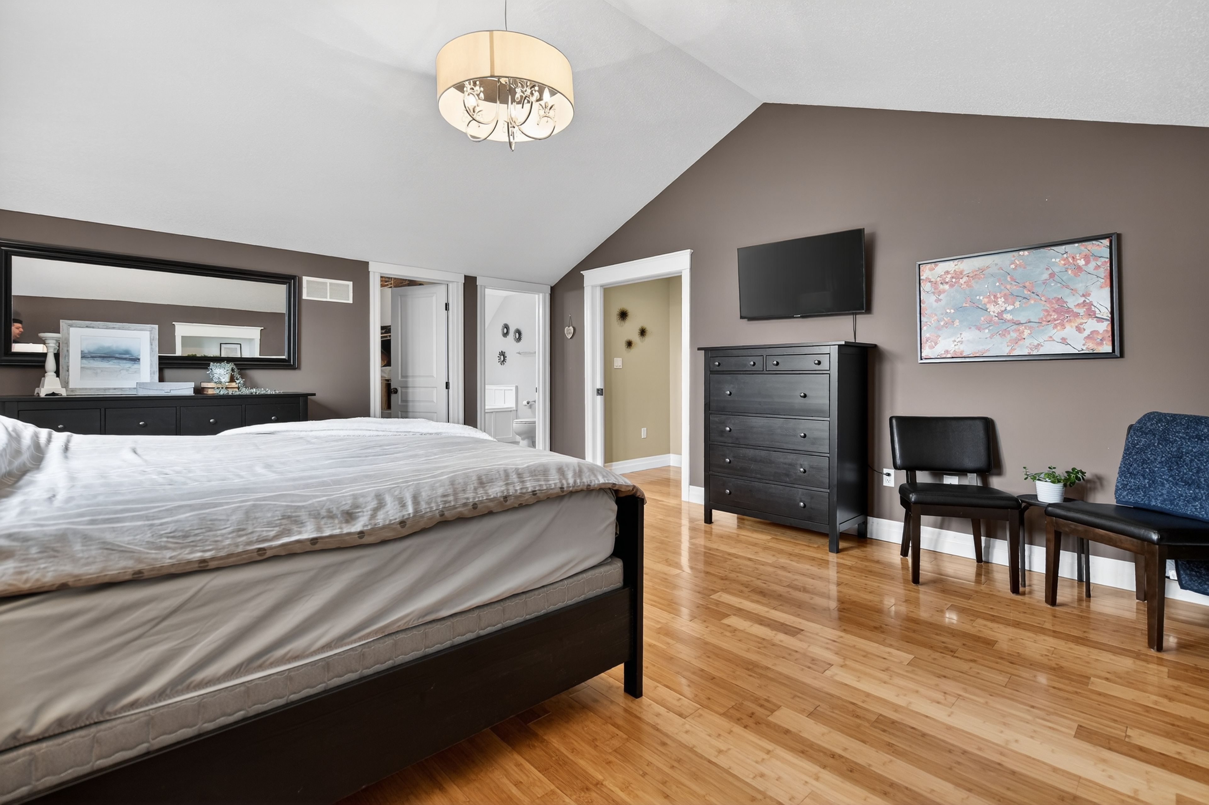 Nestled on an outstanding 1/3-acre lot in desirable kilworth, this beautifully landscaped property offers the perfect blend of privacy and outdoor enjoyment. Fully fenced and surrounded by mature trees, the backyard is a true retreat, complete with an stone fire pit area-ideal for relaxing or entertaining. Built with quality and efficiency in mind, this home features durable icf (insulated concrete form) construction. The striking exterior showcases a modern aesthetic with a sophisticated mix of stone, stucco, and brick. Step inside to a welcoming foyer that overlooks an expansive great room, creating an impressive first impression. The kitchen is both functional and inviting, highlighted by a skylight that fills the space with natural light, a large island, and an additional bank of cabinetry for ample storage. A dedicated office with soaring 14-foot ceilings adds a unique and inspiring workspace. This thoughtfully designed bungaloft layout places the primary bedroom retreat on the upper level, offering exceptional privacy and a luxurious feel. Enjoy vaulted ceilings and a spa-like 5-piece ensuite complete with a stand-up shower and separate tub. Main floor offers two well-appointed bedrooms-one featuring vaulted ceilings the other coffered ceilings with a shared spacious 5-piece bathroom between them. Convenient main floor laundry room is oversized. The fully finished lower level adds incredible versatility, featuring a walkout and direct access from the garage. This lower level space includes a second kitchen, games room, two additional bedrooms (one currently used as a gym), and a bonus cardio room-perfect for multi-generational living or accommodating a growing family. Located in the sought-after kilworth within the parkview school catchment, this home is close to golf courses, a two-pad arena and community centre, scenic trails, the river, and more.