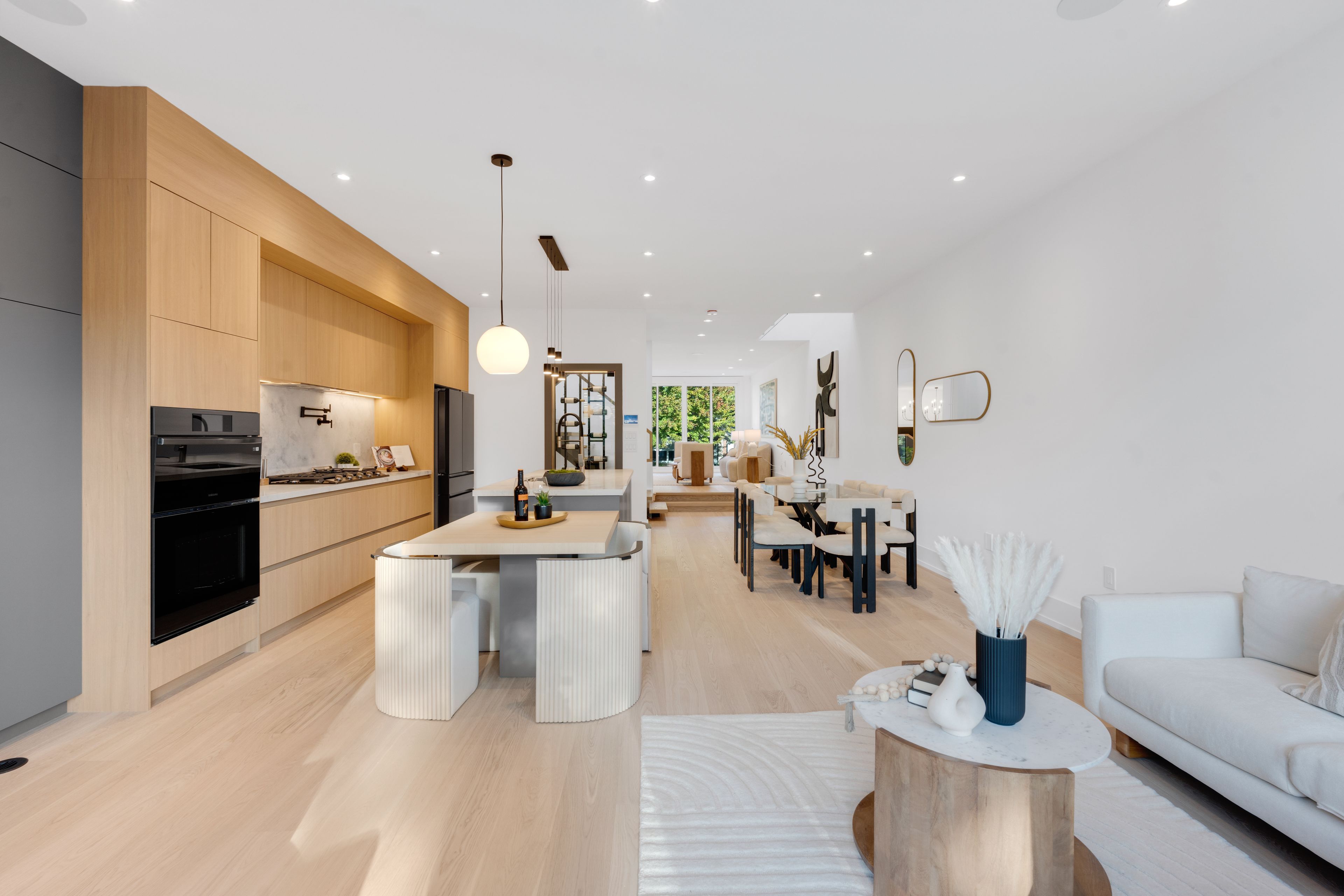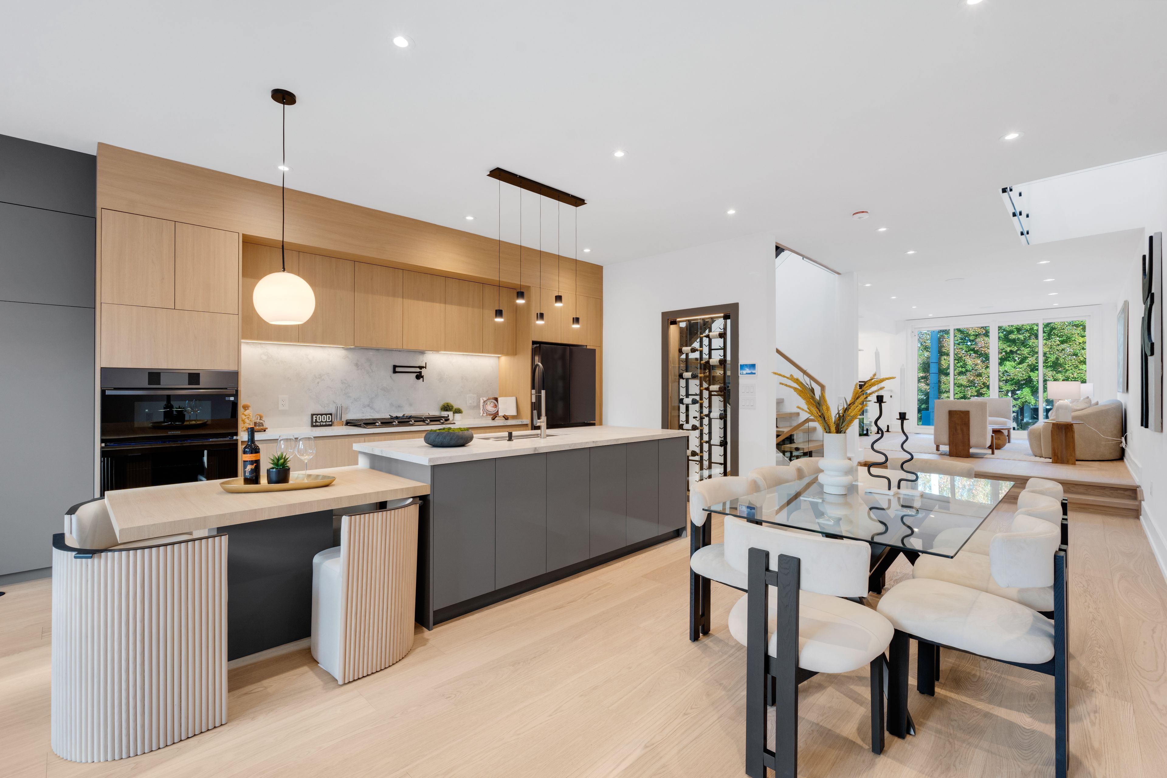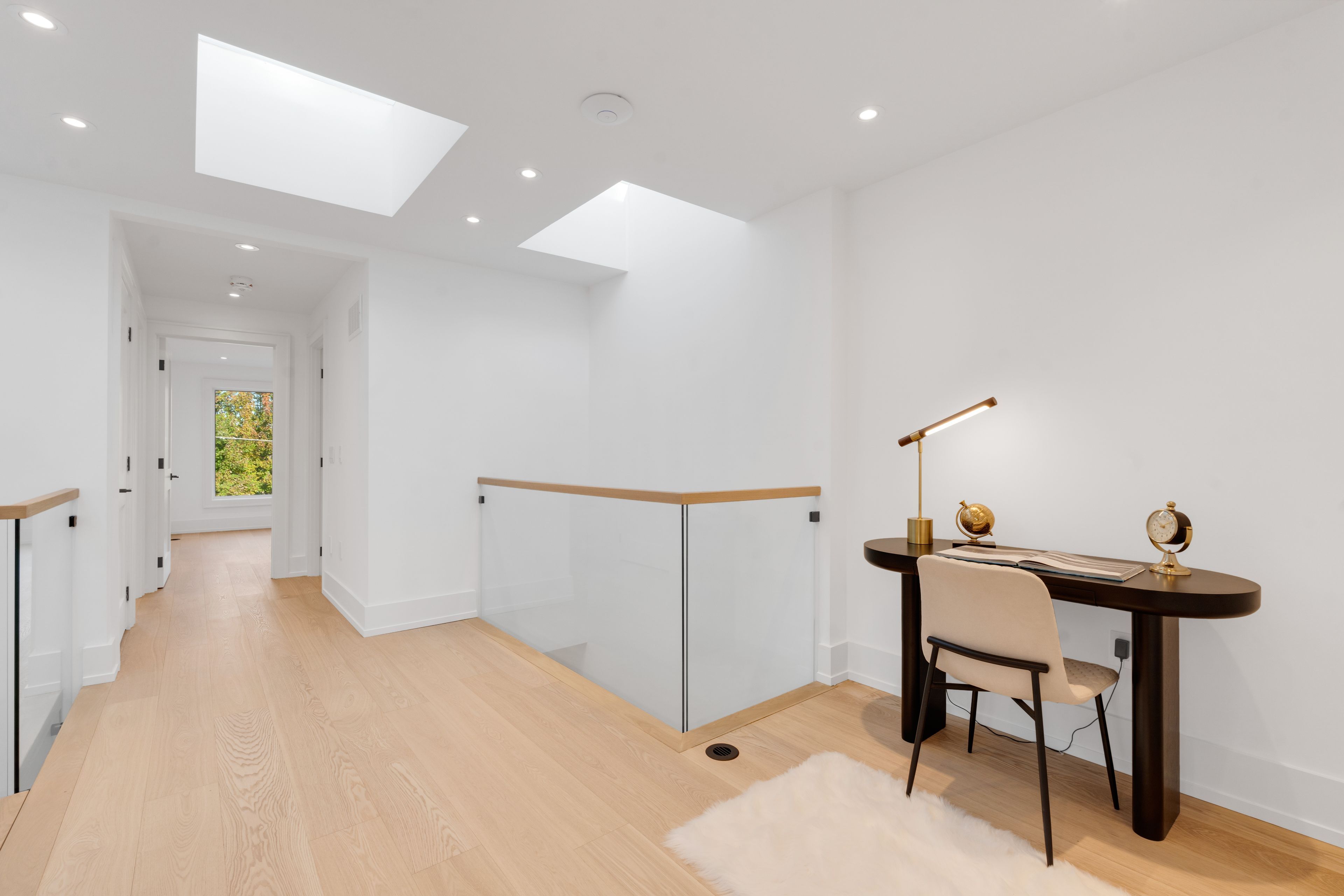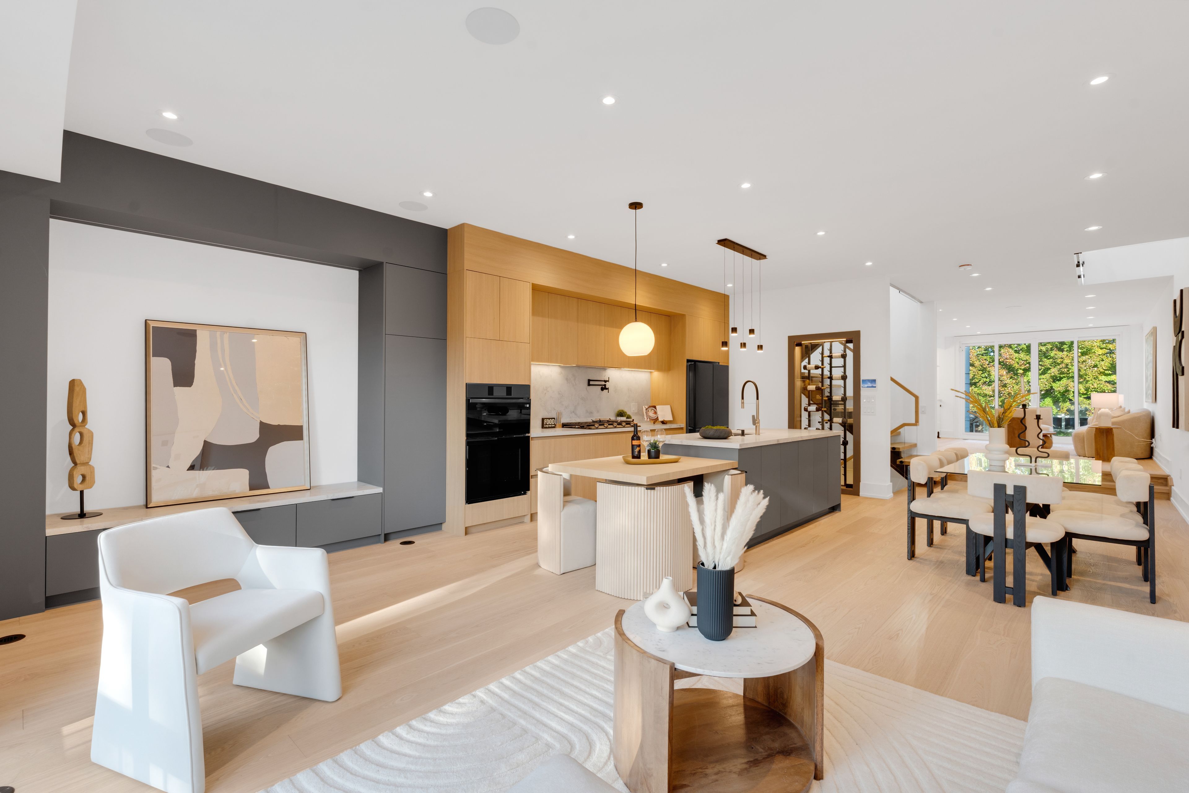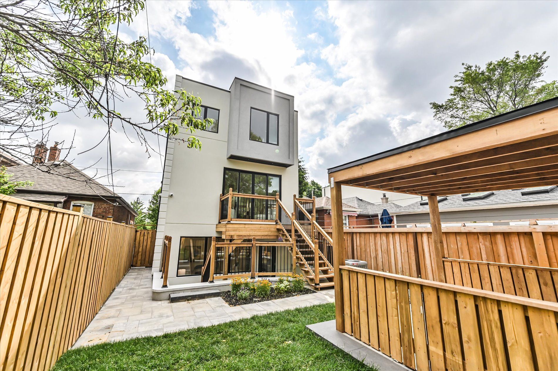 An architectural masterpiece in the heart of east york! This custom residence pairs striking modern design with refined functionality, with the main level defined by soaring floor-to-ceiling windows, dramatic open-to-above sightlines, and a seamless flow for both everyday living and entertaining. The chef's kitchen is a true statement with gorgeous quartz counters and backsplash, smart built-in appliances, a custom built-in wine rack, and a large centre island with a custom family table. The open concept family room creates the perfect entertaining hub adjacent to the dining and kitchen featuring built-in speakers, custom built-in media center and a walkout to the large deck. A floating staircase rises to the skylit upper level where a serene den anchors the space and the primary suite offers a private retreat with a custom walk-in closet and a spa-like 7-piece ensuite with heated floors, double vanity beneath a skylight, glass shower, and freestanding soaker tub! The second level also offers 3 additional generous sized bedrooms with built-in closets, two additional 4-piece bathrooms and a convenient laundry! The fully finished legal lower level with heated floors, separate entrance, expansive above grade windows and walk out to its own patio area feels more like a main floor! Complete with a further designer kitchen, 1-bedroom, full washroom and a 2nd laundry it is a perfect income producing suite. The gorgeous backyard is fully fenced and landscaped with a custom pergola. This home is a rare opportunity to own a one-of-a-kind property that balances luxury, design, and function in the heart of east york! Just minutes from top-rated schools, the vibrant danforth, lush parks, the dvp, and ttc access.
