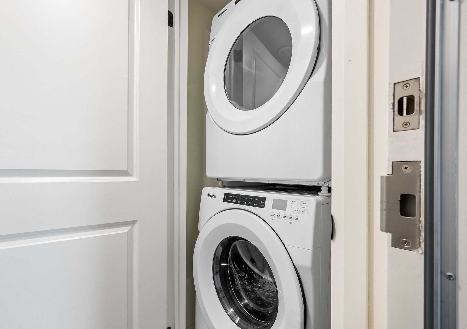 • Upgraded L-shaped kitchen with quartz counters and stainless steel appliances.