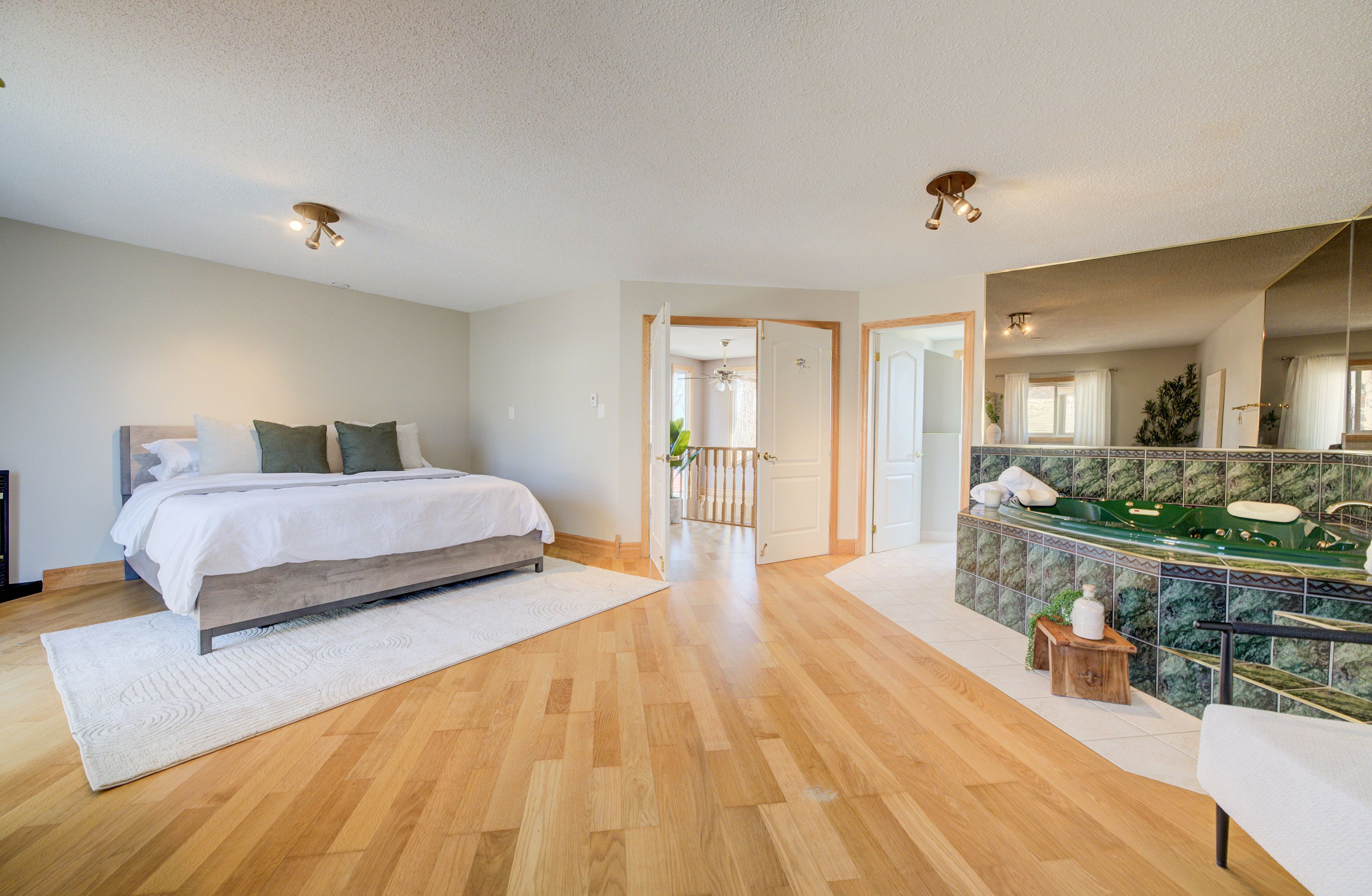 • Huge master suite with ensuite bath and gas fireplace for a cozy retreat.