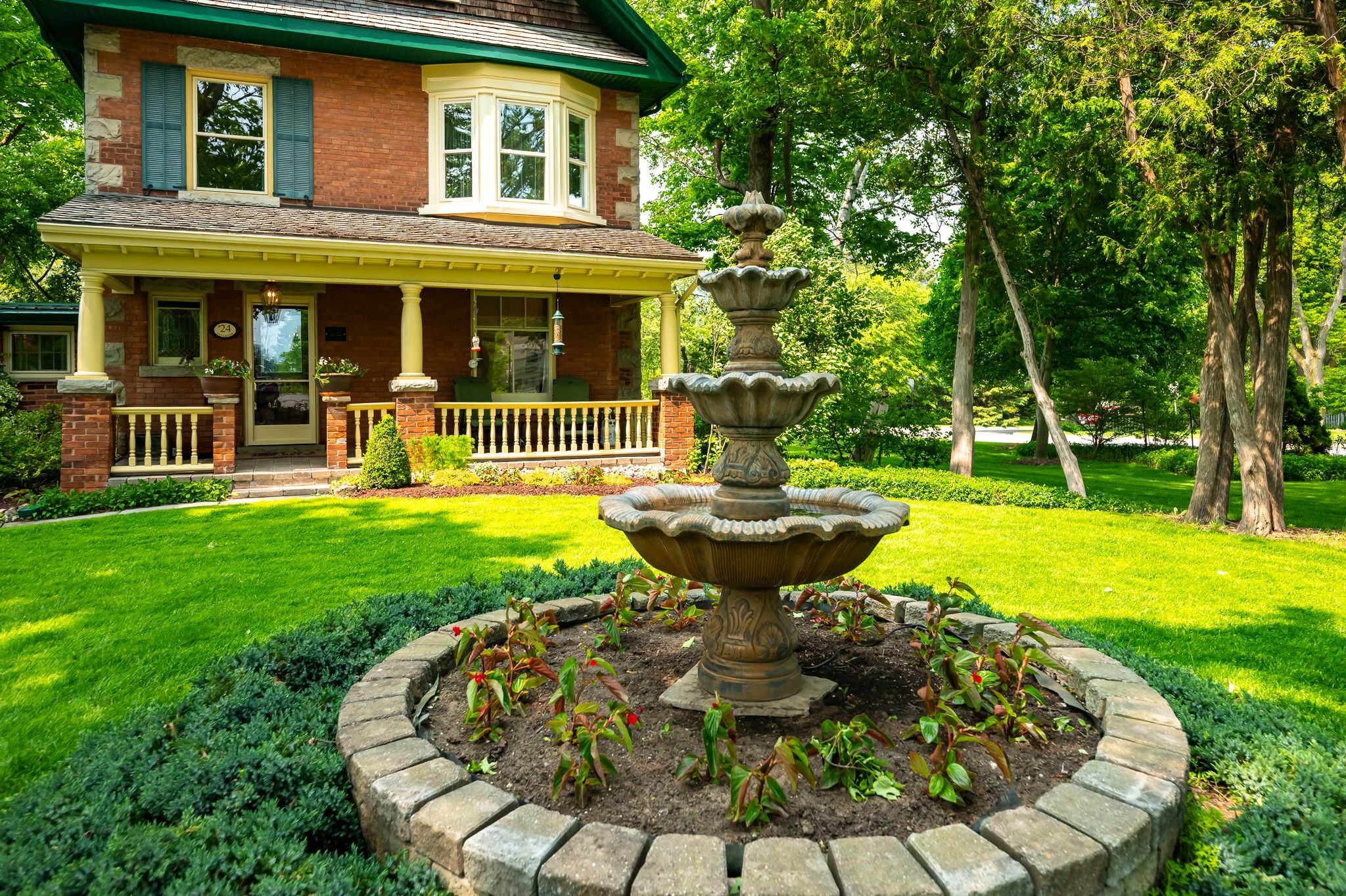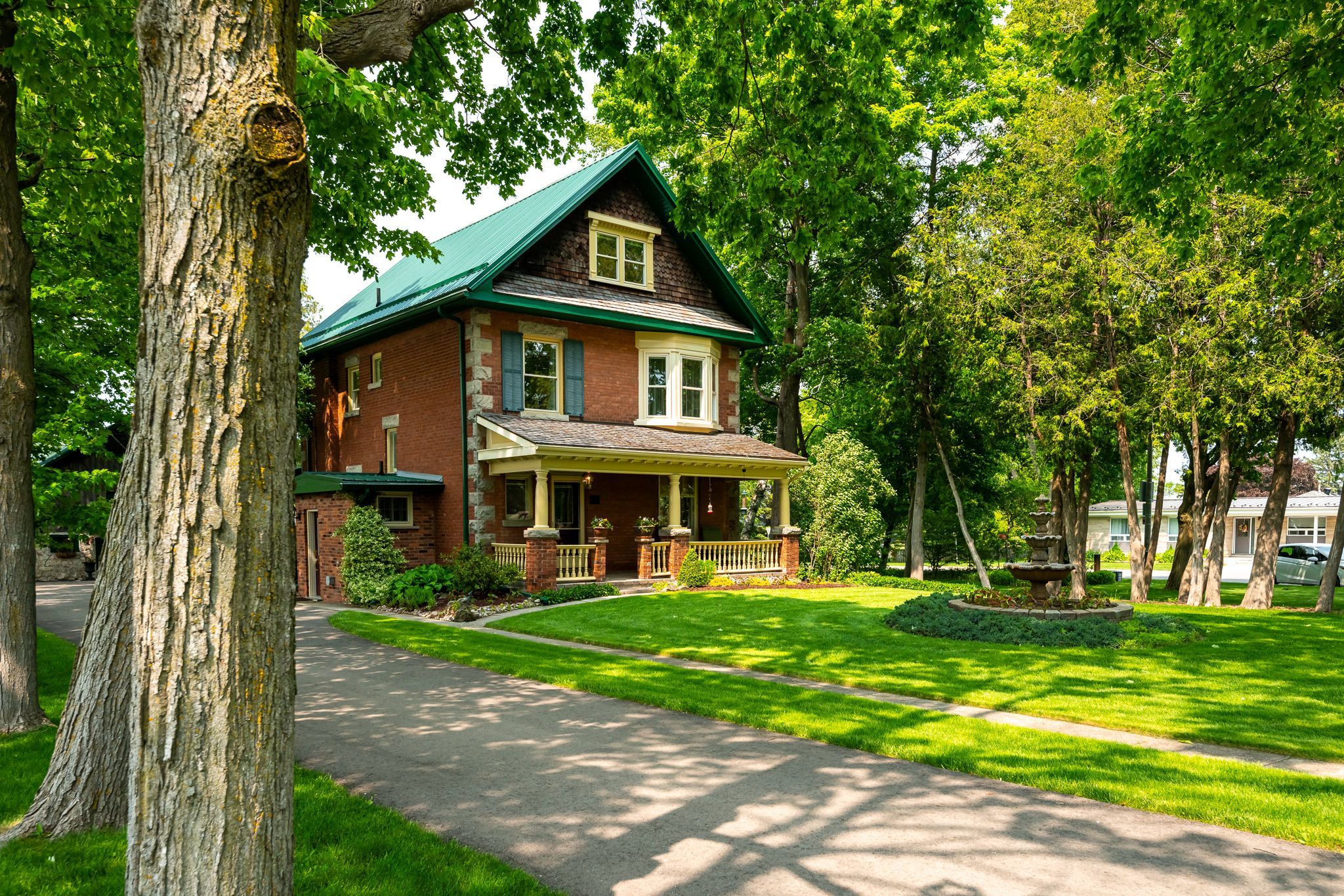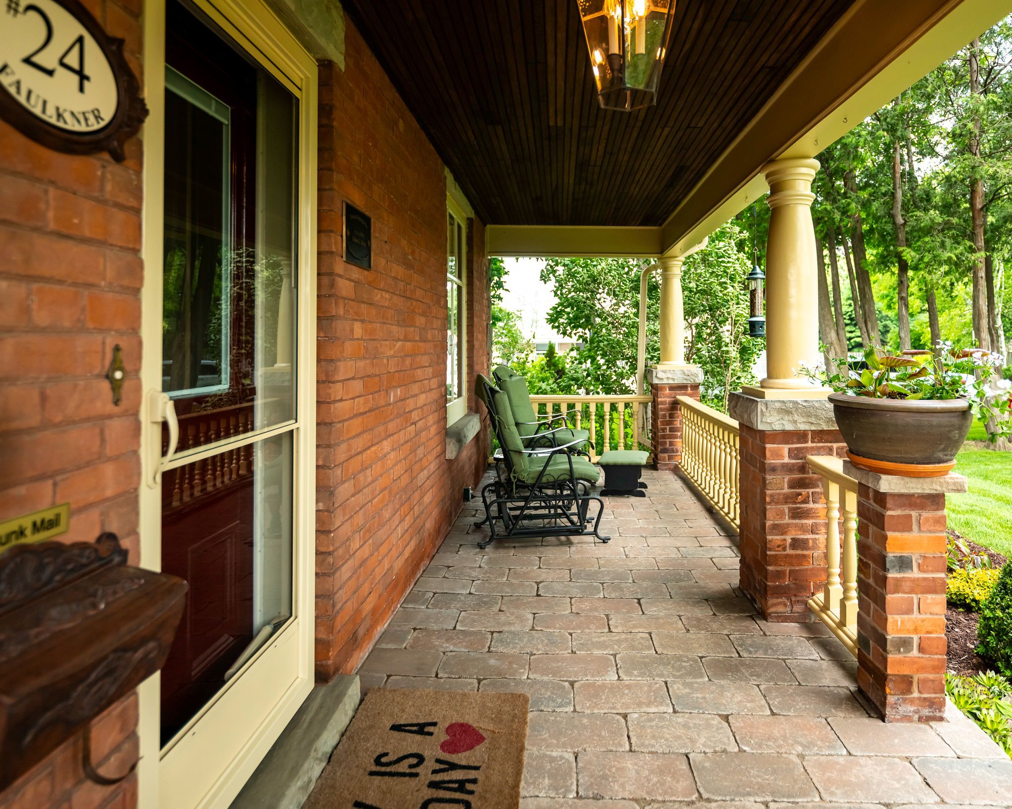 Welcome to the esteemed 24 faulkner, where history lives on in pristine perfection. Built in 1908 by john c. Reid, dufferin county's first clerk, this edwardian gem is a rare testament to orangeville's past, gracefully preserved & lovingly updated for modern life. The stately facade of local red brick, stone accents, symmetrical lines, broad roofline & cedar shingled gables reflect timeless architecture. Imagine the conversations held over the last century on the covered front porch, w original features including stained glass window. Inside, floor-to-ceiling elegance sets this home apart. Soaring 9ft coved ceilings feature unique patterns in each room. 12" baseboards ground the space in historical craftsmanship while adding a sense of grandeur. The family & dining rooms are divided by an original pocket door, allowing for both flow and intimacy depending on the occasion. In the dining rm, a striking, original bay window offers views of the beautifully landscaped side yard. The heart of the home, a modern kitchen with center island, intentionally designed cupboard storage & beautiful quartz counters, leads out to a covered back porch, perfect for enjoying summer suppers alfresco. Hardwood floors grace much of the home, with softwood cleverly tucked under tables & rugs, an original builder's trick to balance beauty with budget. The 2nd floor hosts four generous bedrooms, with soaring ceilings, large closets & big, beautiful windows. A classic claw-foot tub & walk-in shower complete the luxurious main bath. Ascend to the third-floor primary suite, a tranquil retreat with spa-like ensuite, soaker tub, double vanity, walk-in shower, and your dream walk in closet. The rare finished basement adds yet another living space to this 2395 sq ft home. This property neighbours only the quiet grounds of odss, coming alive for just a few moments at bell time. With historical records from the original $1,700 build cost still intact, this home is not only a treasure, it's a legacy.