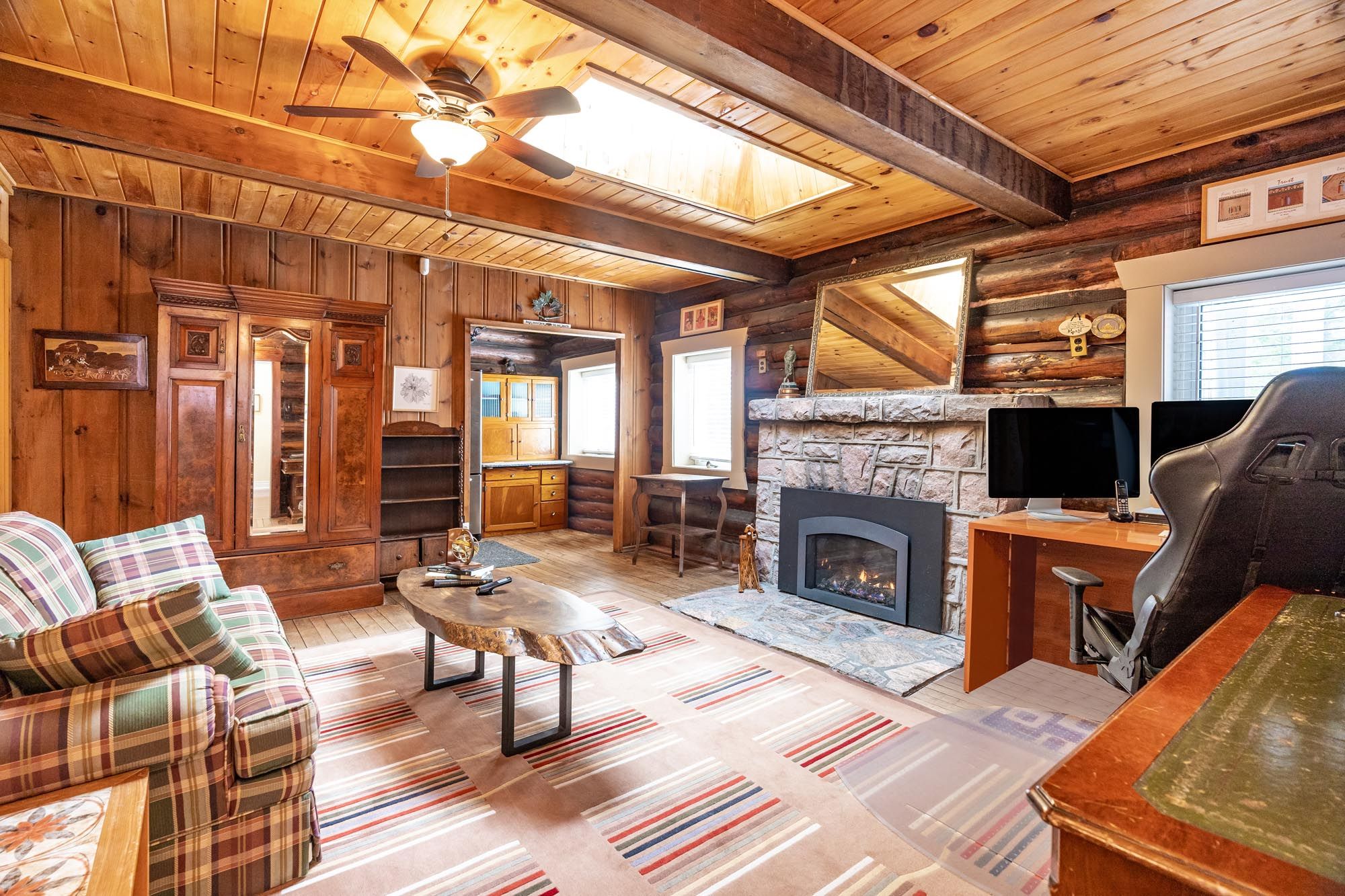 Top 5 reasons you will love this home: 1) custom waterfront home featuring 4,066 square feet above ground and 5,899 total, while being nestled on a double lot of almost 1 acre and leading to 120 feet of sandy georgian bay beachfront 2) pamper yourself with the many luxurious features of this home including a large main level primary bedroom, sunroom, theatre room, family room, office, exercise room, four gas fireplaces, huge deck, high-speed internet, generator, outdoor shower, a brand-new 90000 btu furnace, and a 4 ton heat pump 3) entertain family and guests with this exceptional gourmet kitchen, brazilian cherry hardwood floors, granite counters, a five burner gas cooktop, two islands, and a large pantry 4) enjoy the functionality of the featured one-bedroom apartment for in-laws, family or friends, with the added benefit of this home incorporating the original, historic log cabin built by the founder of the subdivision in 1922 5) enjoy the convenience of midland restaurants, coffee shops and shopping only 10 minutes away. Furniture available. 5,899 fin. Sq. Ft.