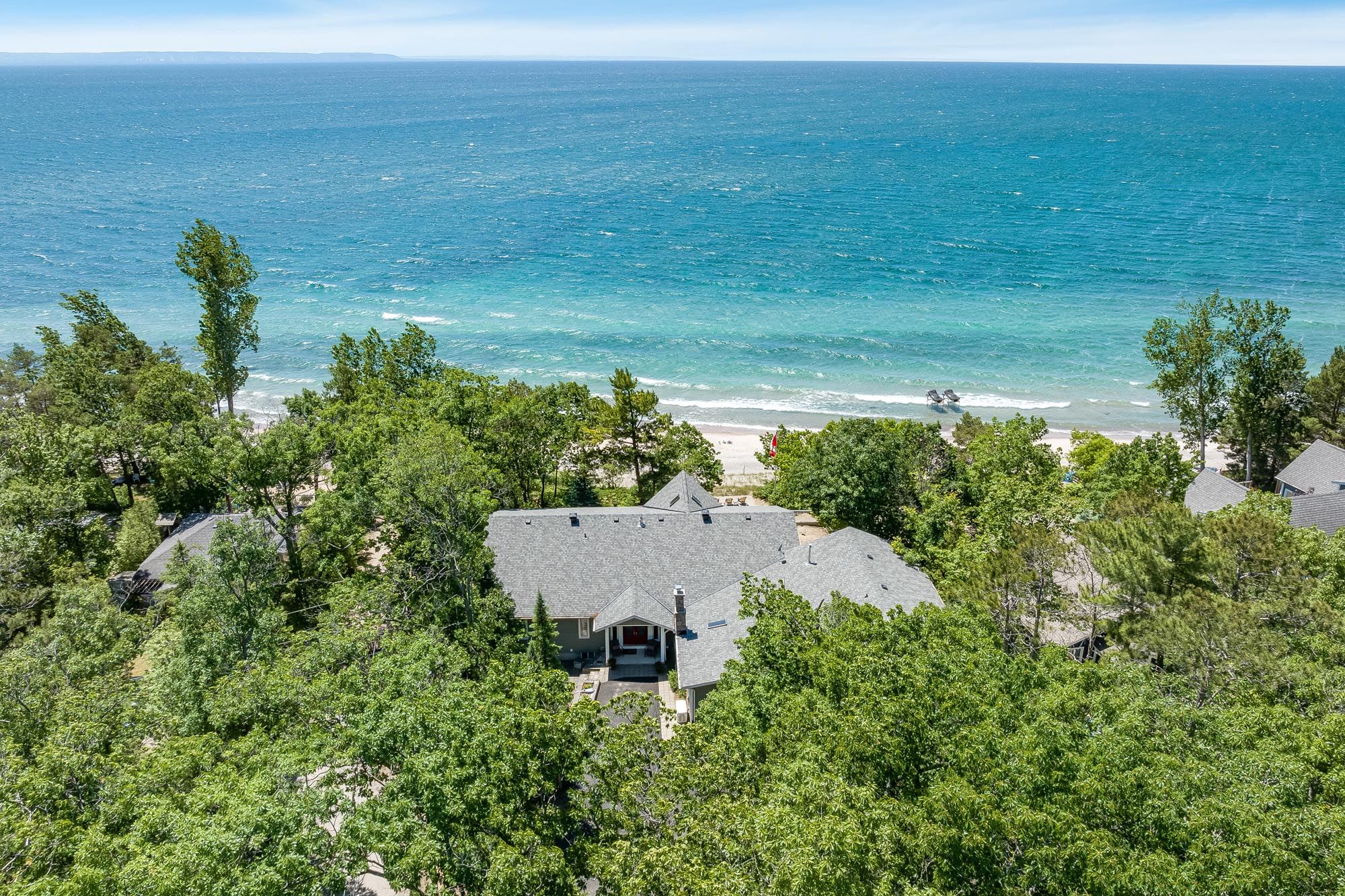 • Custom waterfront home with 120 feet of sandy Georgian Bay beachfront.