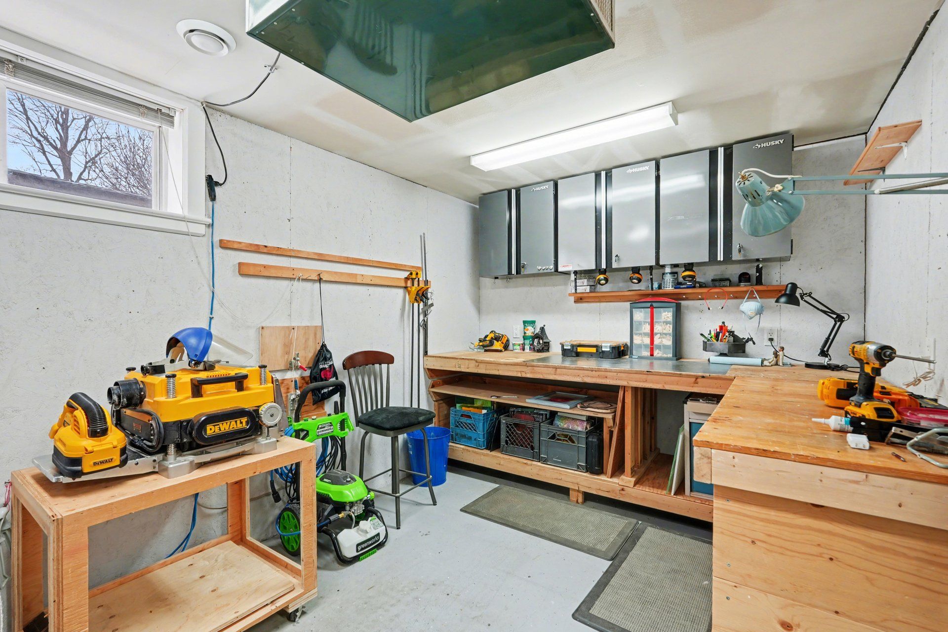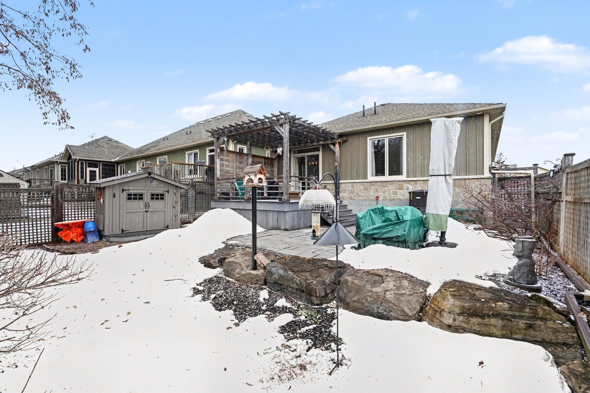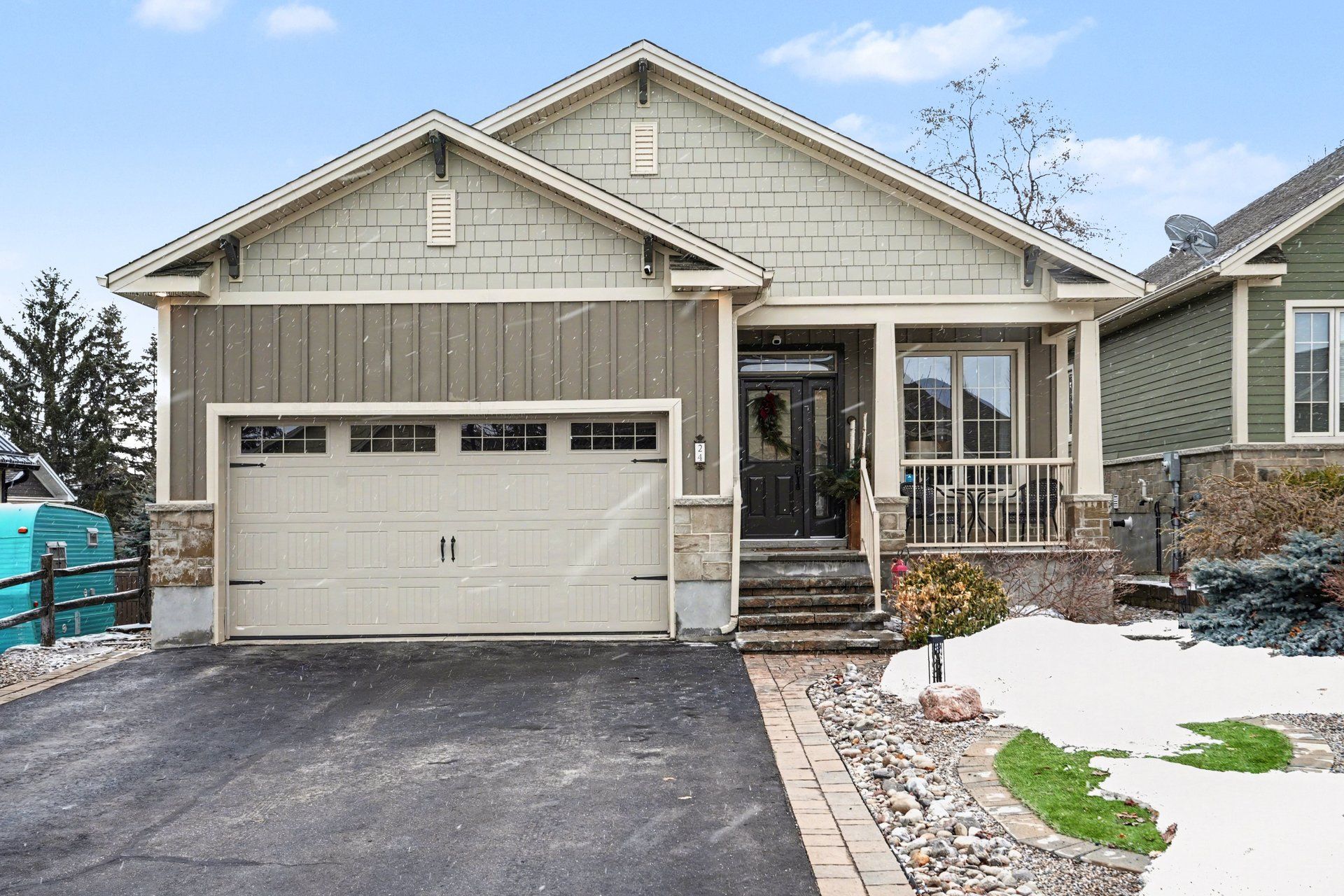 A real gem on a quiet cul-de-sac! Welcome to this beautifully crafted, move-in ready lockwood brothers bungalow. From the moment you step inside, you'll be greeted by soaring 9-foot ceilings, crown moulding, rich maple hardwood flooring, and a striking interior stone feature wall with a cozy gas fireplace--all creating a warm inviting atmosphere perfect for everyday living and entertaining. The well-appointed kitchen is designed with both style and function in mind, featuring granite countertops, soft-close drawers, and a spacious butler's pantry with an ash countertop and abundant storage. The adjoining dining area opens directly to your private outdoor patio, making indoor-outdoor dining effortless. The main floor primary suite is bright and spacious, offering a walk-in closet and a private ensuite bath for a peaceful retreat. A second bedroom and full bathroom complete the main level, providing flexibility for family or guests. Downstairs, the fully finished basement expands your living space with a comfortable family room featuring a second gas fireplace and built-in cabinetry for storage. You'll also find a third bedroom currently set up as a craft or hobby room, an additional bathroom, and a dedicated workshop area equipped with two 20-amp panels and a radon detector. Throughout the home, low-e vinyl windows ensure energy efficiency and year-round comfort. The professionally landscaped property offers beauty with minimal upkeep. The front yard features premium artificial turf accented by river stone trim, while the fully fenced backyard provides a private oasis complete with a composite patio, bbq gas hookup, and panel capability for a future hot tub. The double attached garage is exceptionally functional, equipped with a 50-amp panel and hot water hookup, perfect for washing vehicles or outdoor equipment. Ideally located, close to amenities, this stunning home combines thoughtful upgrades, low-maintenance living, and exceptional comfort. This is a must see!