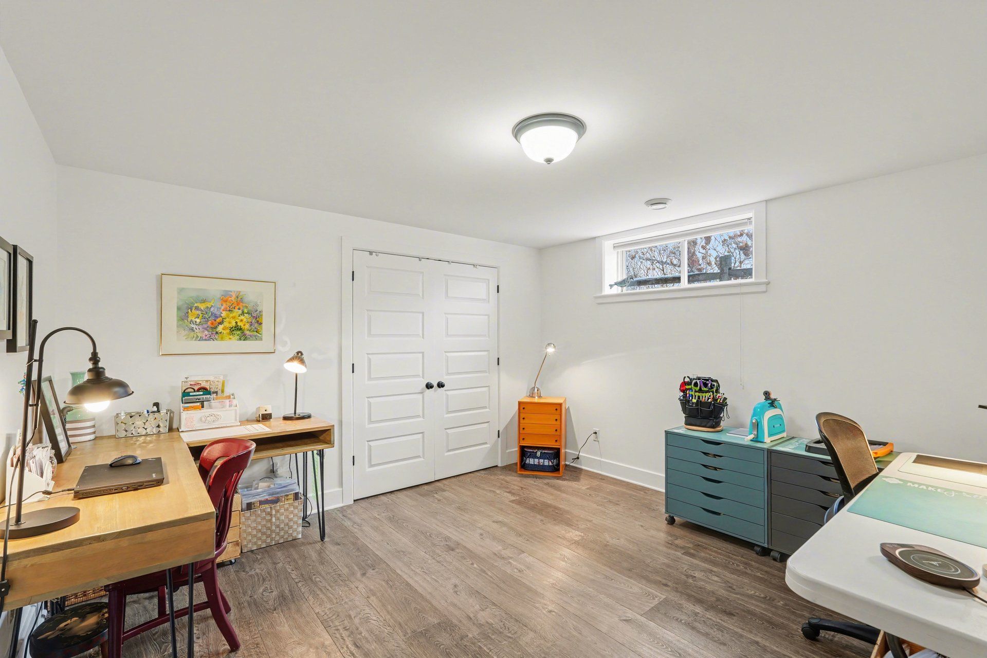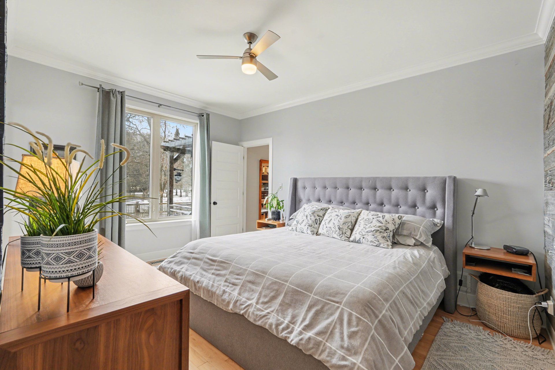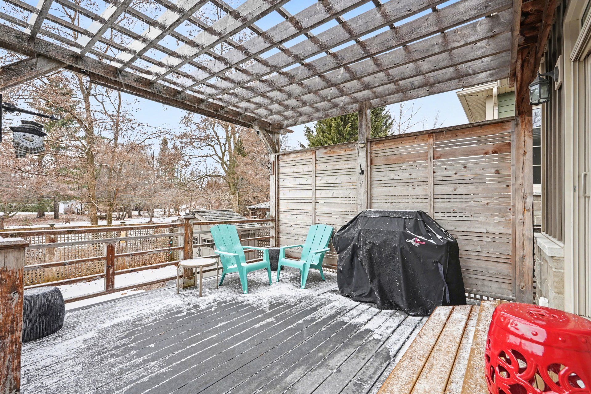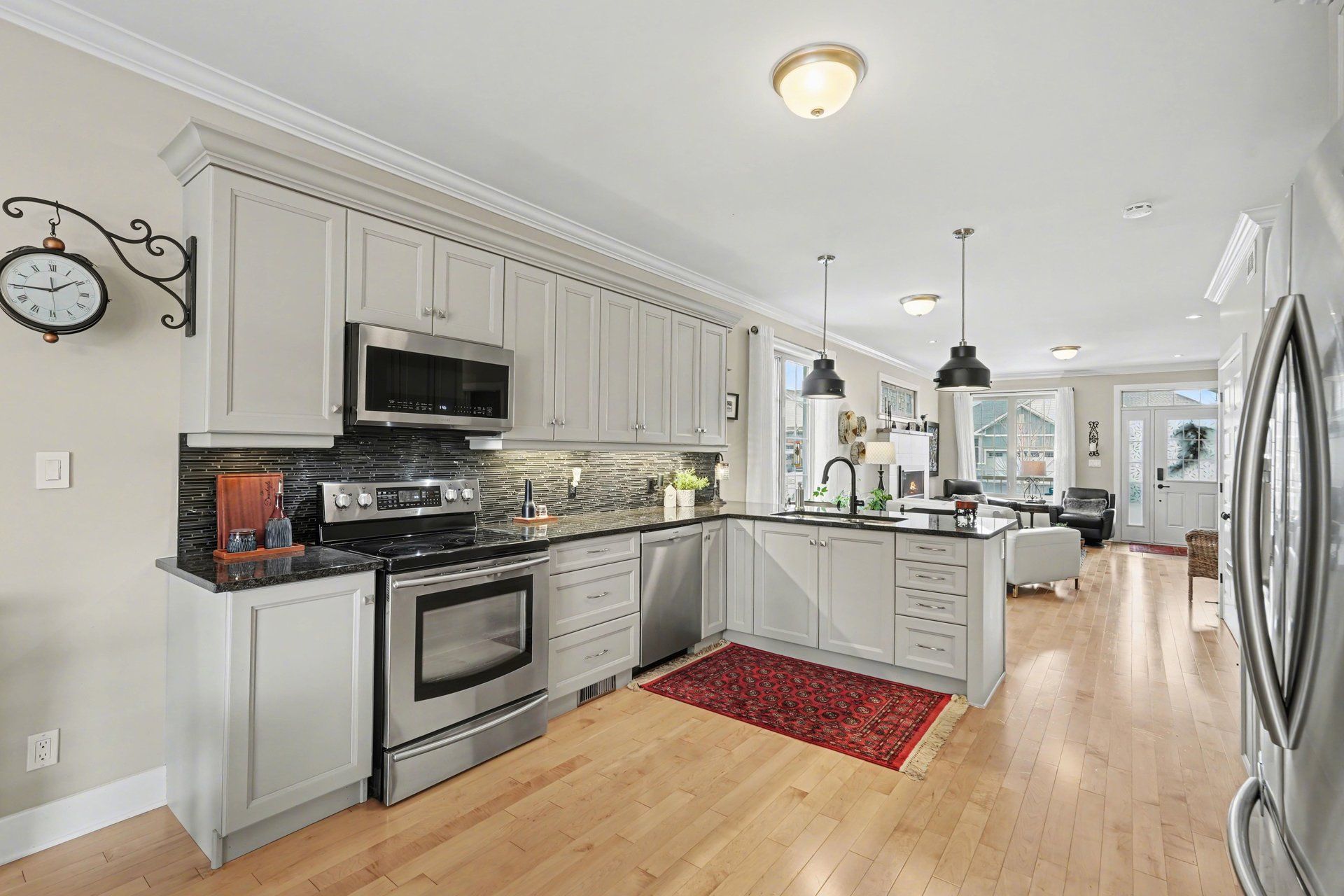 A real gem on a quiet cul-de-sac! Welcome to this beautifully crafted, move-in ready lockwood brothers bungalow. From the moment you step inside, you'll be greeted by soaring 9-foot ceilings, crown moulding, rich maple hardwood flooring, and a striking interior stone feature wall with a cozy gas fireplace--all creating a warm inviting atmosphere perfect for everyday living and entertaining. The well-appointed kitchen is designed with both style and function in mind, featuring granite countertops, soft-close drawers, and a spacious butler's pantry with an ash countertop and abundant storage. The adjoining dining area opens directly to your private outdoor patio, making indoor-outdoor dining effortless. The main floor primary suite is bright and spacious, offering a walk-in closet and a private ensuite bath for a peaceful retreat. A second bedroom and full bathroom complete the main level, providing flexibility for family or guests. Downstairs, the fully finished basement expands your living space with a comfortable family room featuring a second gas fireplace and built-in cabinetry for storage. You'll also find a third bedroom currently set up as a craft or hobby room, an additional bathroom, and a dedicated workshop area equipped with two 20-amp panels and a radon detector. Throughout the home, low-e vinyl windows ensure energy efficiency and year-round comfort. The professionally landscaped property offers beauty with minimal upkeep. The front yard features premium artificial turf accented by river stone trim, while the fully fenced backyard provides a private oasis complete with a composite patio, bbq gas hookup, and panel capability for a future hot tub. The double attached garage is exceptionally functional, equipped with a 50-amp panel and hot water hookup, perfect for washing vehicles or outdoor equipment. Ideally located, close to amenities, this stunning home combines thoughtful upgrades, low-maintenance living, and exceptional comfort. This is a must see!