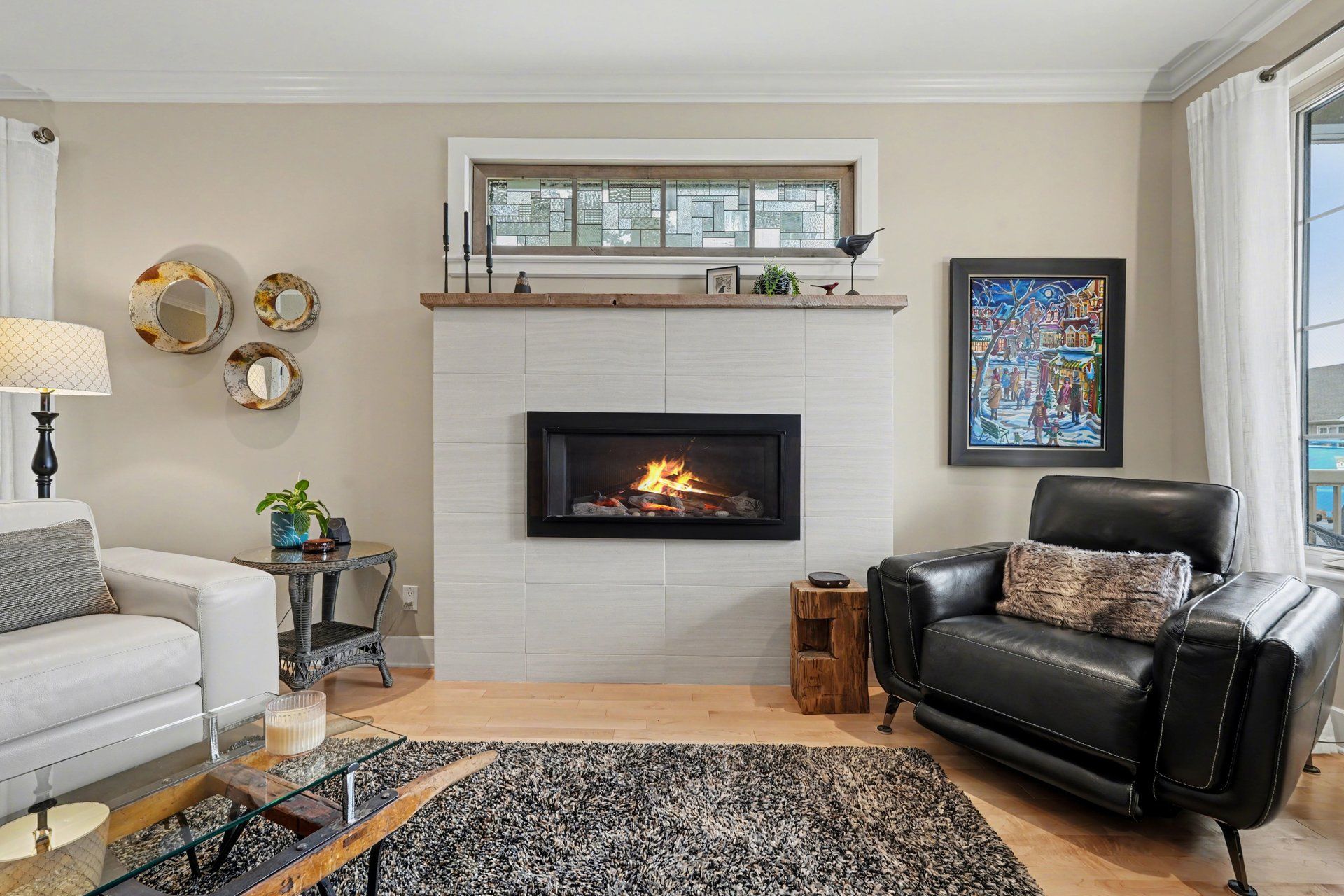• Bright living spaces featuring 9-foot ceilings and a cozy gas fireplace.