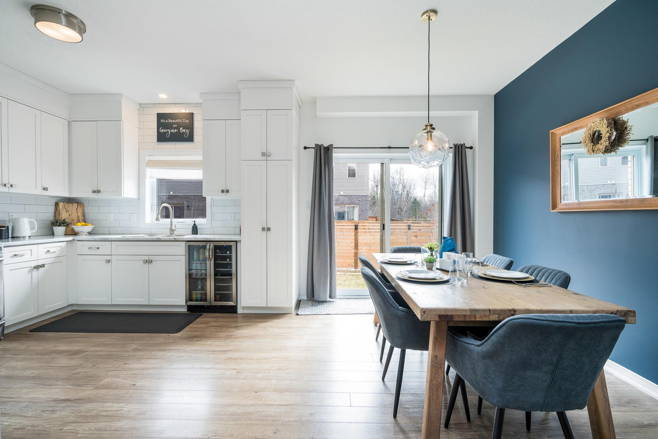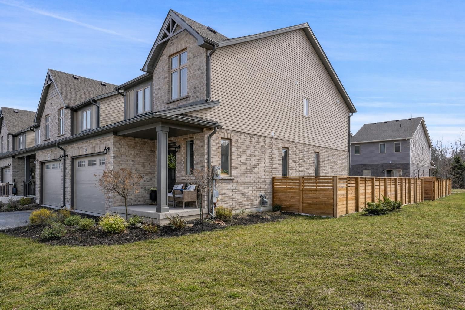 24 george zubek dr is a beautifully designed 3-bdrm, 2. 5-bath end-unit townhouse w/large greenspace & upscale finishes in an incredible collingwood location perfect for families or investors! Enjoy the best of 4-season living w/beaches, ski hills & amenities just mins from your doorstep. Step inside to open-concept main floor w/living room anchored by gas fireplace-an exclusive feature available only to end units-creating a warm & inviting atmosphere. Large windows & sliding doors allow natural light to pour in while seamlessly connecting indoor & outdoor living. Kitchen offers white cabinetry, s/s appliances, backsplash, ample counter space & b/i beverage fridge. Dedicated dining area w/stylish light fixture overlooks backyard & offers ideal setting for family dinners. 2pc bath completes main level. Upstairs you'll find spacious primary bdrm with w/i closet & 3pc ensuite w/beautifully tiled w/i glass shower. 2 add'l bdrms offer excellent flexibility for family, guests or home office-one offers vaulted ceilings, large window & its own w/i closet! 4pc main bath w/vanity & shower/tub serves this level along w/upper-level workspace nook-perfect for remote work or study. Unfinished bsmt offers excellent storage & future potential with 2 large windows that make the space bright & inviting. Whether you're looking to create add'l bdrms or a rec room, the possibilities are endless. Step outside & enjoy the lovely backyard, perfect for kids, pets or summer evenings with friends. With lots of space to relax, play & entertain it's a true extension of the home. Located in a growing family-friendly neighbourhood you're just mins from downtown collingwood, shops, restaurants, trails & amenities. Spend winters at blue mountain & summers exploring georgian bay & wasaga beach-about 20-min away. Enjoy nearby scandinavian-inspired spa experiences, golf courses & blue mountain village offering boutiques, dining & yr-round entertainment. This is more than just a home; it's a lifestyle