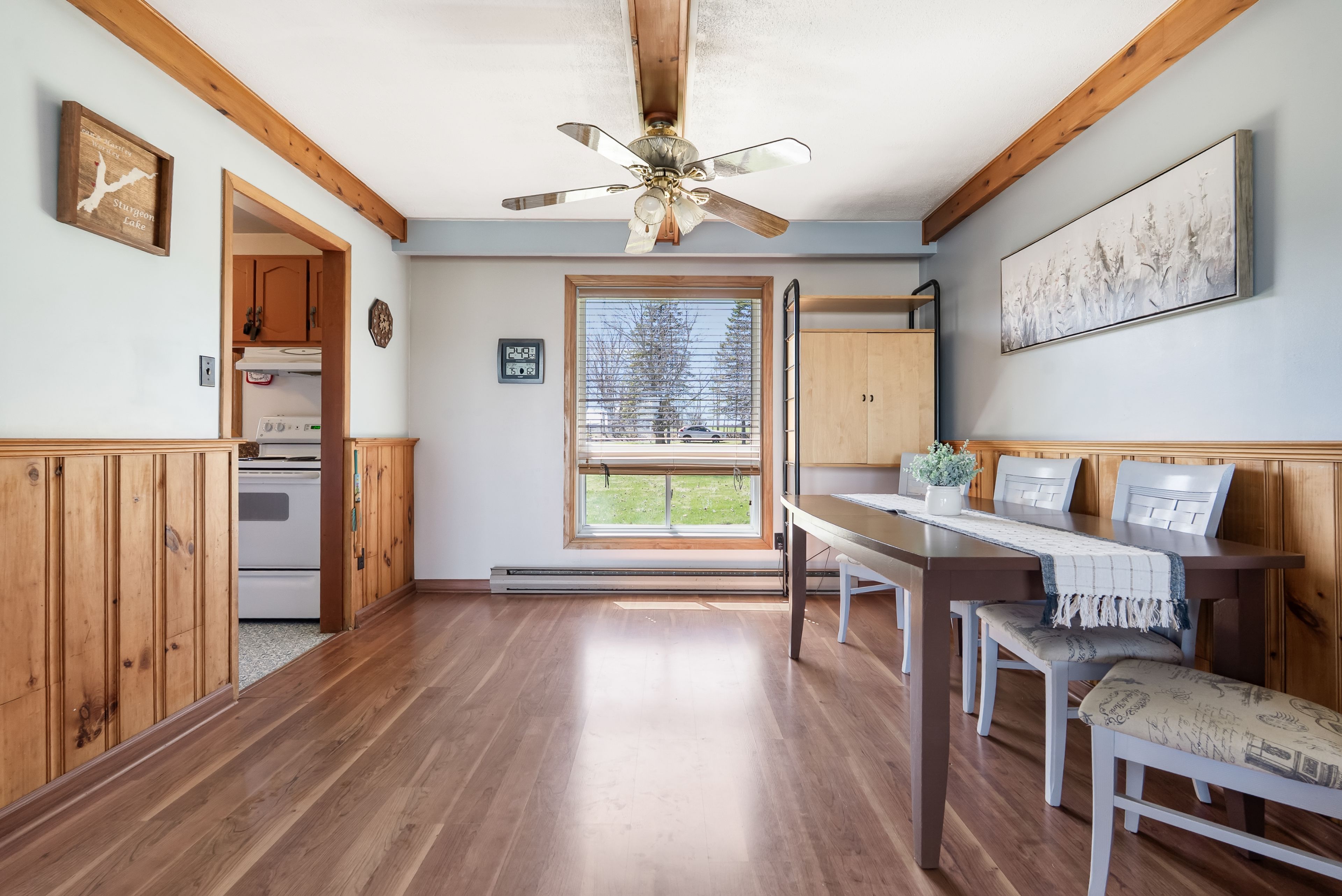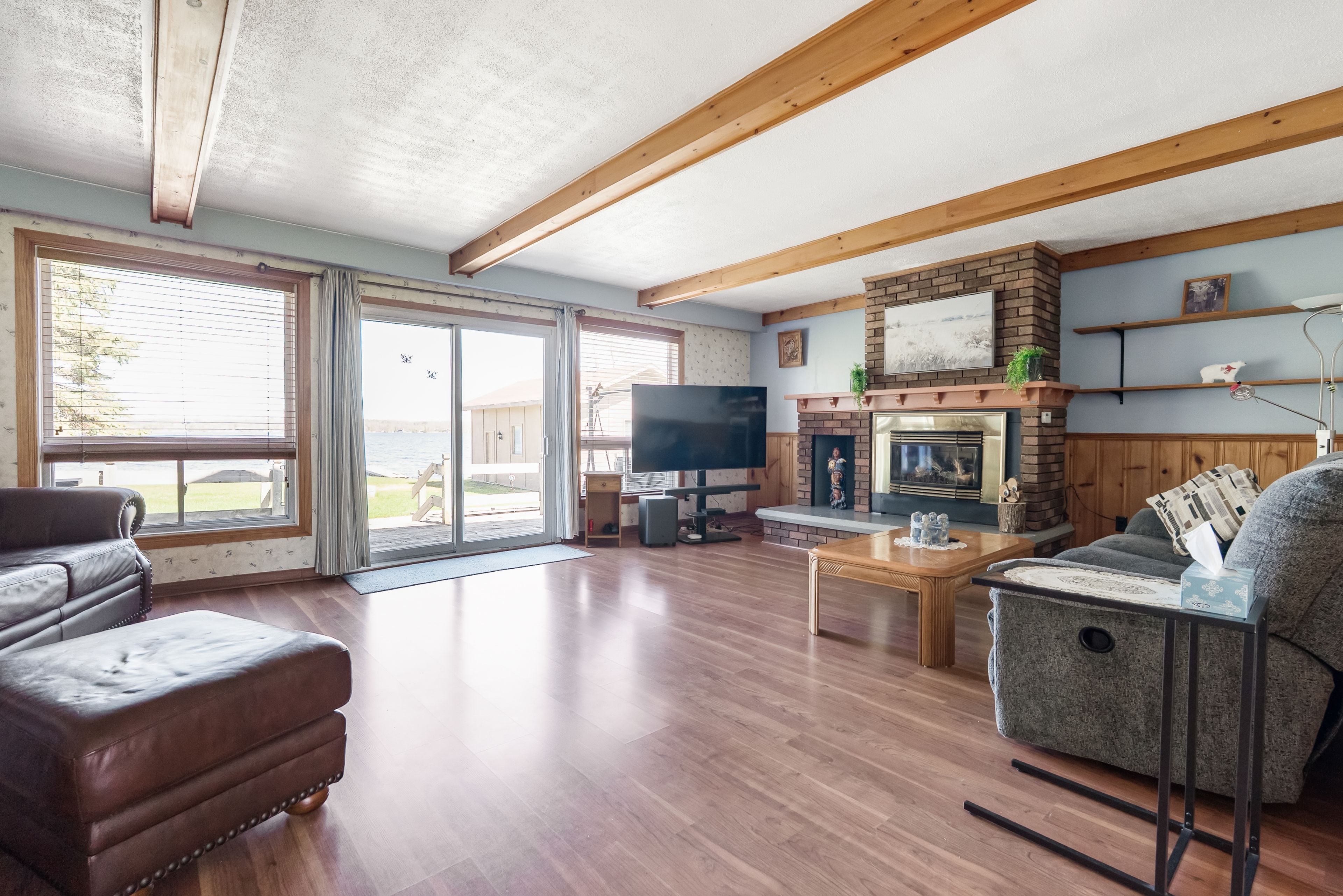 Spectacular waterfront home on a quiet dead-end street, offering privacy and serenity. This charming 3 bedroom, 1 bath bungalow sits on a just under 1 acre lot with 150 ft of clean, swimmable shoreline on sturgeon lake part of the trent-severn waterway, ideal for endless boating. The shoreline features a gentle, walk-in entry, perfect for all ages. The inviting living room showcases beautiful lake views and a cozy propane fireplace for year round comfort. A functional layout makes it ideal for weekend getaways or full time living. Outside, enjoy a 24 x 28 ft double detached garage and a 16 x 28 ft dry slip boathouse. Swim, boat, fish, or relax, this is waterfront living at its best.