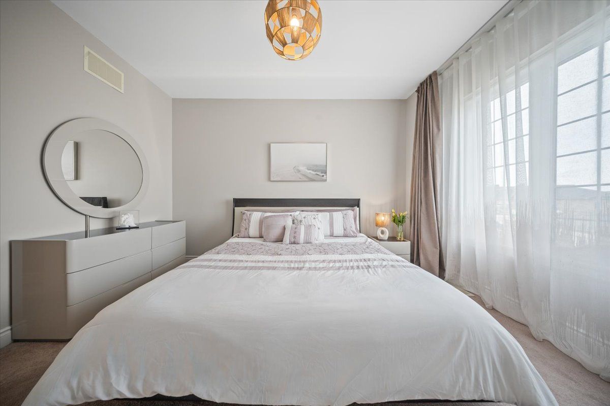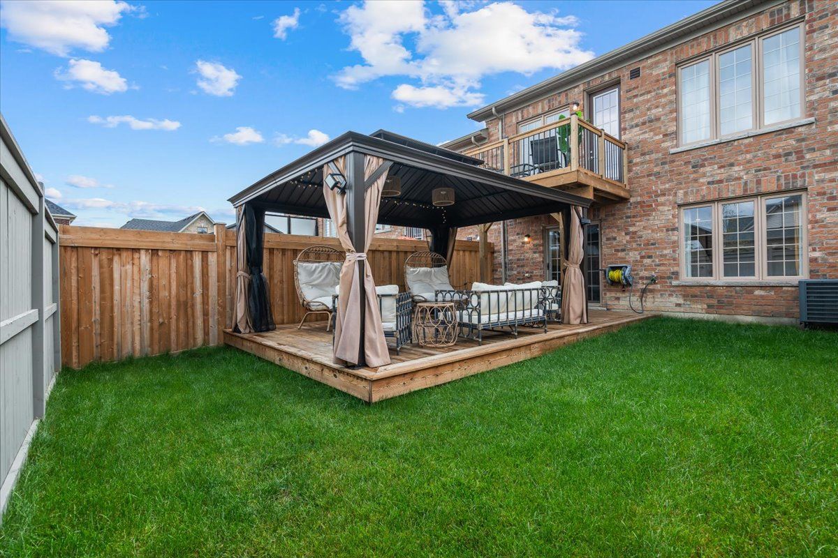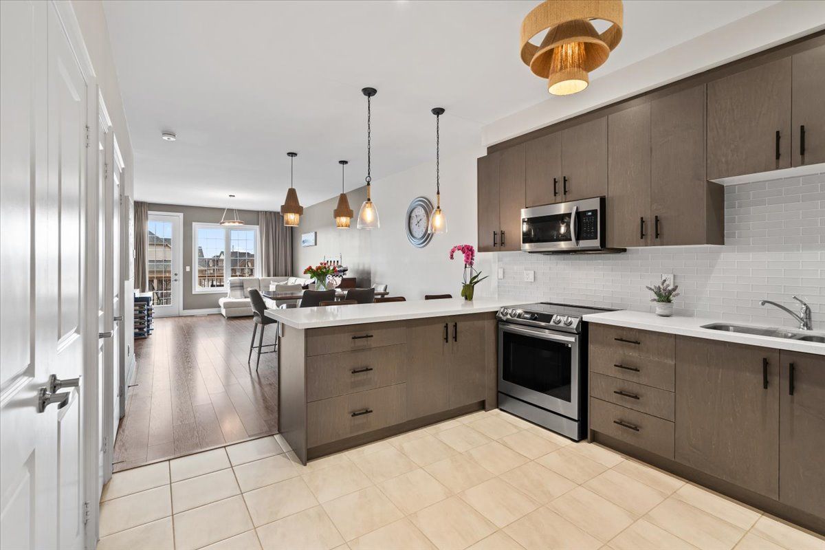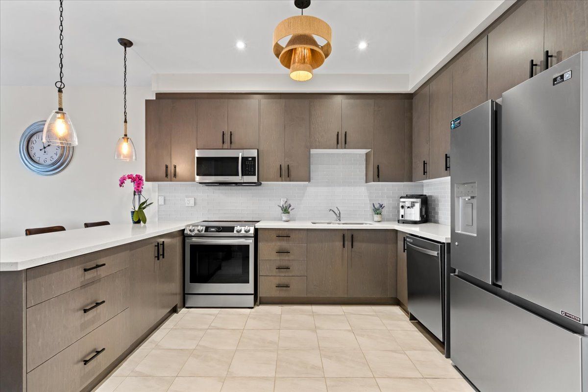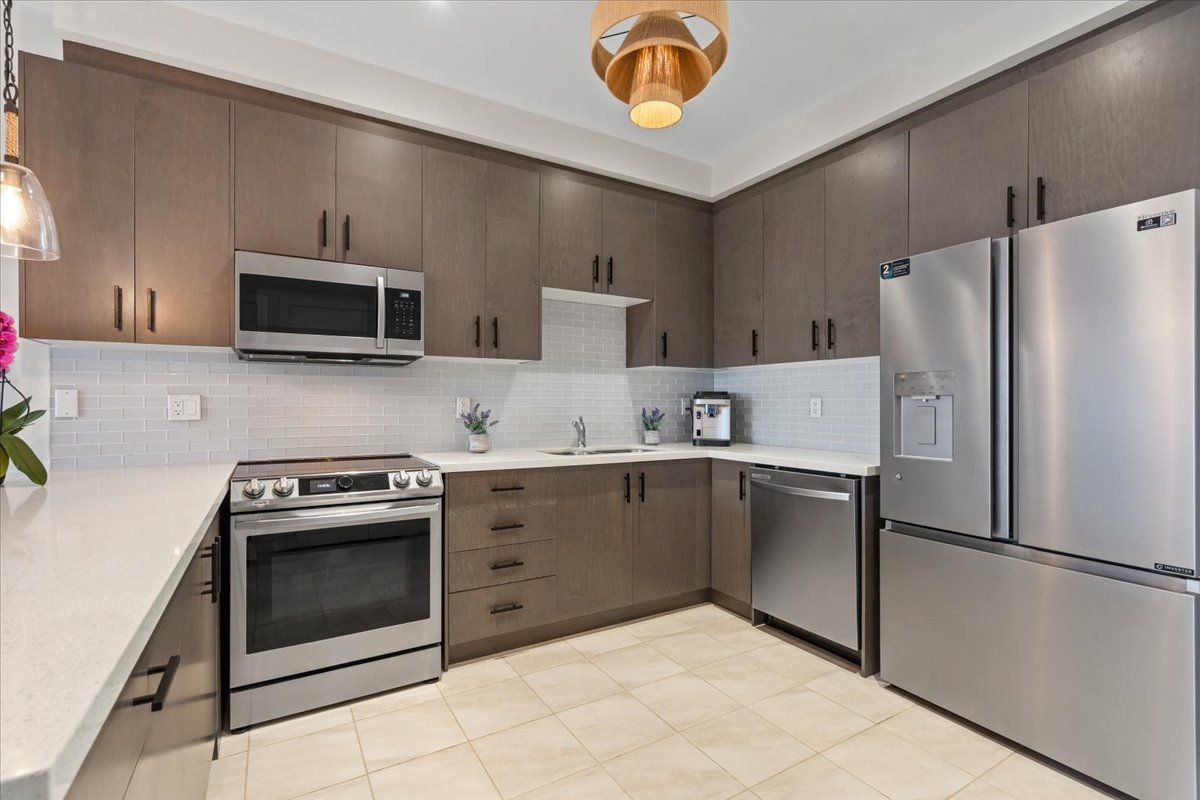 Welcome to this stunning, move-in ready bungalow townhouse offering 2+1 bedrooms and 3 full bathrooms, thoughtfully designed for modern living. Situated in a desirable alliston community close to schools, parks, hospital and transit, this home combines style, functionality, and comfort with 9 ft ceilings and a bright, airy feel throughout. Enjoy a seamless open-concept layout where the living and dining areas flow effortlessly into a well-appointed kitchen featuring stainless steel appliances, quartz countertops, and a stylish ceramic backsplash-perfect for entertaining or everyday living. The primary bedroom serves as a private retreat, complete with a walk-in closet with custom organizers and a sleek ensuite bath. Convenient main floor laundry with front-load washer & dryer adds to the ease of living. The fully finished walk-out basement expands your living space with an additional bedroom and 3-d full bathroom, and a spacious recreation area-ideal for guests, family and also a home office setup. Walk out to your private deck, enhanced with a gazebo and outdoor furniture and no homes behind, creating the perfect setting for relaxing or hosting. Additional highlights include a direct access from the garage and a built-in lorex video surveillance system for added peace of mind.