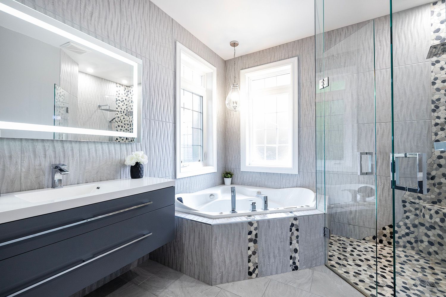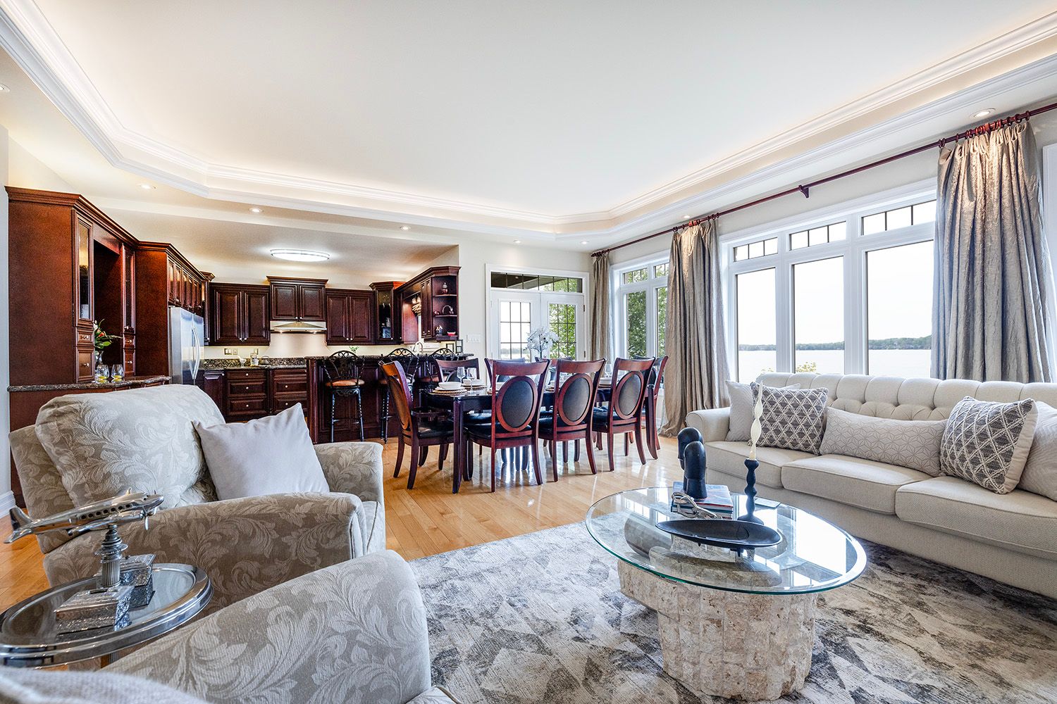 • Bright open-concept living spaces filled with natural light and waterfront views.