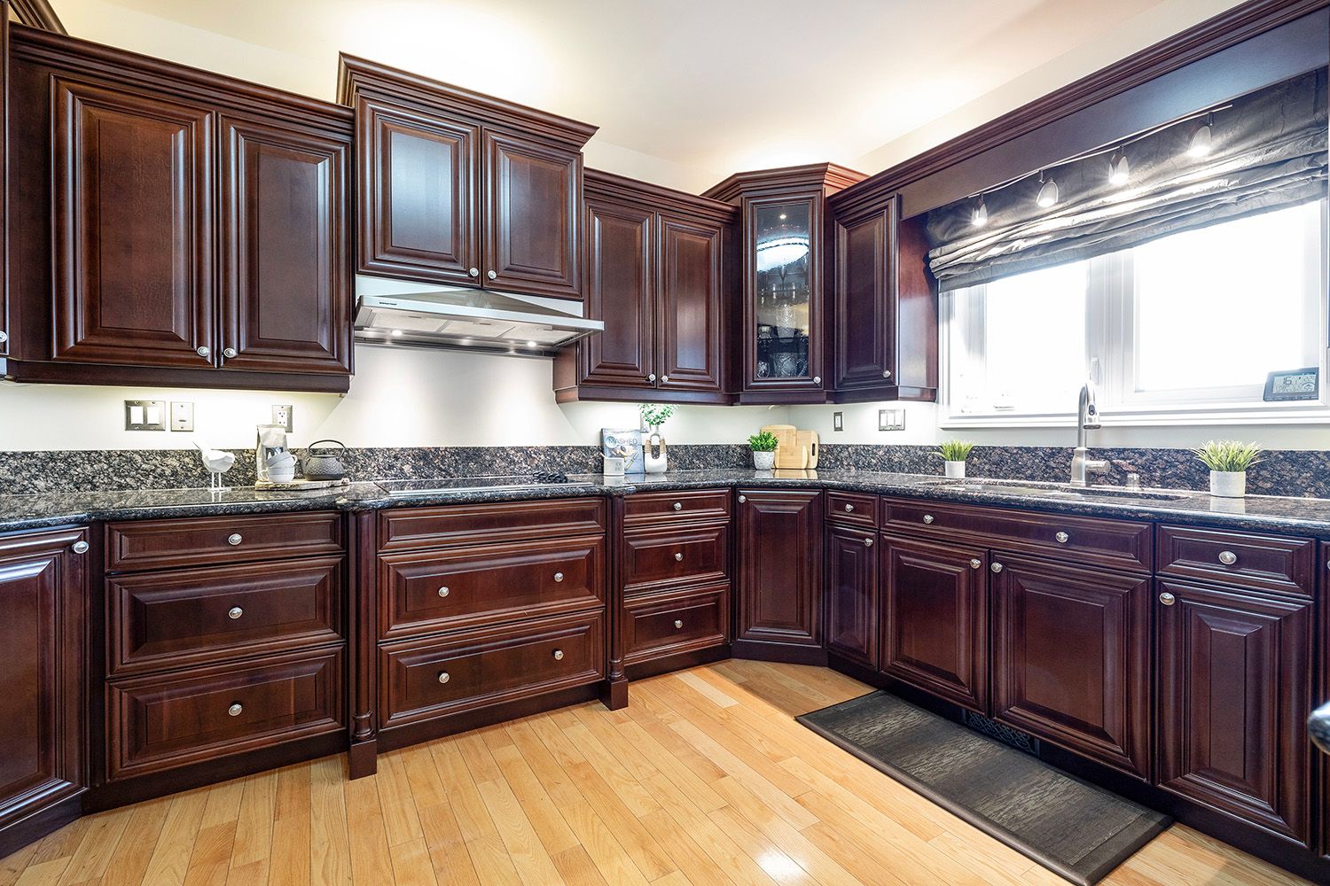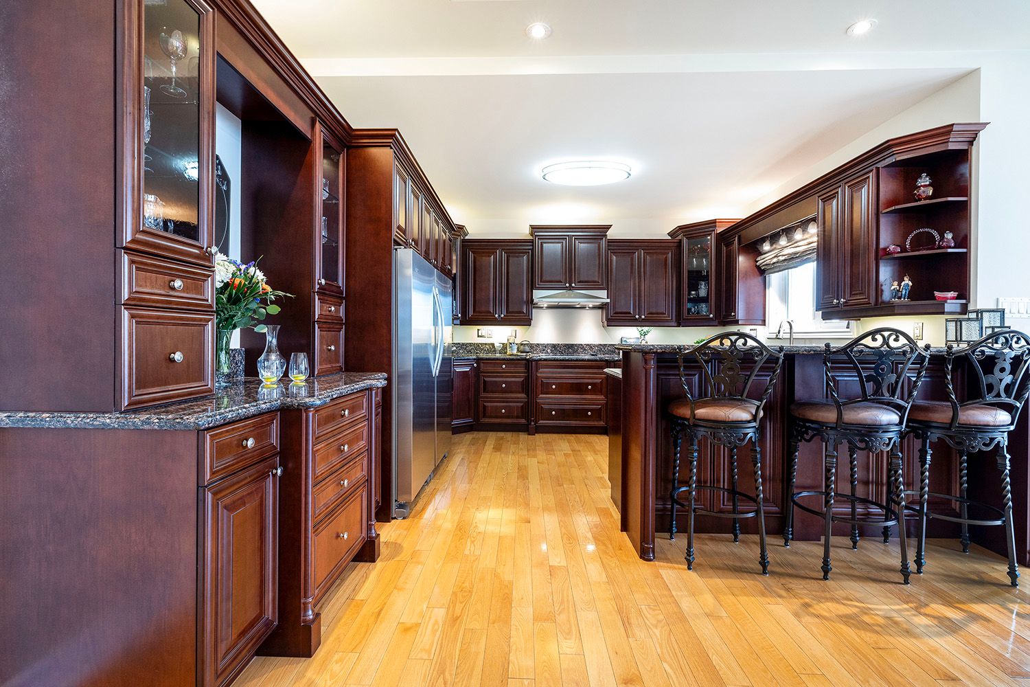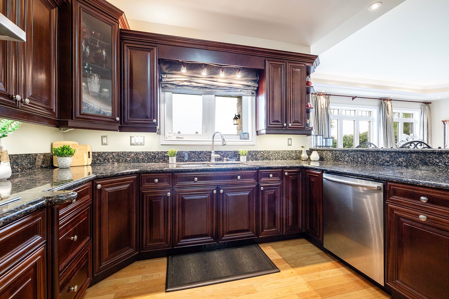 • Chef-inspired kitchen with granite countertops and stainless steel appliances.