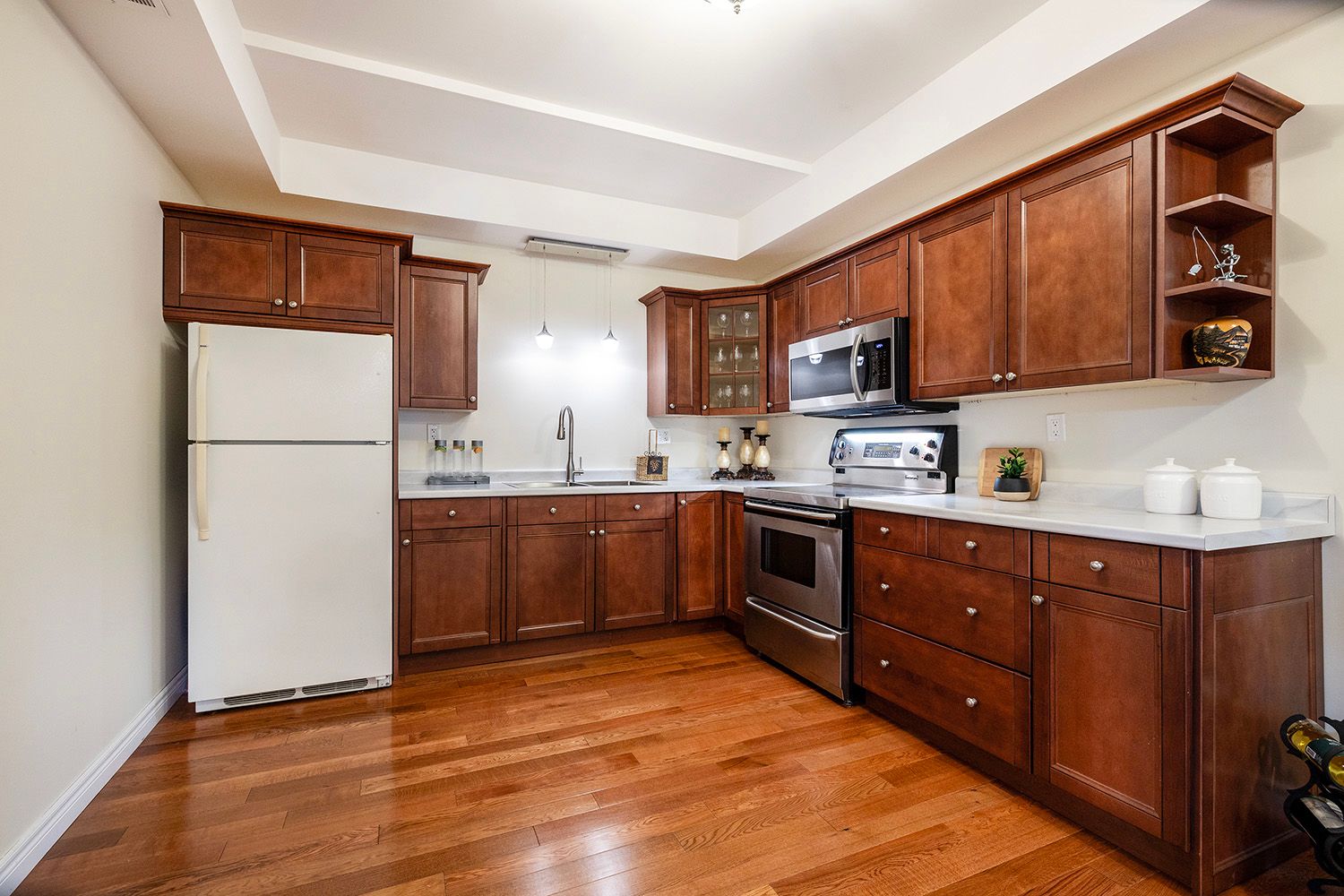 • Versatile lower level with recreation room and separate kitchen for guests.